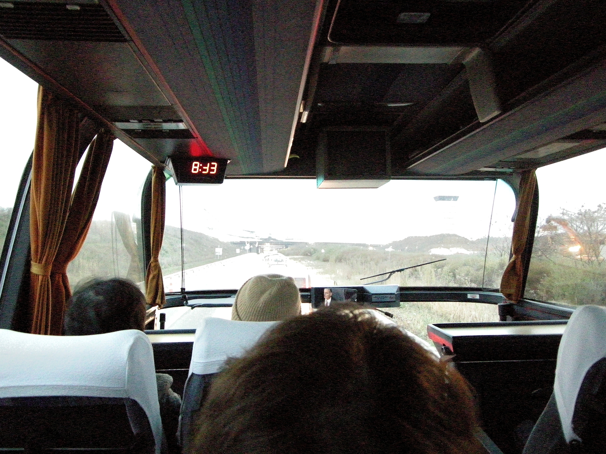 | シャルル・ド・ゴール空港へ向かうバス内 (08:26) 休む間もなく、帰国のためシャルル・ド・ゴール空港へ向かう。 |