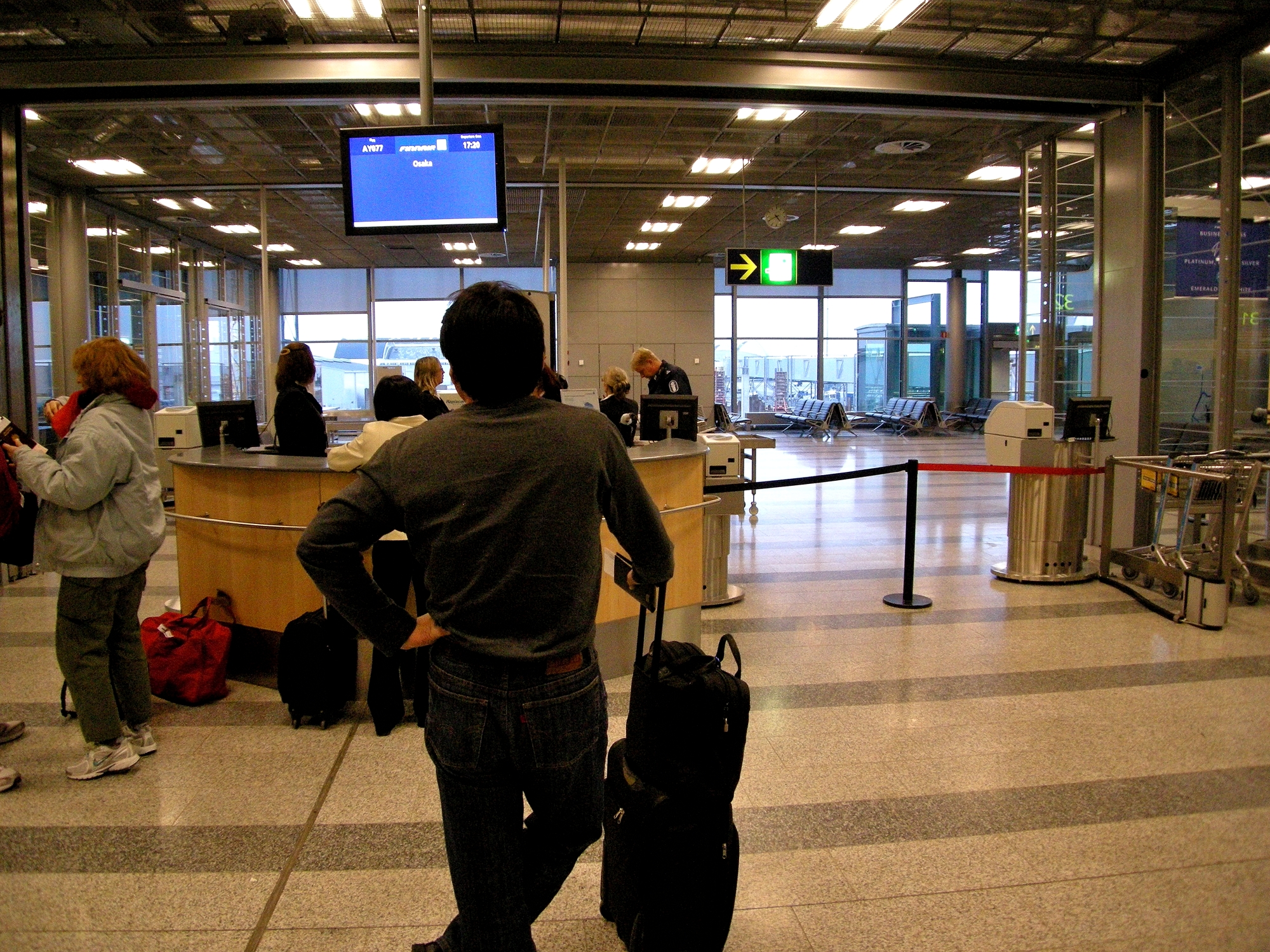| ヘルシンキ・ヴァンター国際空港 (関空行きのゲート) (16:42) ストのため、エールフランスが用意した代替え機 (フィンランド航空) にて帰国の途につく。 MAPB |