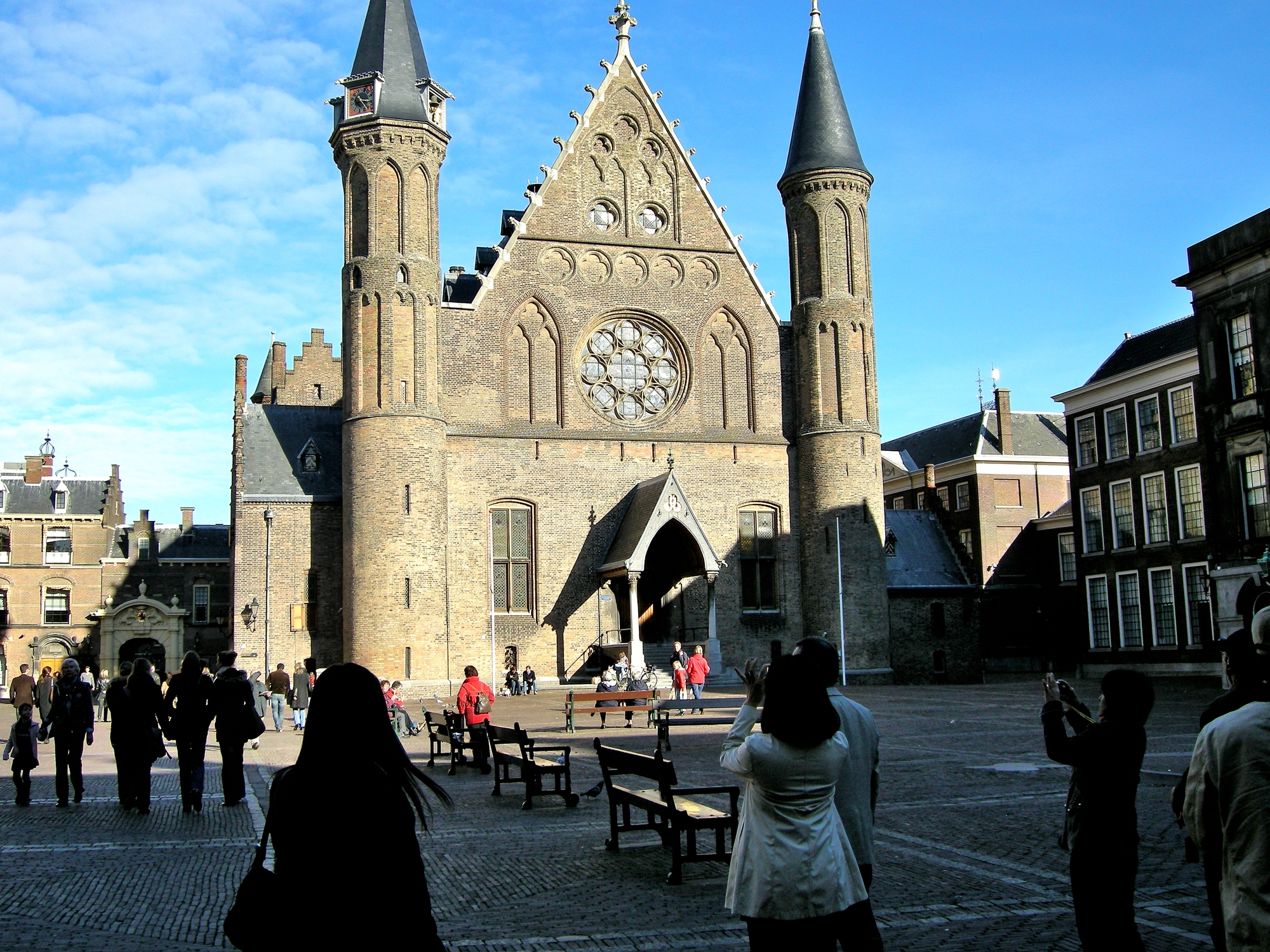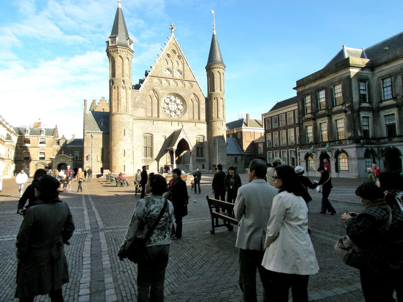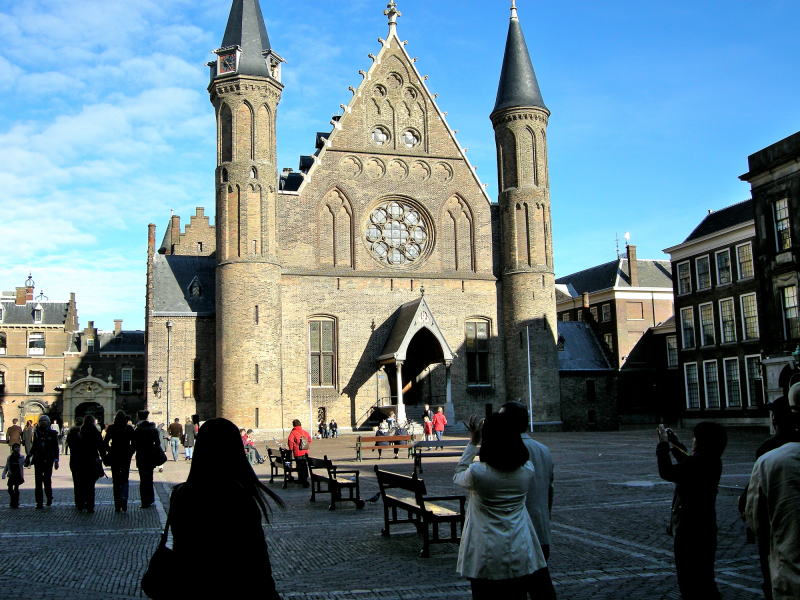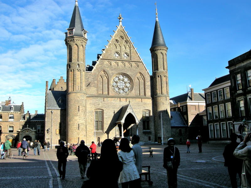 | ビネンホフにある騎士の館(リッデルザール)[Ridderzaal] (15:25) 1230年、ホランド伯フロリス4世は狩猟の場とするために、ホフフェイオファの沼に沿った土地を購入し住居を設けた。1248年、ホランド伯ヴィレム2世がそれを宮殿に改築する工事に着手した。 1256年、ヴィレム2世は完成を見ずに死亡するが、工事はホランド伯フロリス5世によって部分的に完成された。 「東」MAP i |