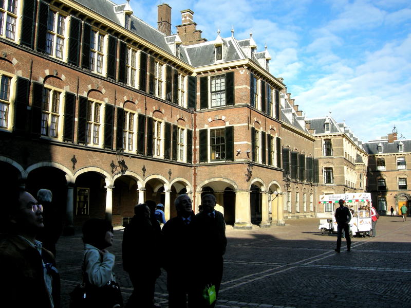 | ビネンホフ [Binnenhof]* (ハーグにある国会議事堂) (15:23) 13世紀にホランド伯の居城として建てられた。 現在は国会議事堂、外務省、総理府などが集まっており、オランダの政治の中心として機能している。 *ビネンホフ [Binnenhof] は元来、中庭を意味する。 「東北東」MAP h |