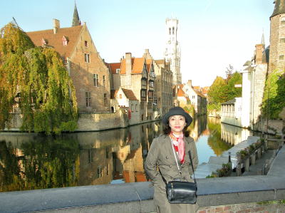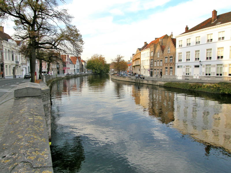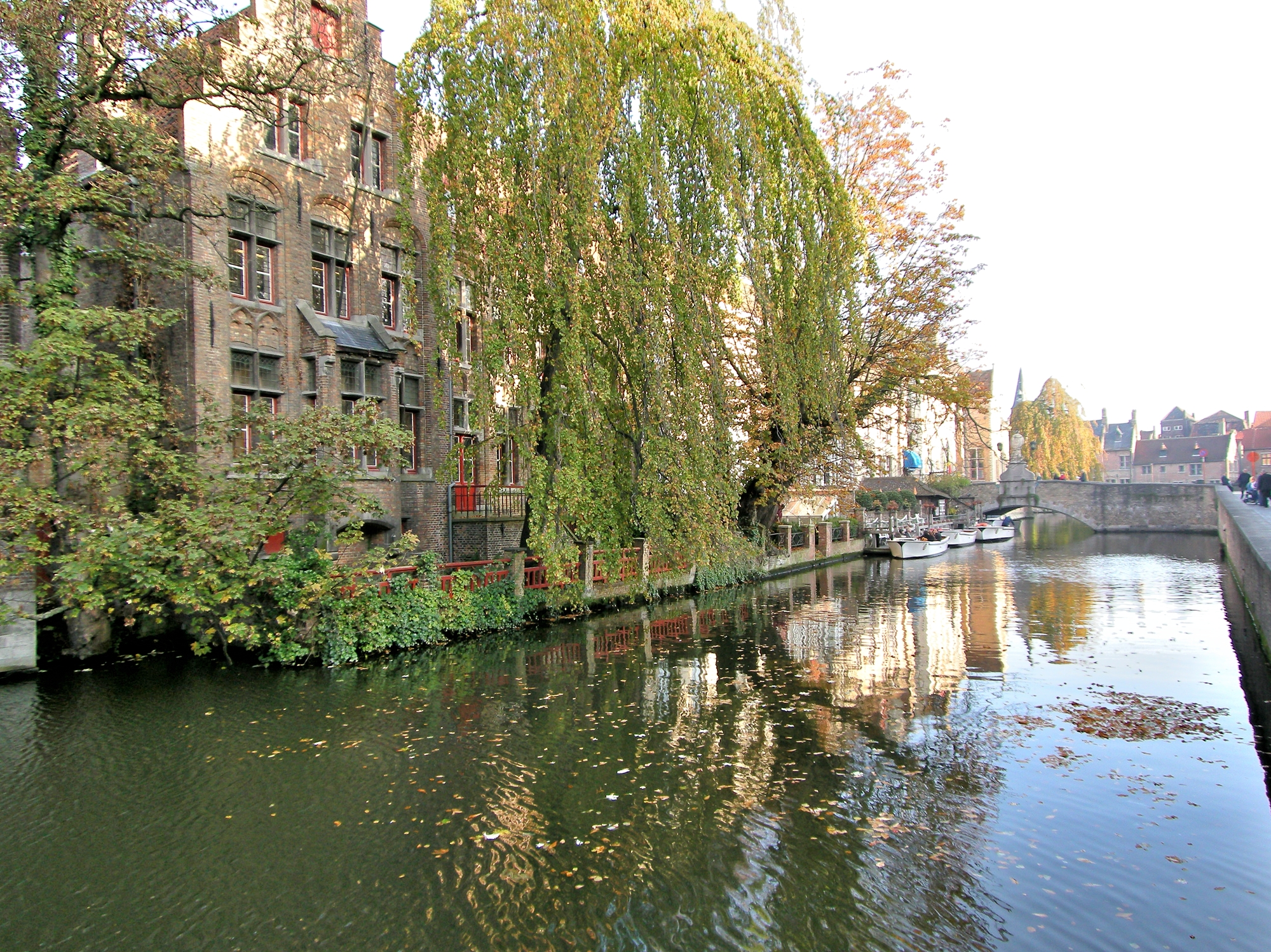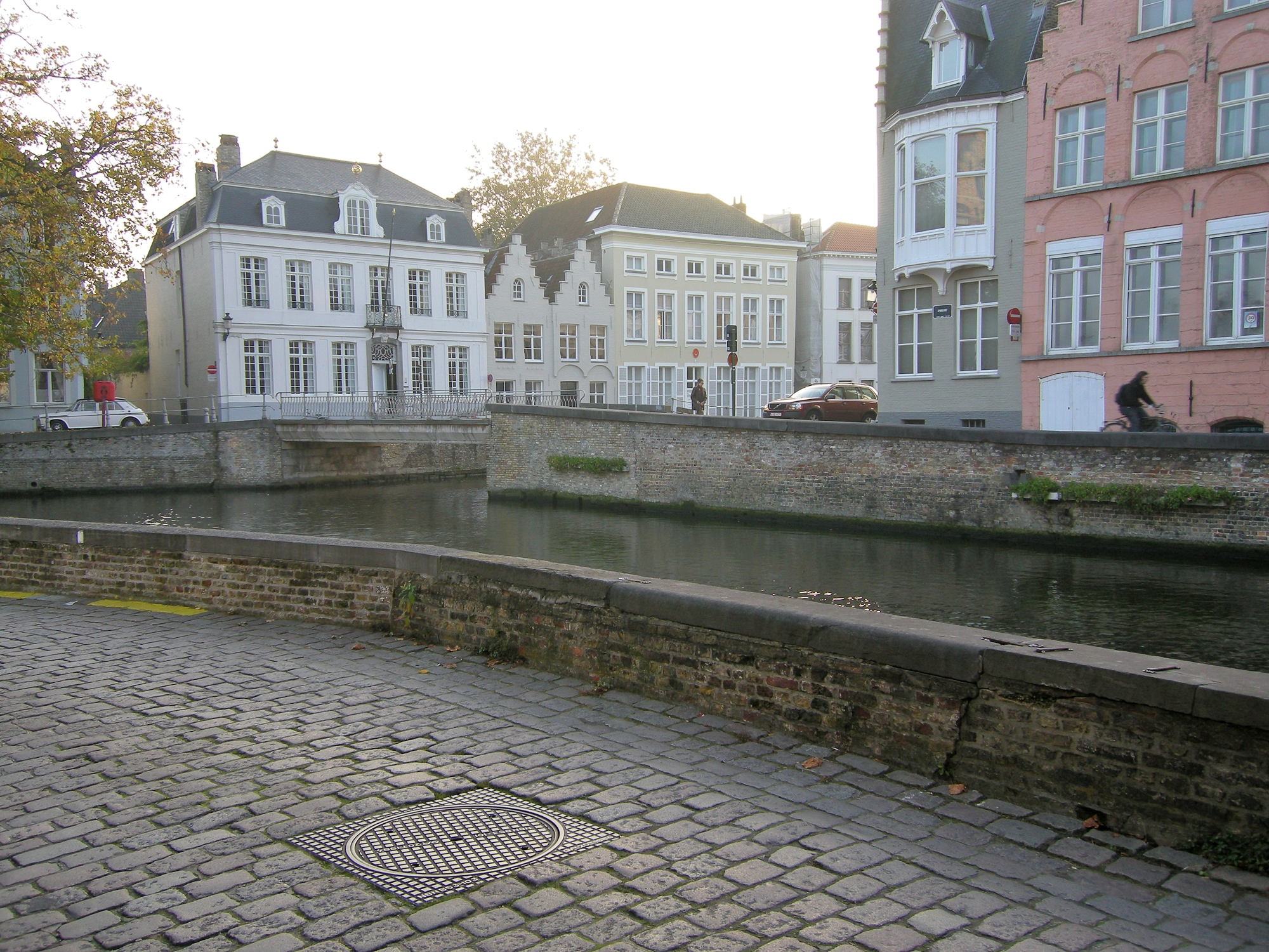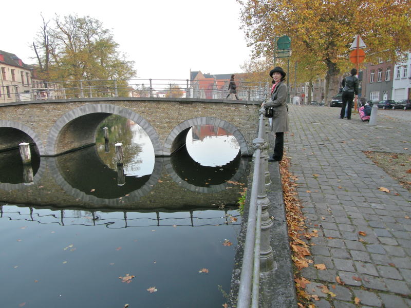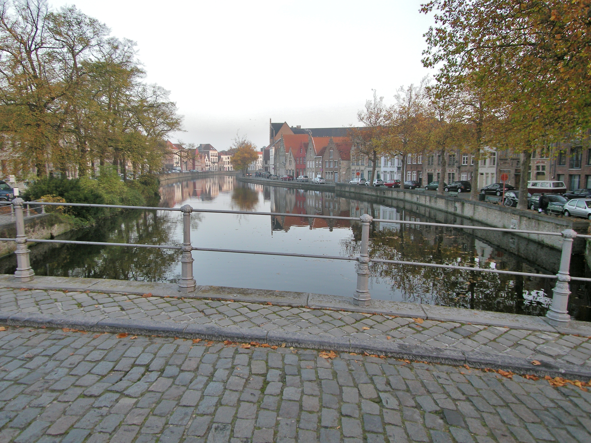 | 運河 "ランゲライ" [Langerei] に架かる "カルメン橋" [Carmersbrug] からの眺め(09:09) このあたりは、オードリー・ヘップバーン主演の映画「尼僧物語」(1958年作) のロケ地。 風景は当時と殆ど変わっていません。 (オードリーは地元ブリュッセルの出身) 「南」MAP Lay.1C 映画 「尼僧物語」[The Nun's Story] ブルージュのシーン |