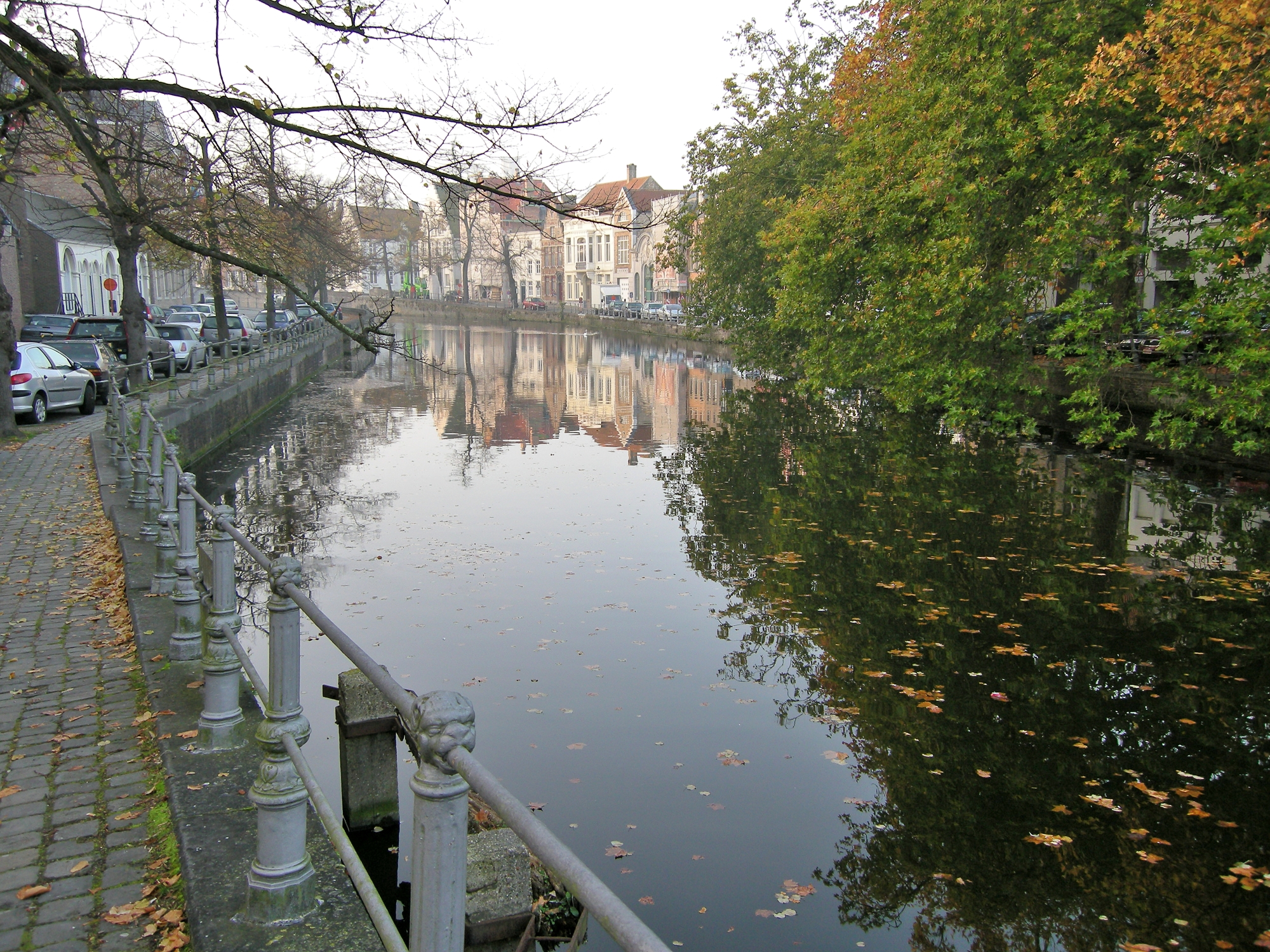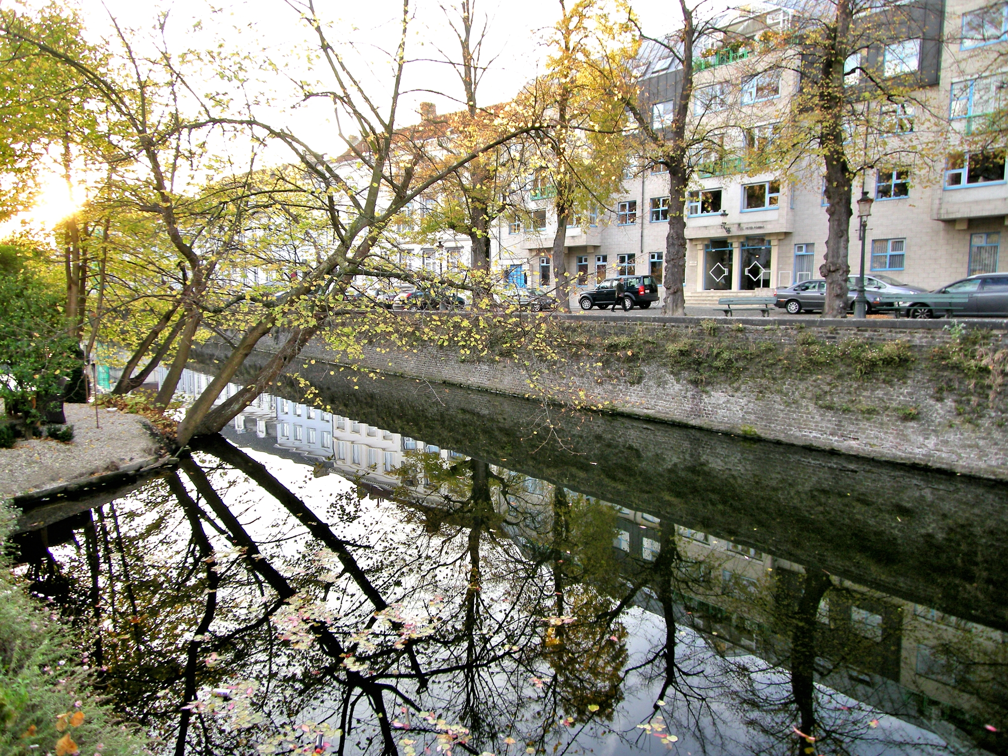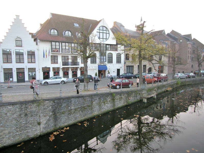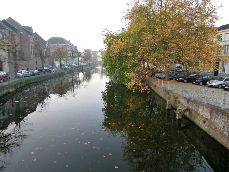 | ネポムク橋 [Nepomucenusbrug] からの眺め(10:08) この橋の上には、ネポムクのヨハネの彫像があることから "ヨハネ・ネポムク橋" [Johannes Nepomucenusbrug] とも呼ばれている。 左に見える塔は、聖母教会 [Onze Lieve Vrouwekerk] 。 「南西」MAP Lay.1S |