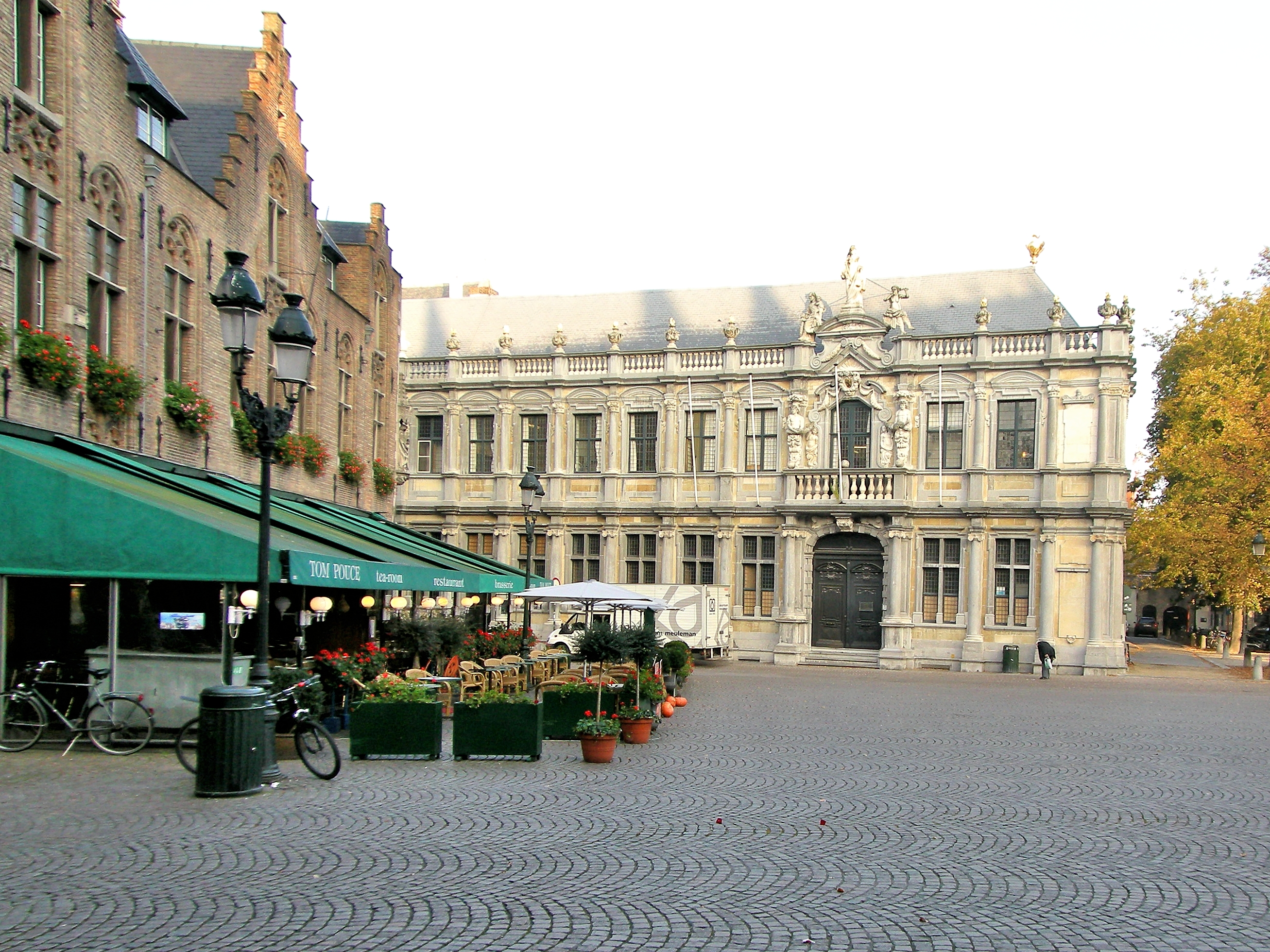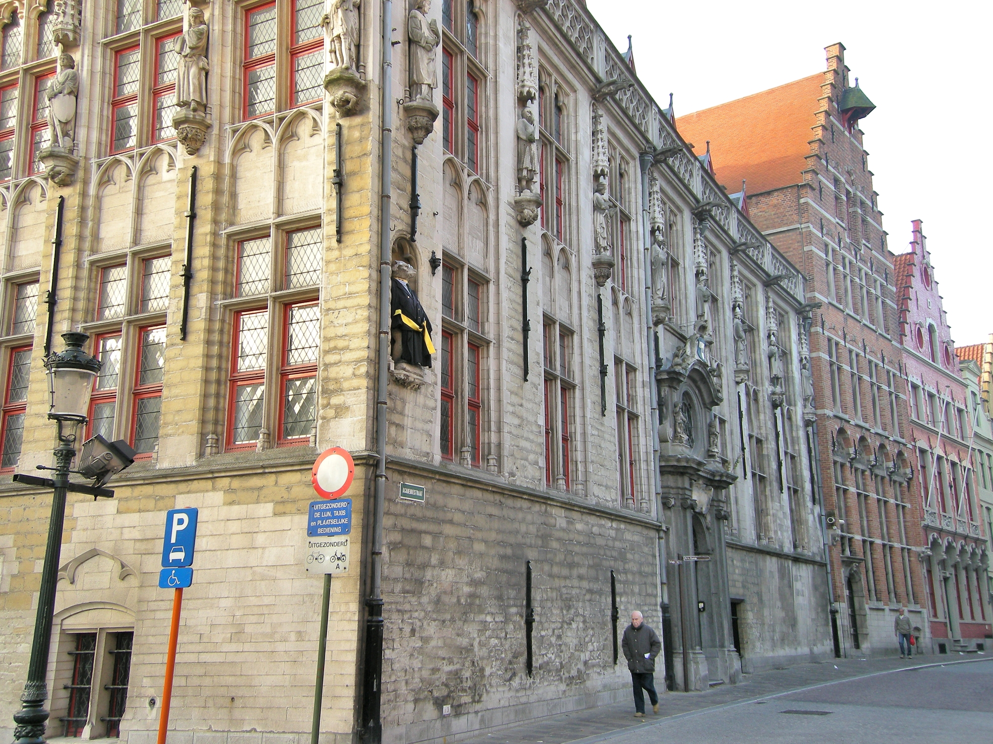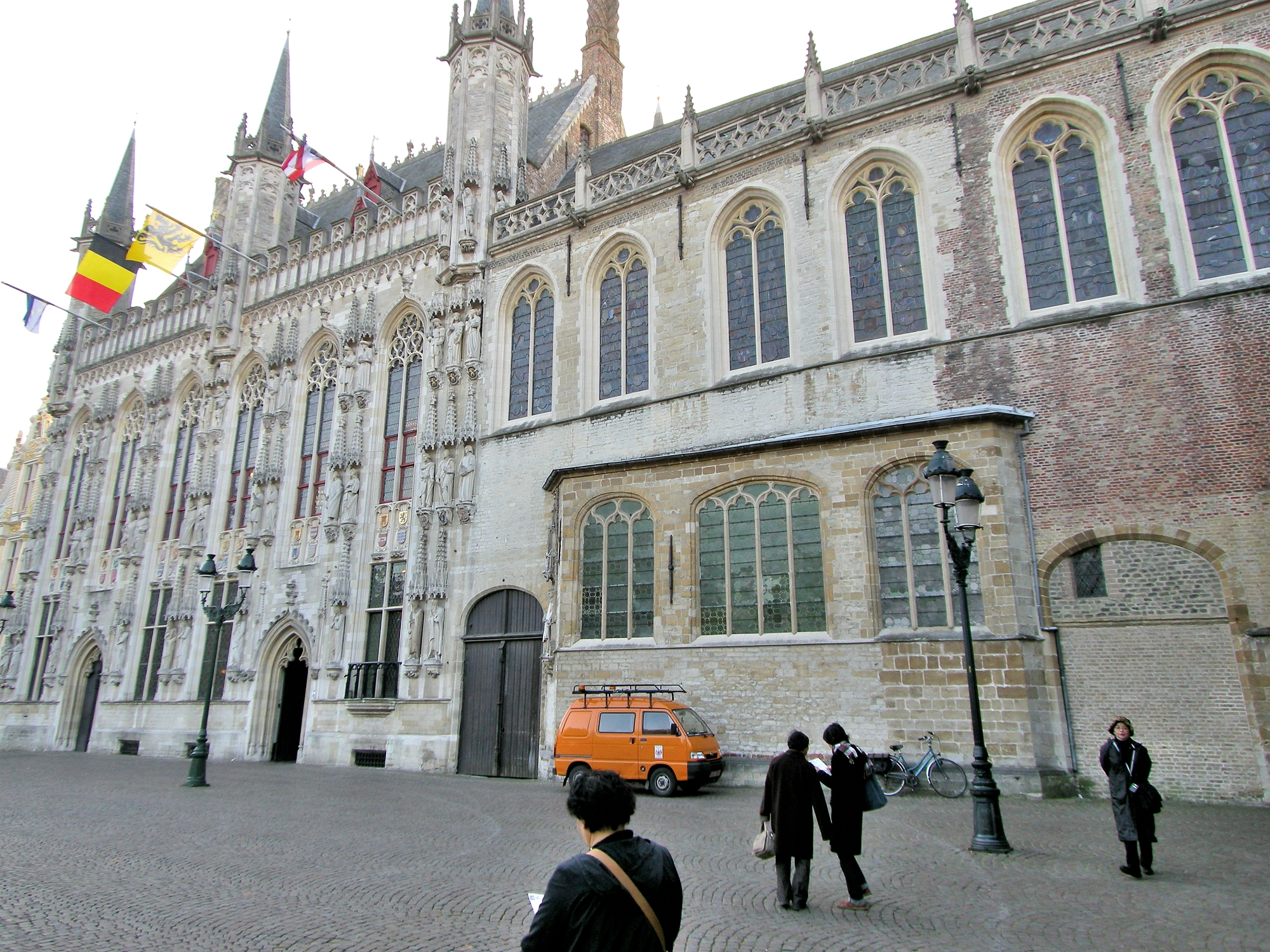 | 市庁舎 [Stadhuis](09:50) ベルギー最古の市庁舎の一つ。 ブルグ広場 [Burg Square] に面して在り、ブルゴーニュ公国時代に中央政庁として建立された。 フランボワイヤン・ゴシック様式のファサードには聖人などのレリーフや彫像が並ぶ。 「南東」MAP Lay.1M |