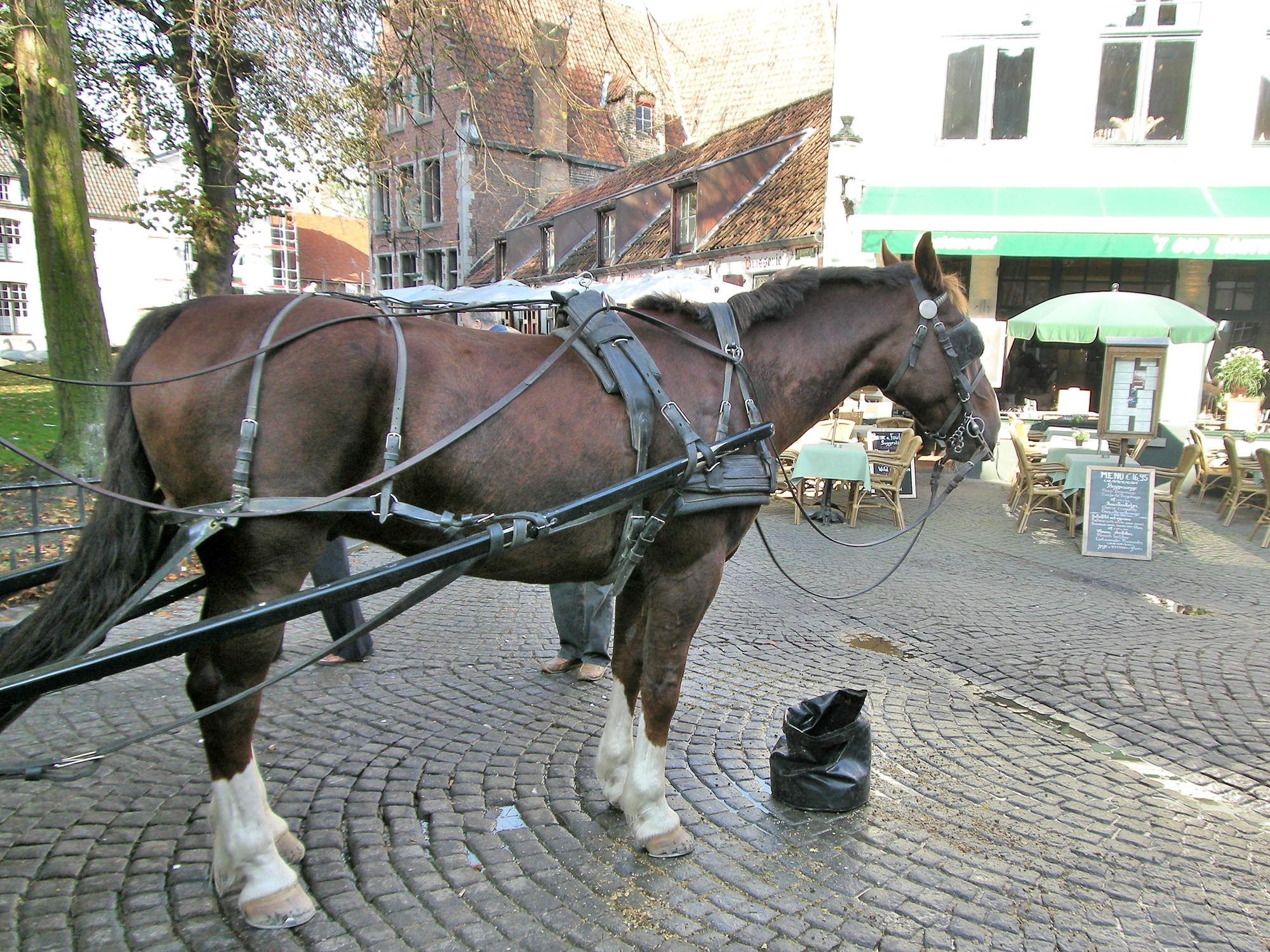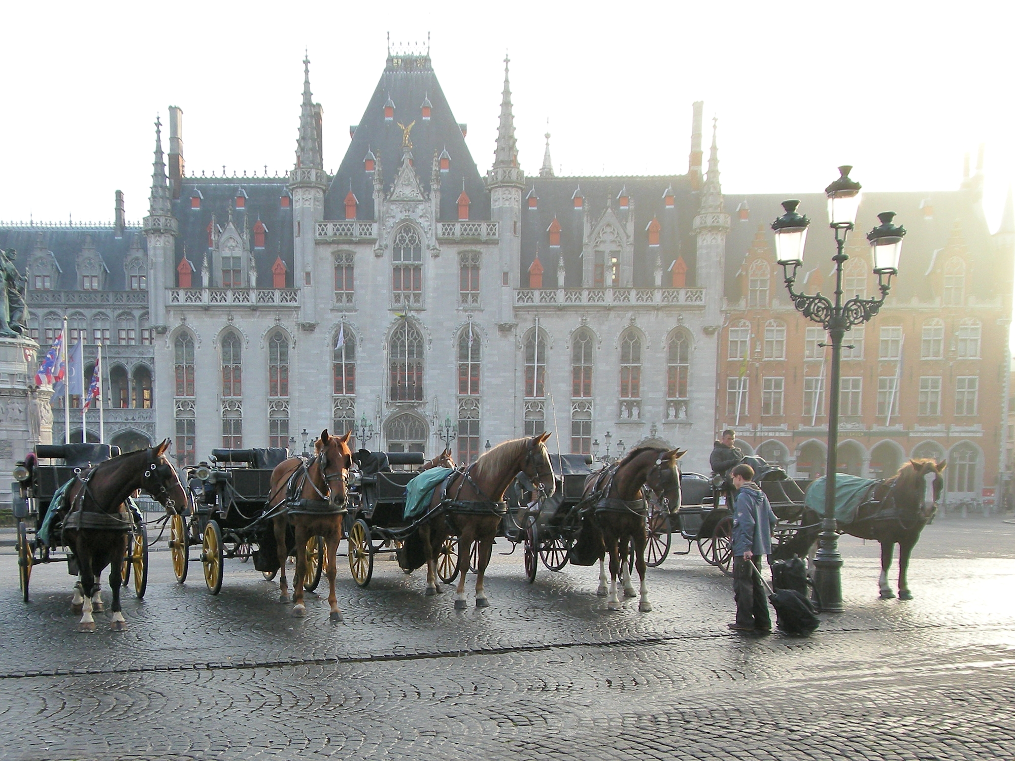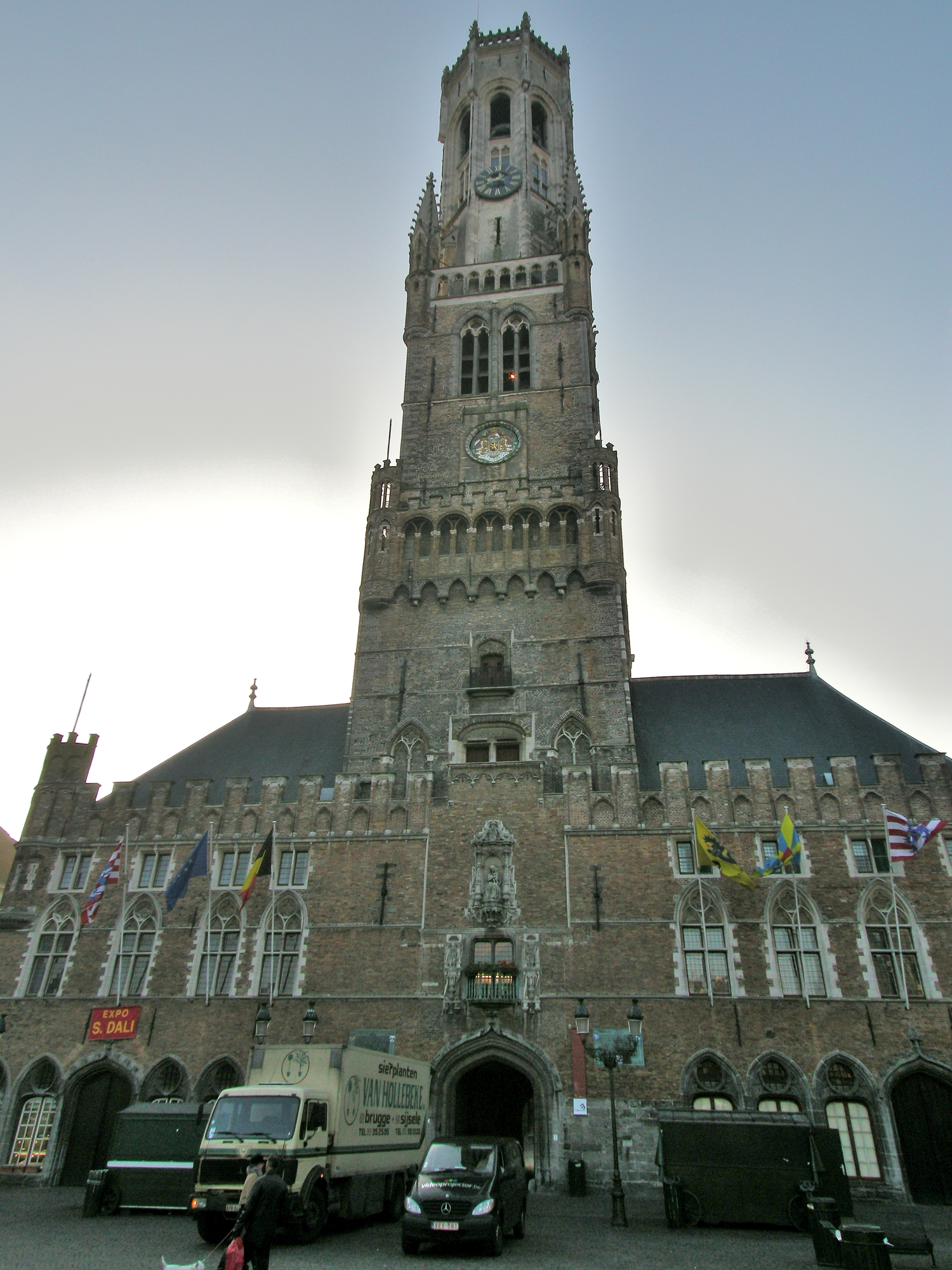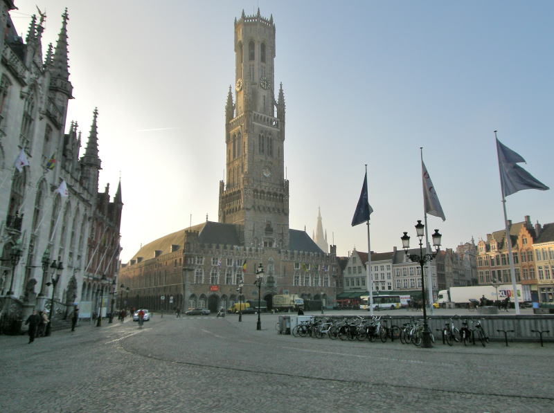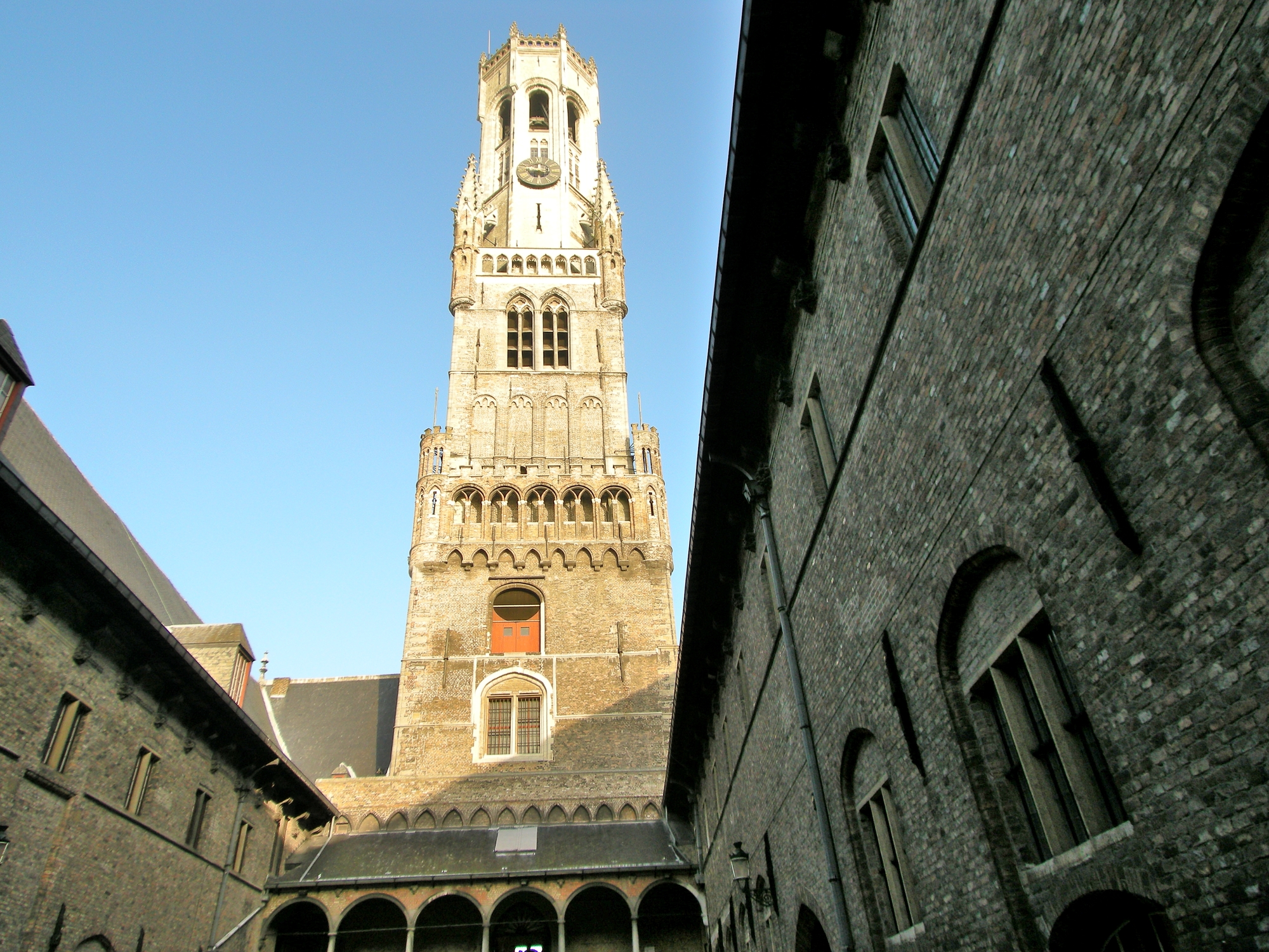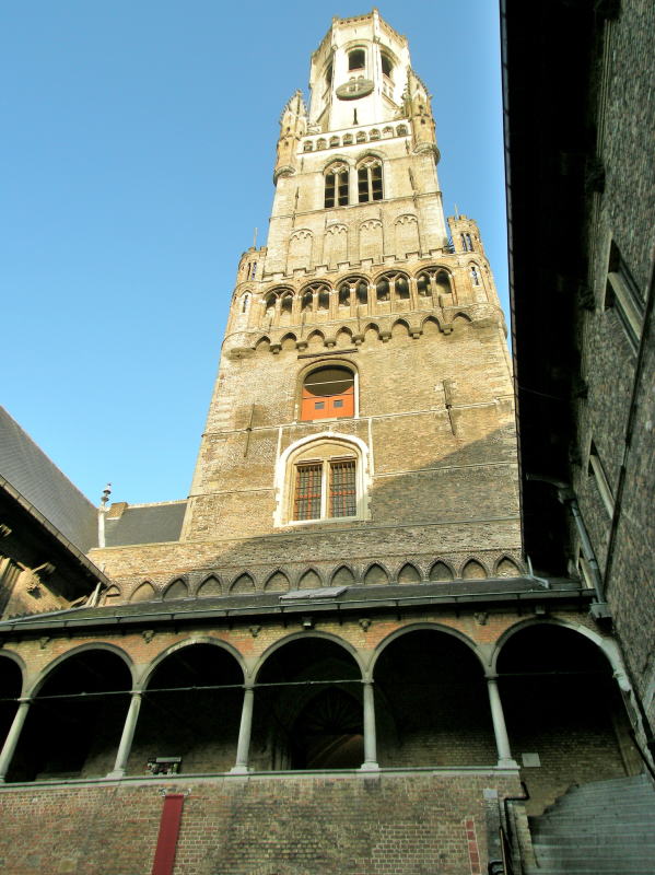| 鐘楼 [Belfort](09:39) マルクト広場でもひときわ高く、威容を誇る巨大な建造物。 1300年頃に建造された後、13~15世紀に幾度かの拡張工事を重ねて完成した。 ブルージュの最も重要な塔で、高さは83メートルあり、366段の階段を上った最上階には鐘数47のカリヨンがある。 最上階からは、ブルージュとその周辺の息をのむパノラマビューが満喫できる。 「南東」MAP Lay.1K |