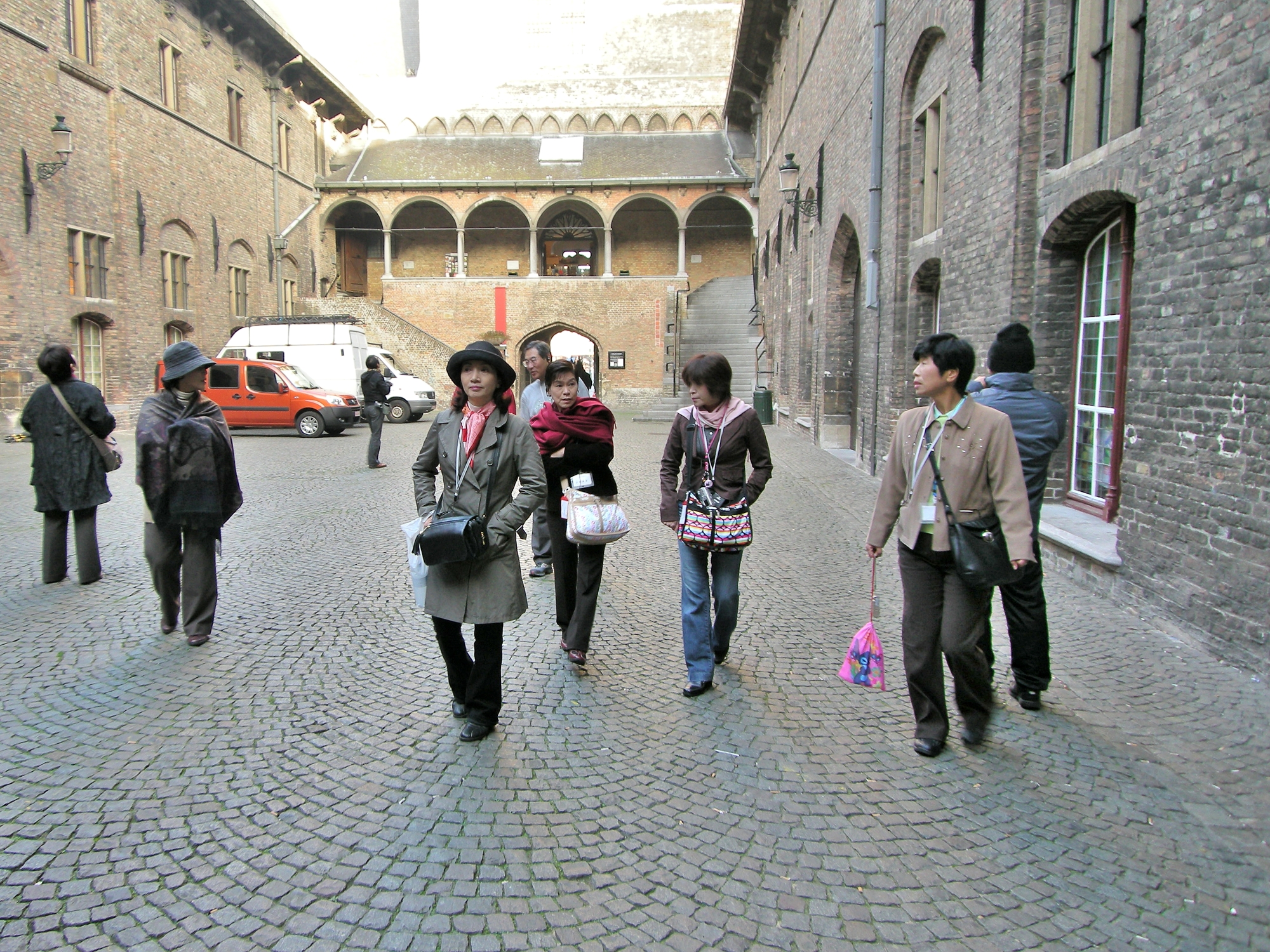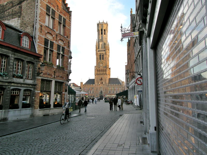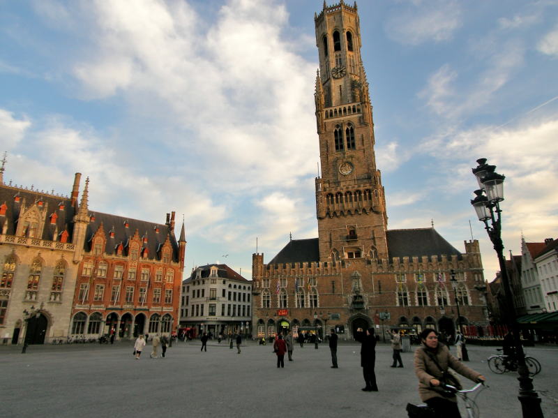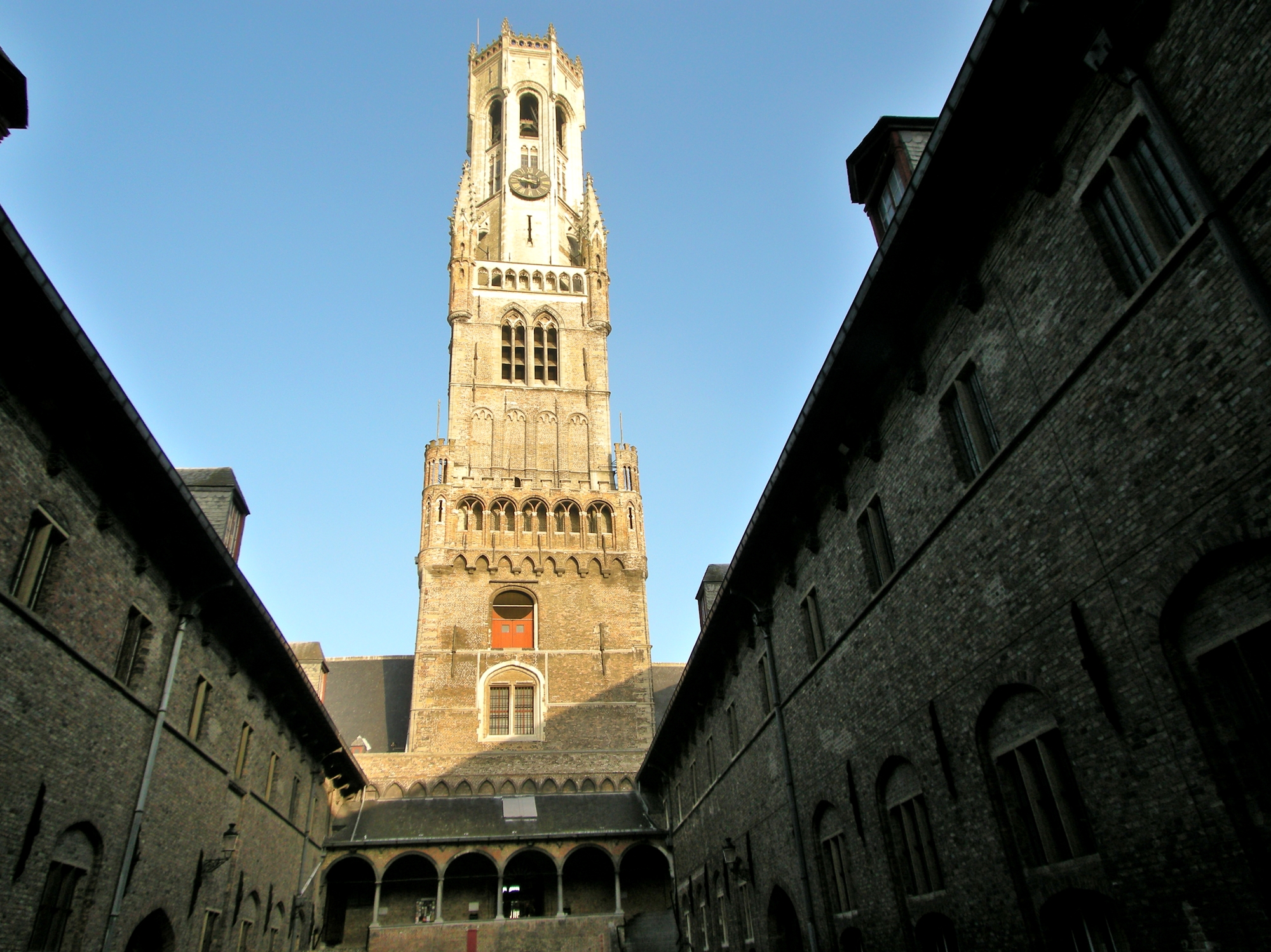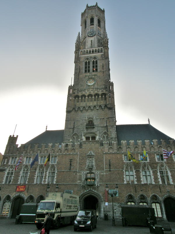 | 鐘楼 [Belfort](09:29) マルクト広場でもひときわ高く、威容を誇る巨大な建造物。 1300年頃に建造された後、13~15世紀に幾度かの拡張工事を重ねて完成した。 ブルージュの最も重要な塔で、高さは83メートルあり、366段の階段を上った最上階には鐘数47のカリヨンがある。 最上階からは、ブルージュとその周辺の息をのむパノラマビューが満喫できる。 「南」MAP Lay.1G |