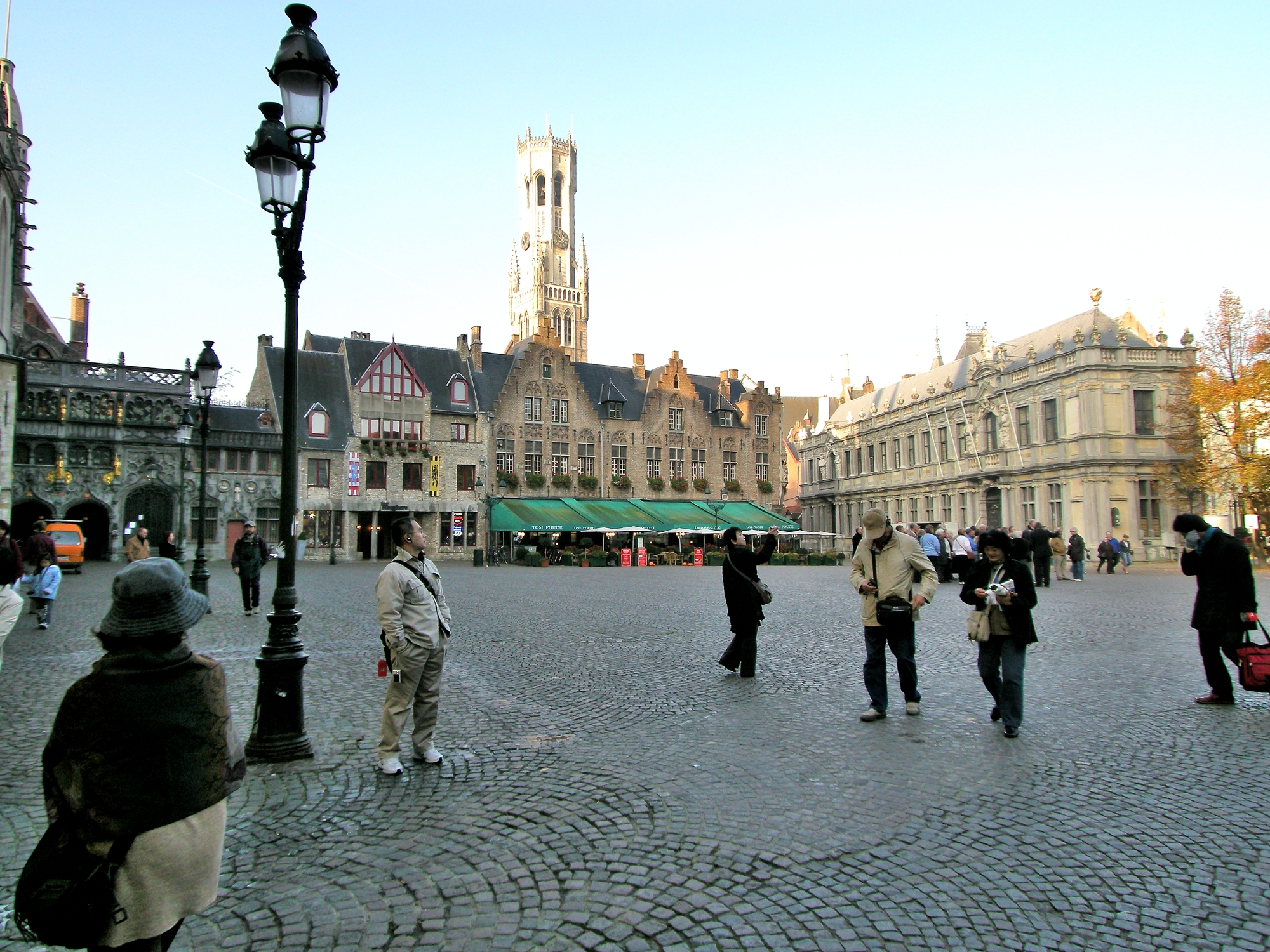 | マルクト [Markt](18:10) 前方にはマルクト広場の鐘楼 [Belfort] が聳えている。 「南東」MAP Lay.3H |