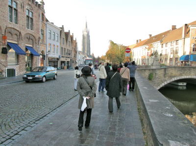 | 運河 "Dijver" をクルーズ(10:48) この辺りの風景は、ブルージュを代表する風景で、商業写真など、好まれて撮影される場所。 「北西」MAP Lay.2D |