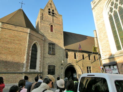 | ダイフェル [Dijver](10:06) 中央に、"聖血礼拝堂" [Basilica of the Holy Blood] がある。 第2回十字軍遠征に参加したフランドル伯ディードリックが、1149年に帰路でコンスタンチノープル(現イスタンブール)に立ち寄り、「キリストの血」とされる液体を持ち帰り、一族の礼拝堂に奉納したのが始まり。 「北西」MAP Lay.1Q |