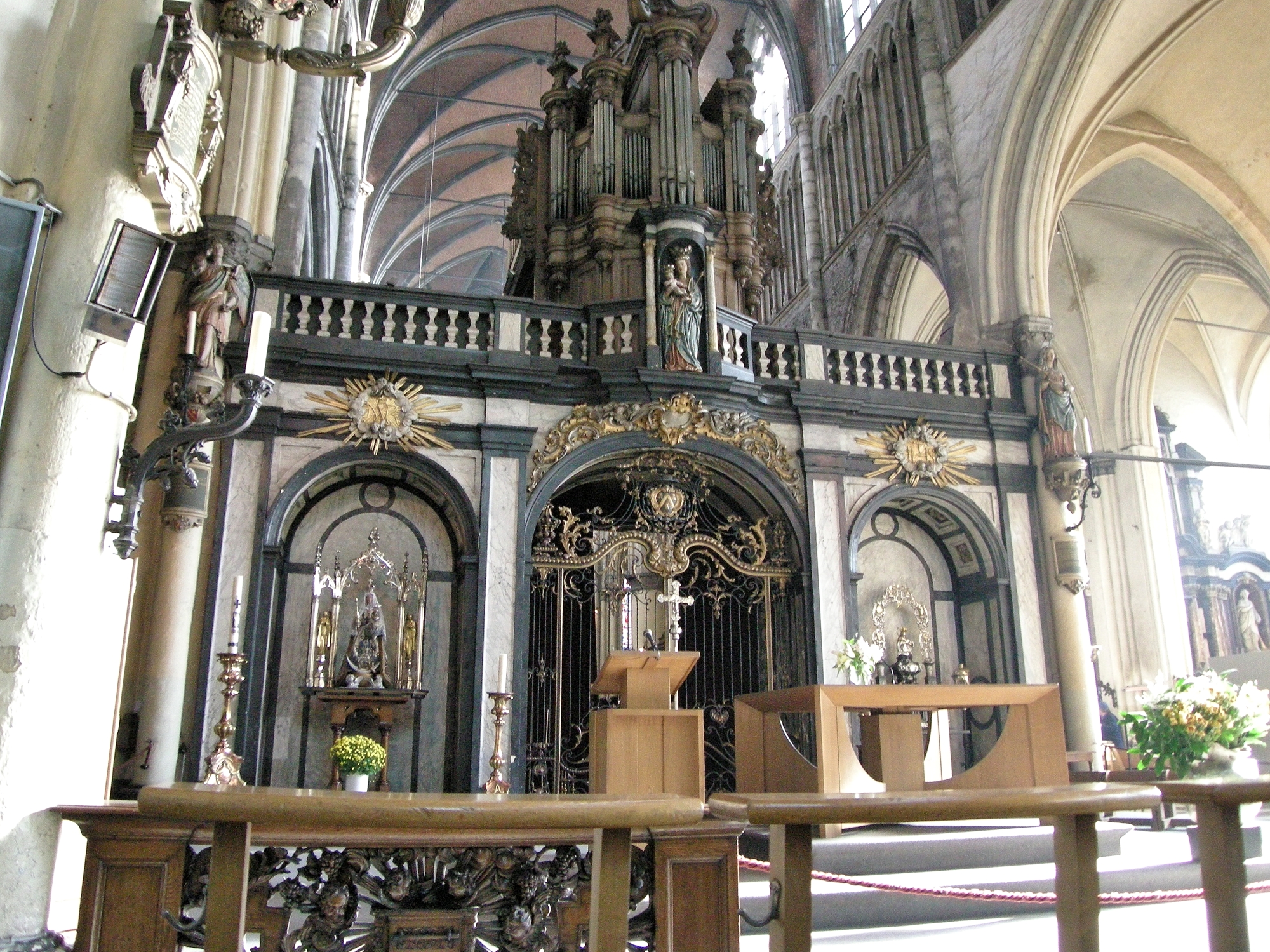 | 聖母教会 [Onze Lieve Vrouwekerk](11:18) 南の翼廊の祭壇に白大理石でできたミケランジェロ作 "聖母子像" [Madonna met kind] がある。 MAP Lay.2U |