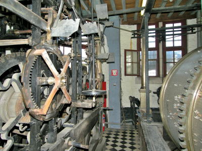 | 鐘楼 [Belfort] の最上階(13:56) マルクト広場にある鐘楼の最上階に上れば、計47個、総重量27tのカリヨンの鐘の構造を間近に見ることが出来る。 MAP Lay.2j |