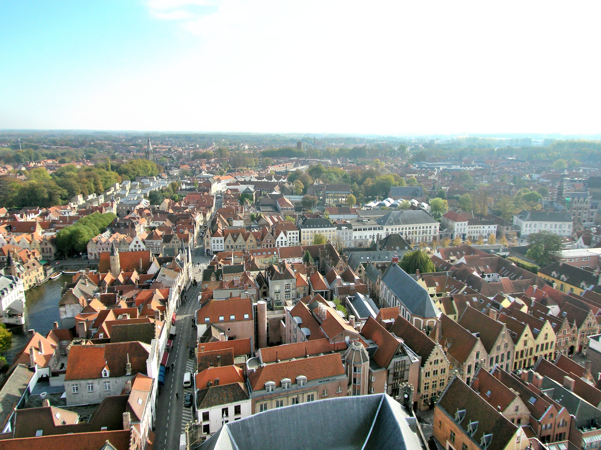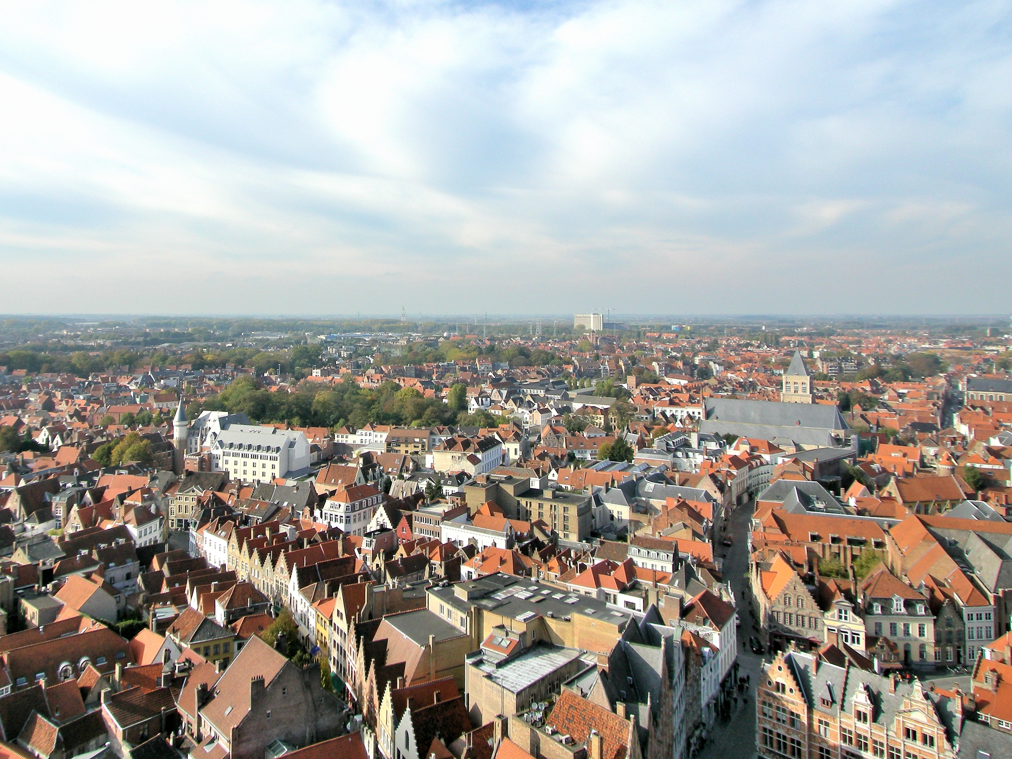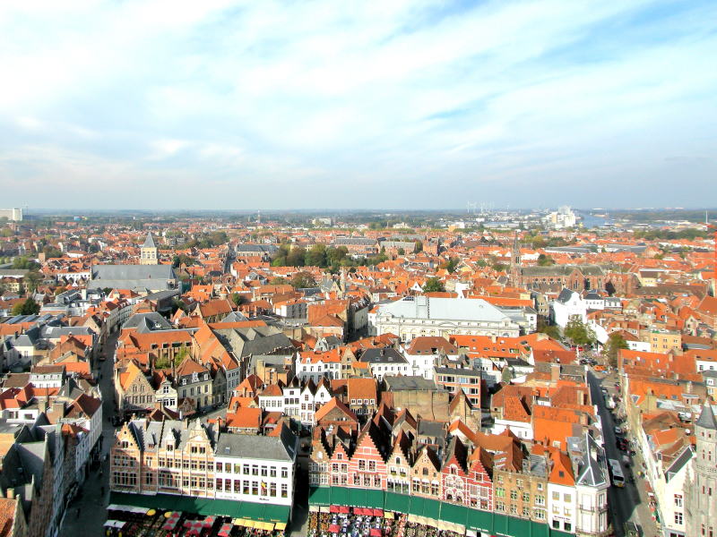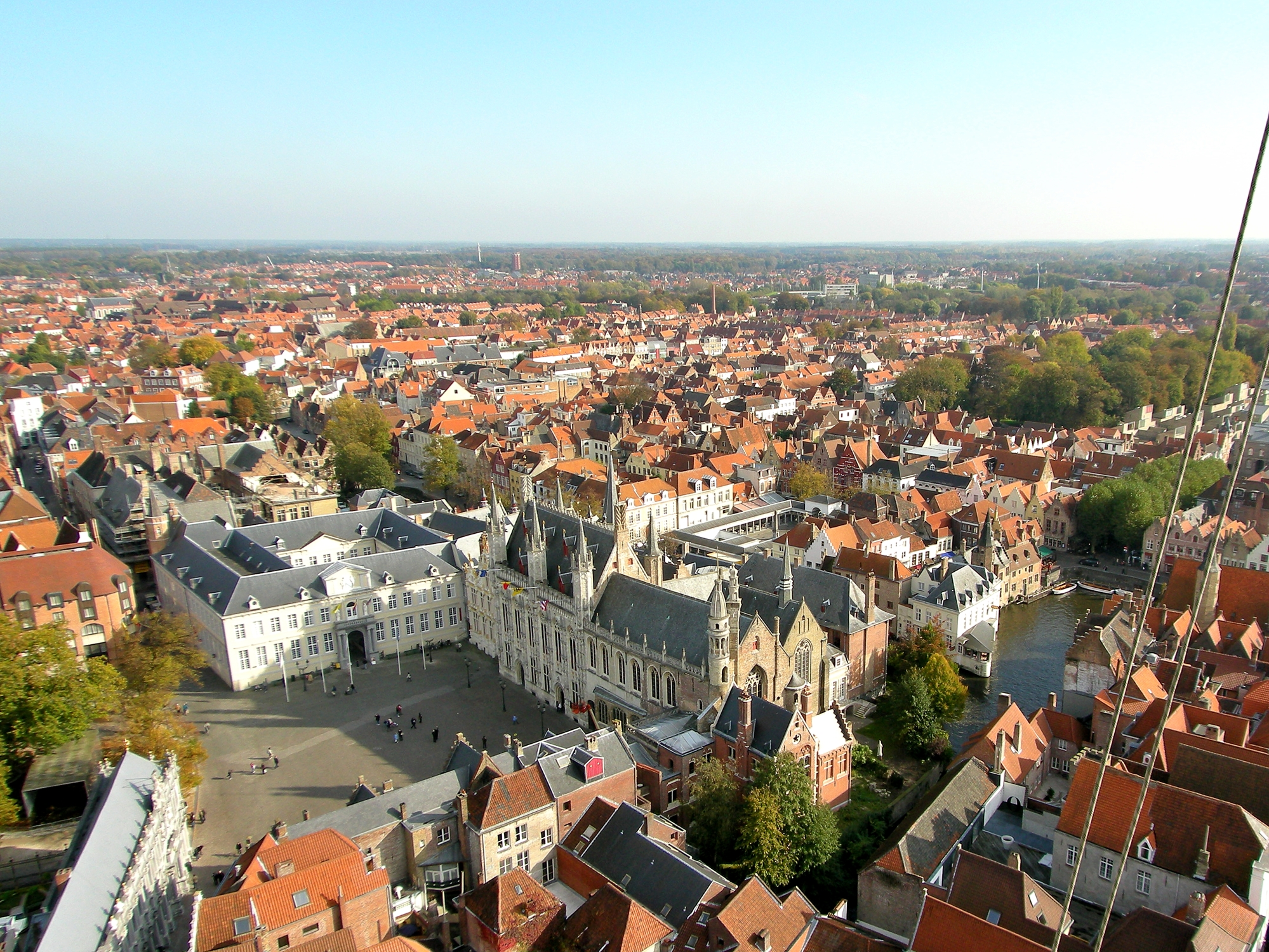 | 鐘楼 [Belfort] 最上階からの景観(14:03) 左に見える広場はブルグ広場 [Burg Square] 、右に見える運河はダイフェル [Dijver] 。 「東」MAP Lay.2k |