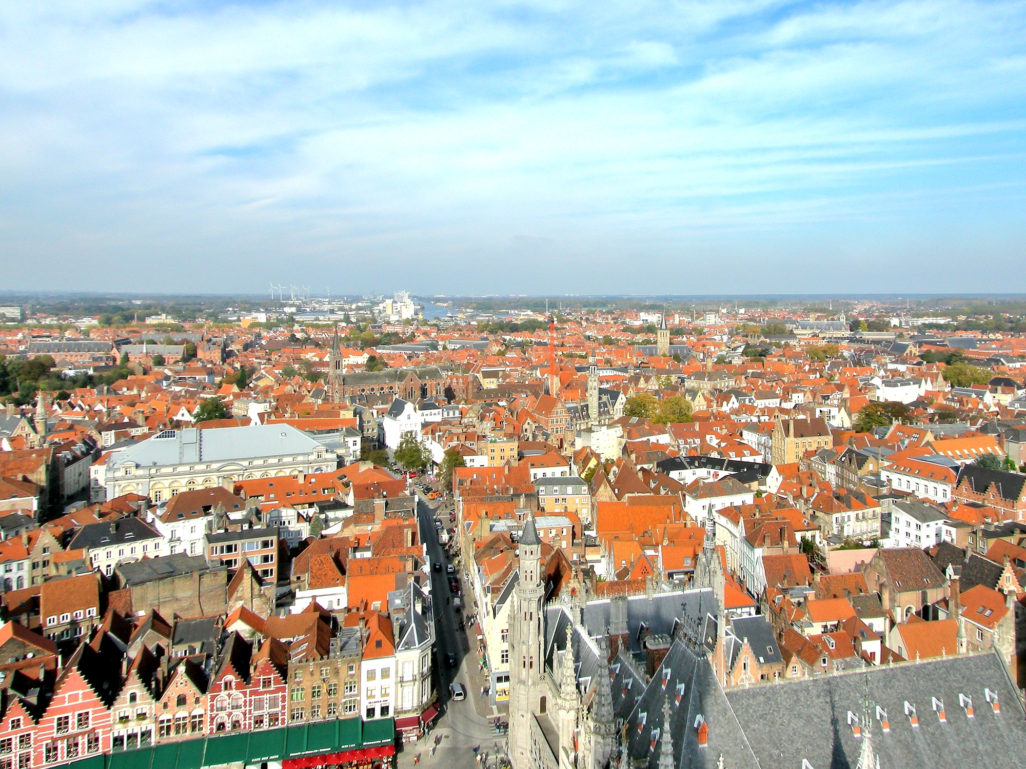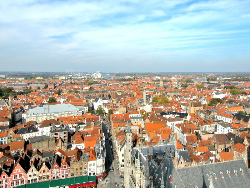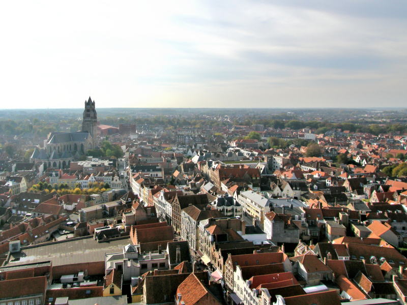 | 鐘楼 [Belfort] 最上階からの景観(14:08) 左に見える塔は "聖救世主大聖堂" [Sint-Salvatorskathedraal] 。 「南西」MAP Lay.2k |