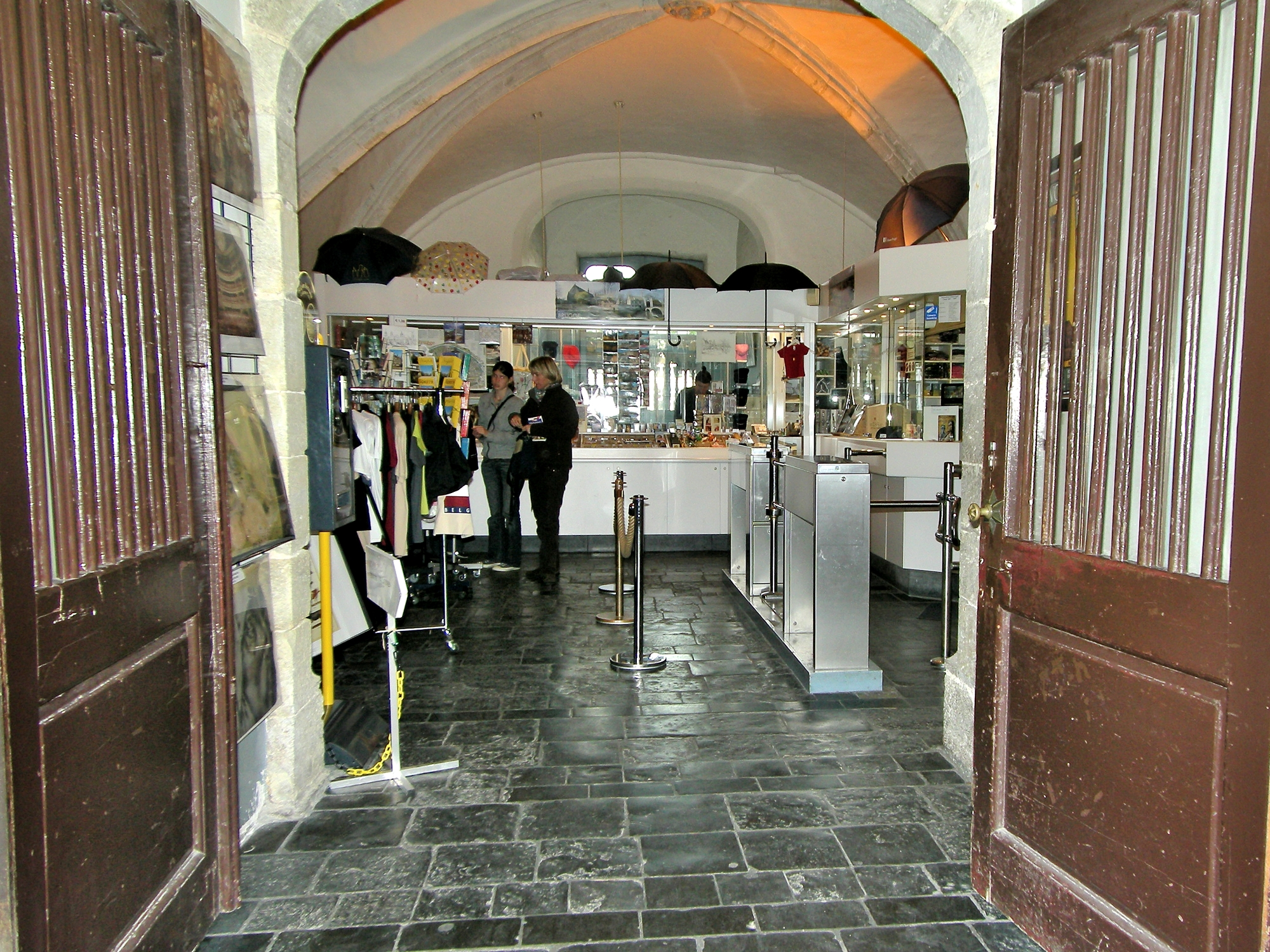 | 鐘楼 [Belfort](09:46) 鐘楼と一体化された建物の内側から見た鐘楼。 左右の階段を上れば、鐘楼へのチケット売り場に行ける。 「北西」MAP Lay.1L |