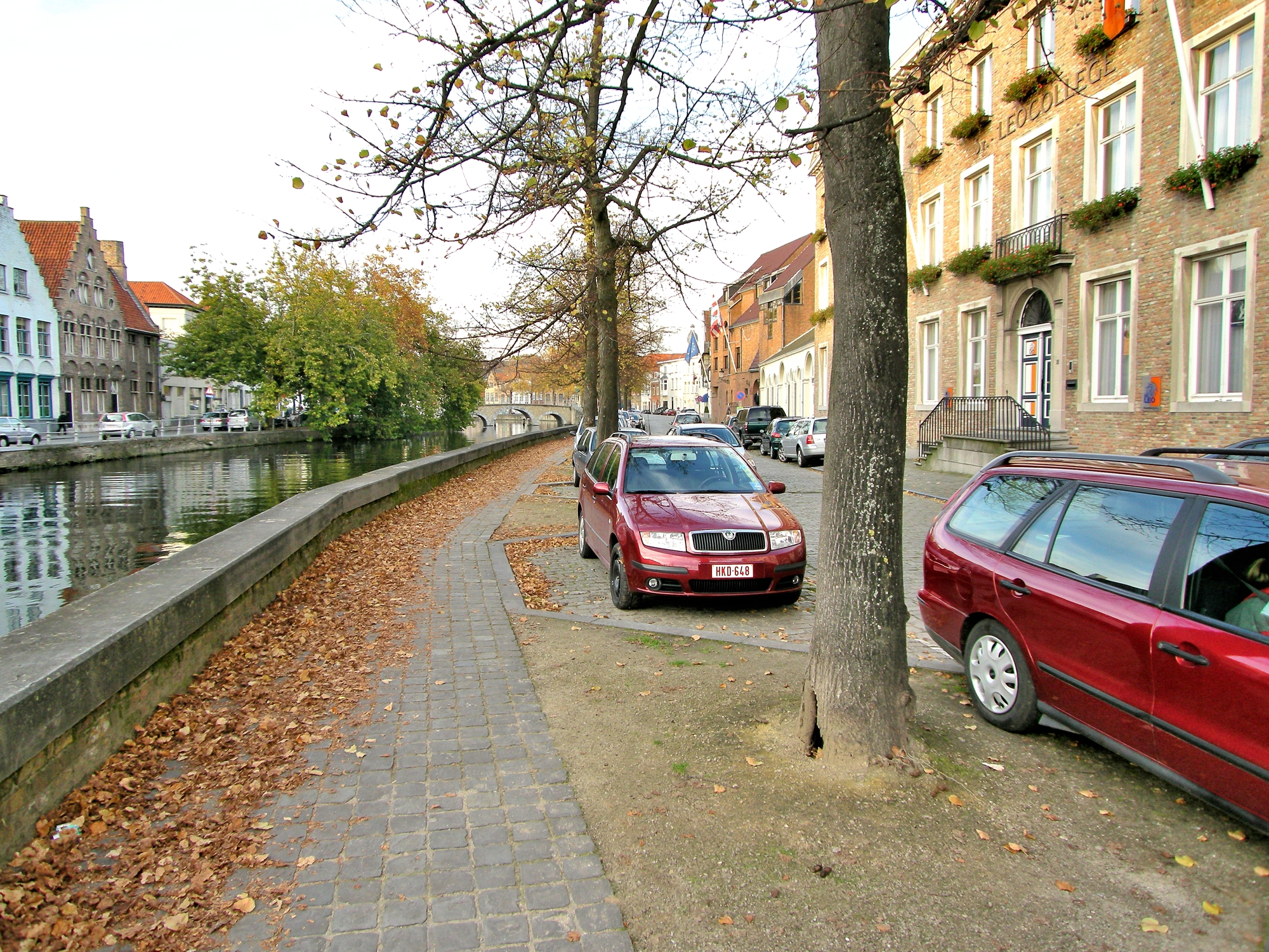 | ダイフェル [Dijver](10:02) 左に見える塔は、聖母教会 [Onze Lieve Vrouwekerk] 。 左の岸壁に沿って走る道路は、"ローゼンフートカーイ" [Rozenhoedkaai] 。 「南西」MAP Lay.1P |