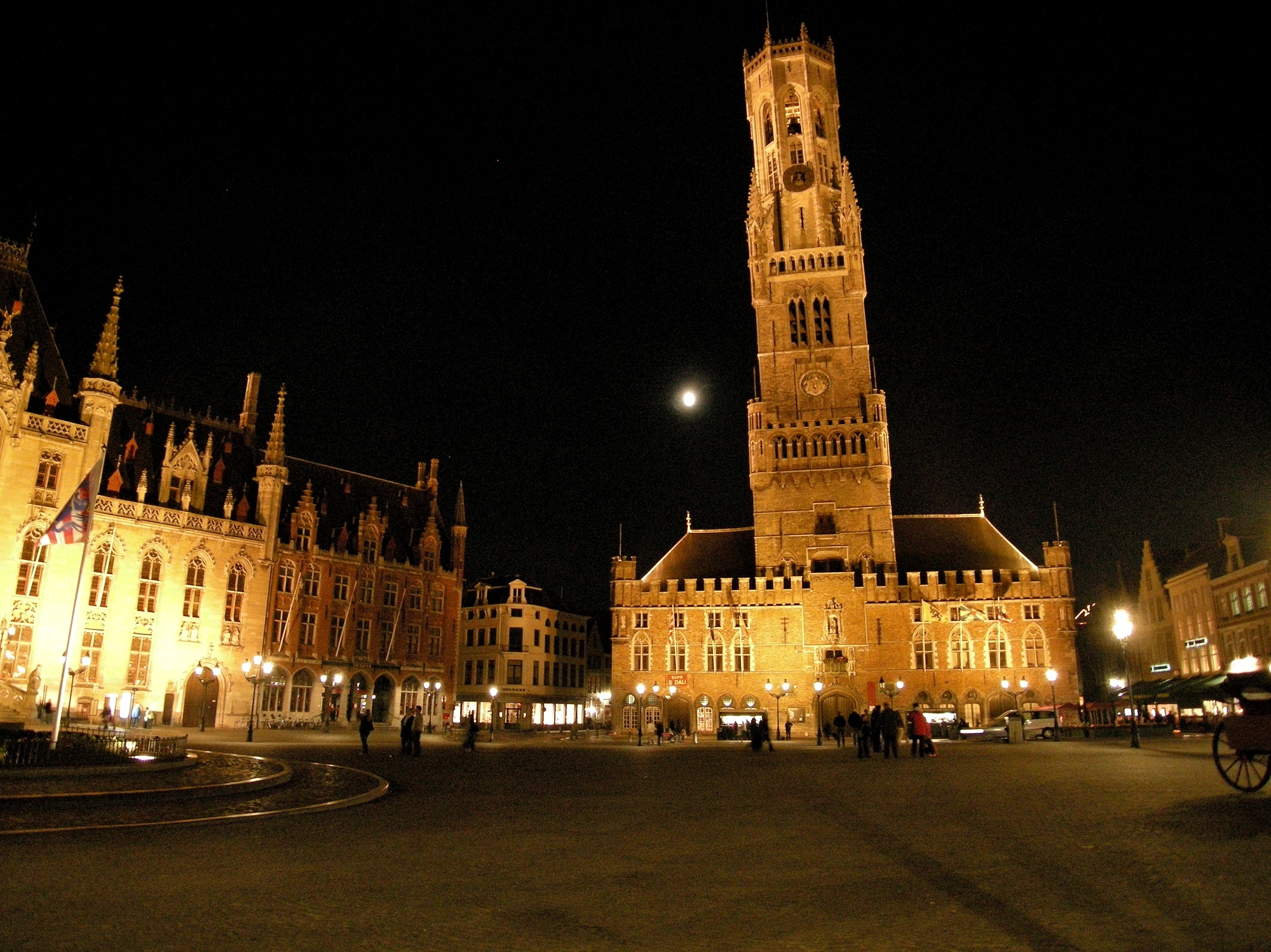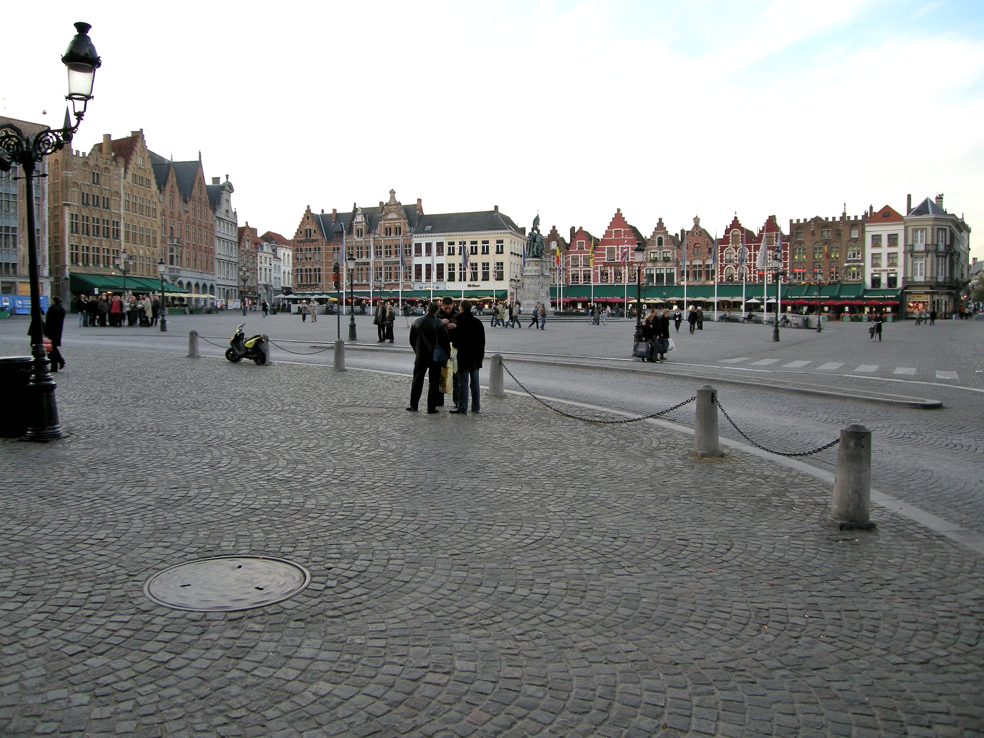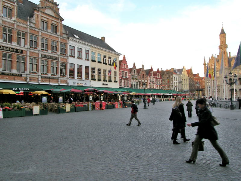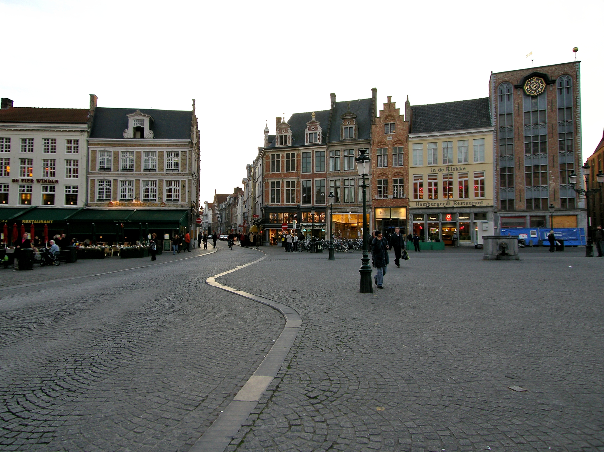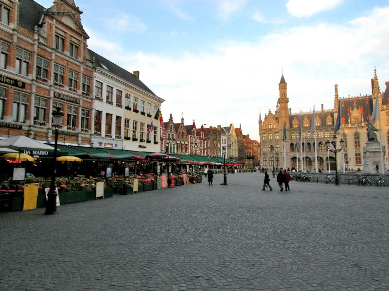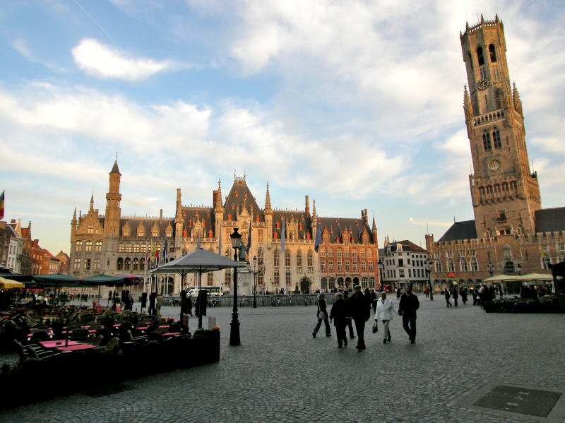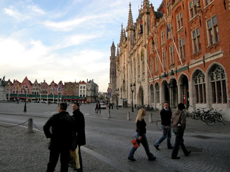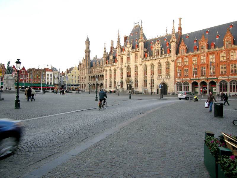 | マルクト広場 [Markt](18:10) 正面の建物は州庁舎 [Provinclaal Hof] 、右の建物は鐘楼 [Belfort] 。 「東南東」MAP Lay.3I |