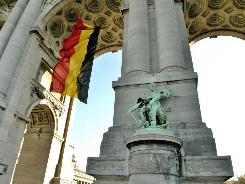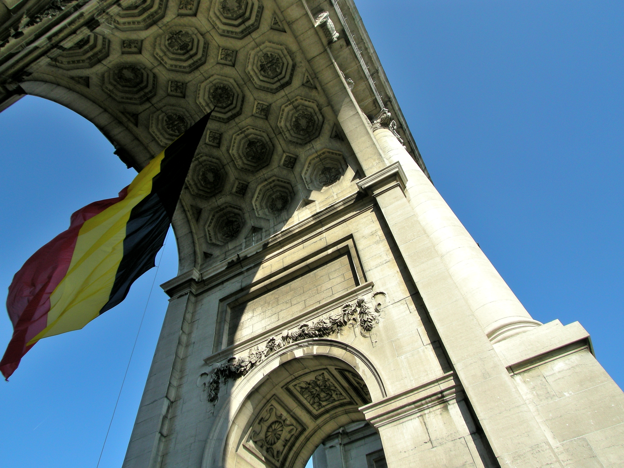 | サンカントネール門 [Arcades du Cinquantenaire](12:15) 中央のアーケードには、ベルギー国旗が掲揚されている。 「北」MAPLay.3C |