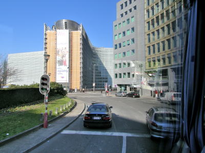 | EU委員会本部の建物(12:33) 左のヒトデのような形の建物が、EU委員会本部[Commission européenne / Europese Commissie] 。 「北西」MAPLay.3E |