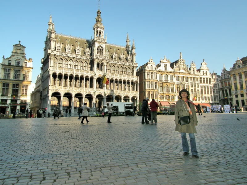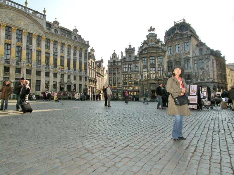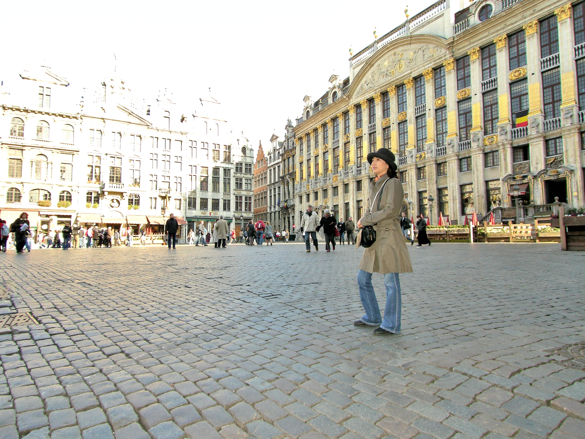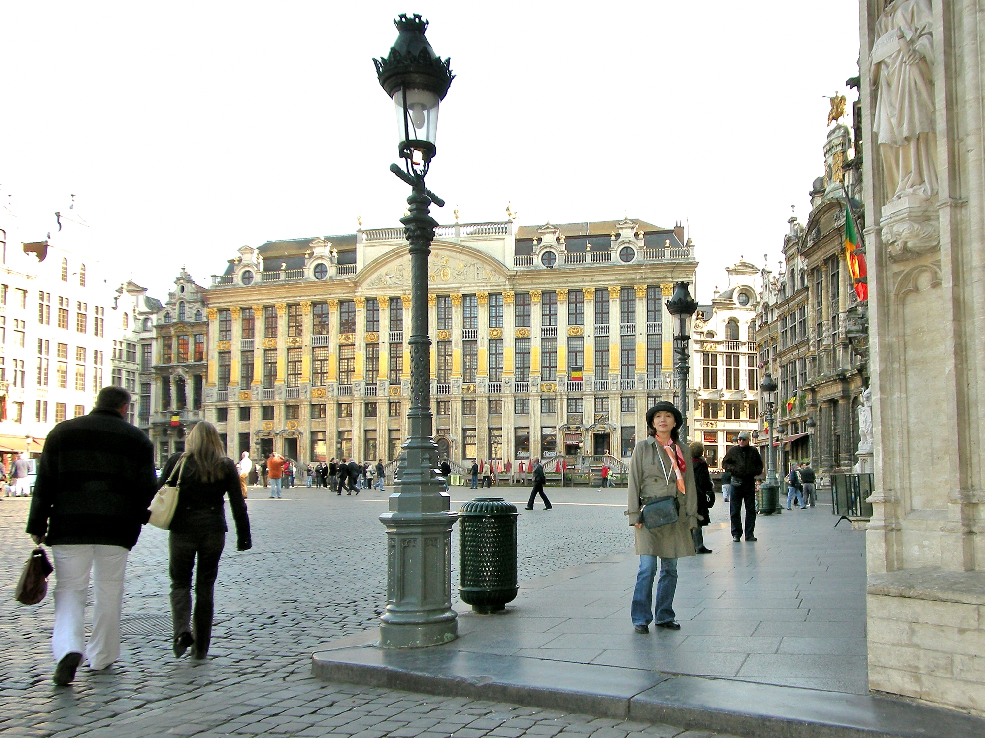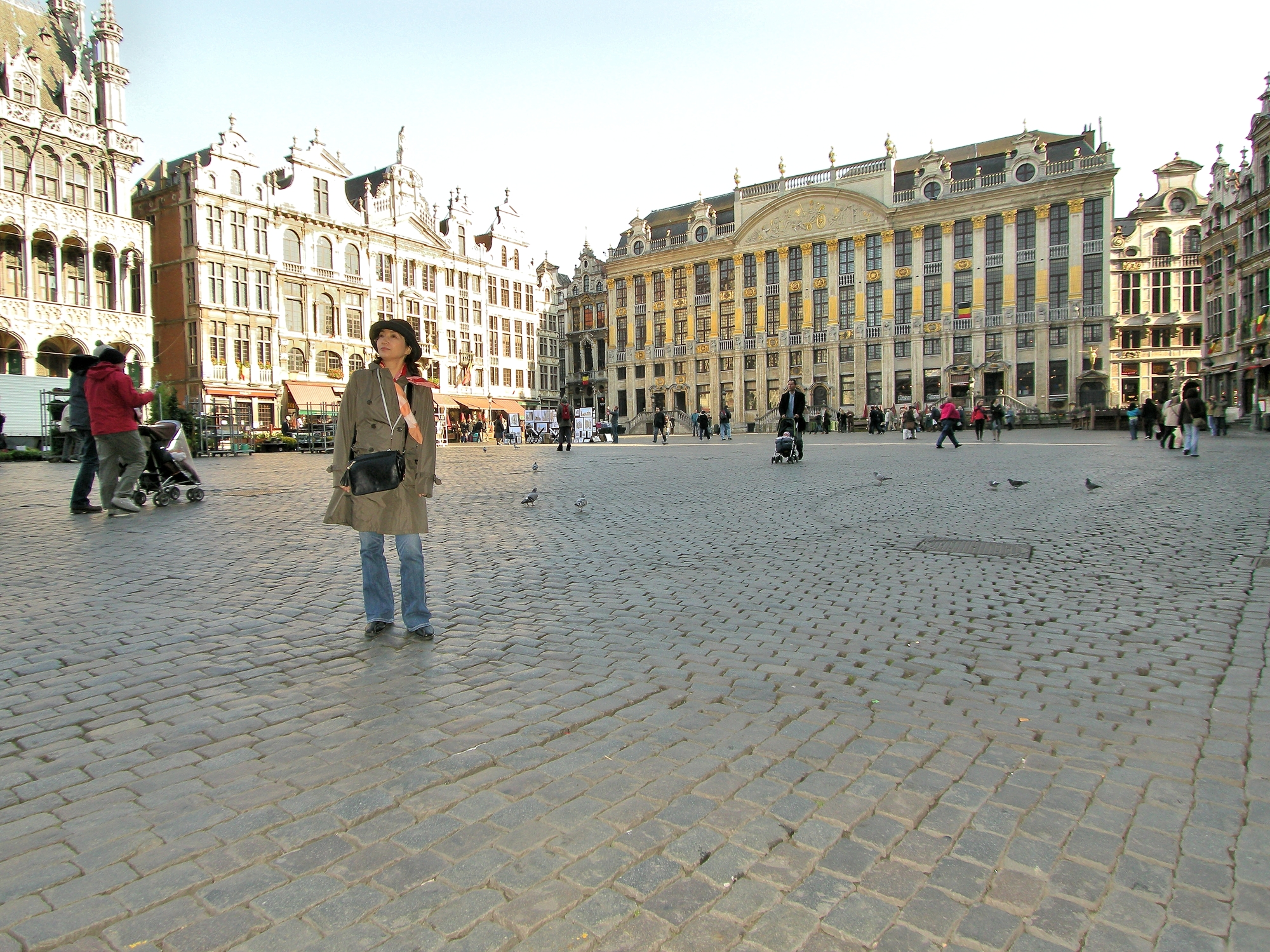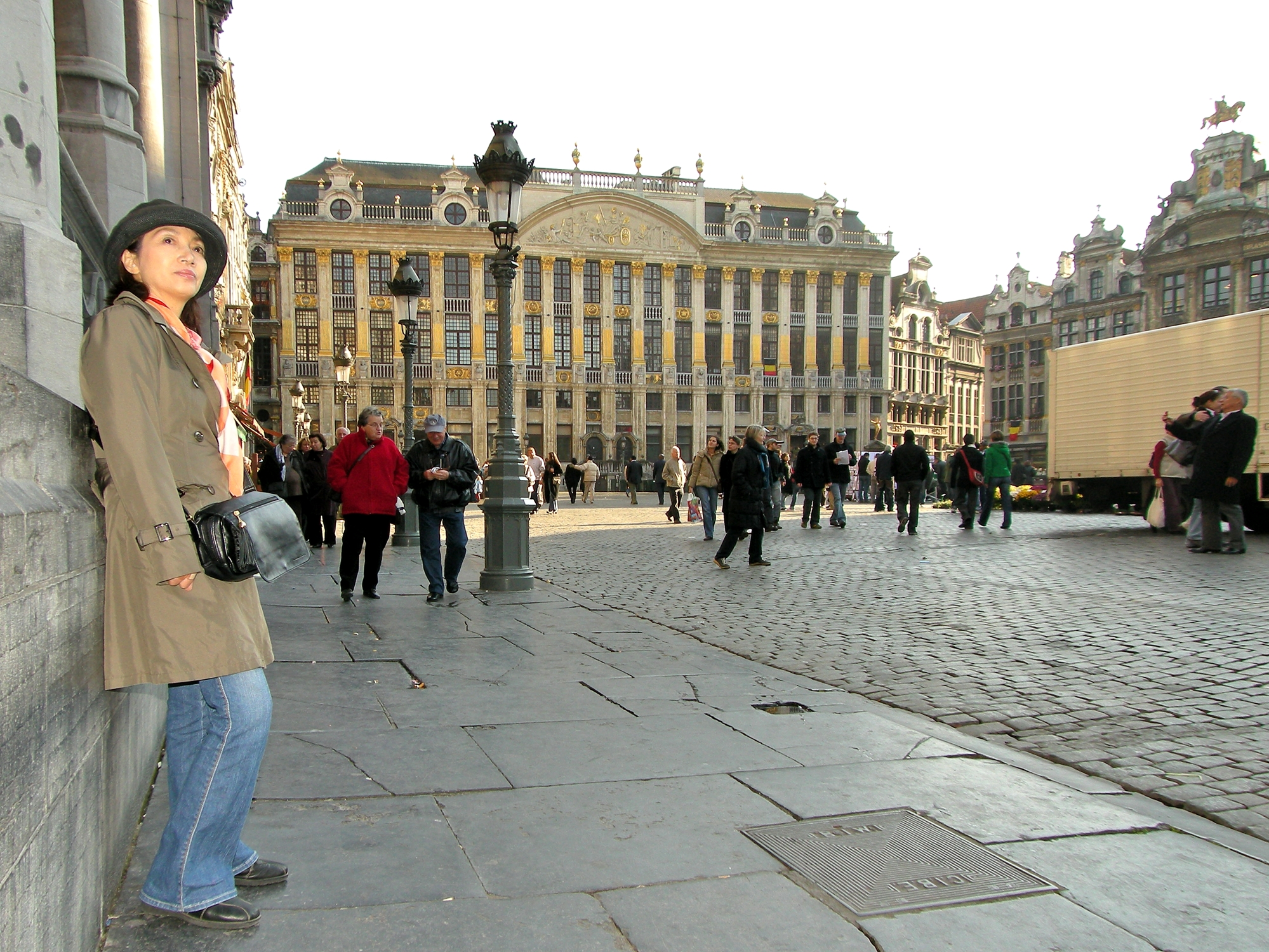 | スペイン広場 [Place d'Espagne](16:15) ツアーバス待ちのため、この広場でしばらく過ごす。 中央に見える塔は、グランプラスの市庁舎の塔。 「西」MAPLay.3j |