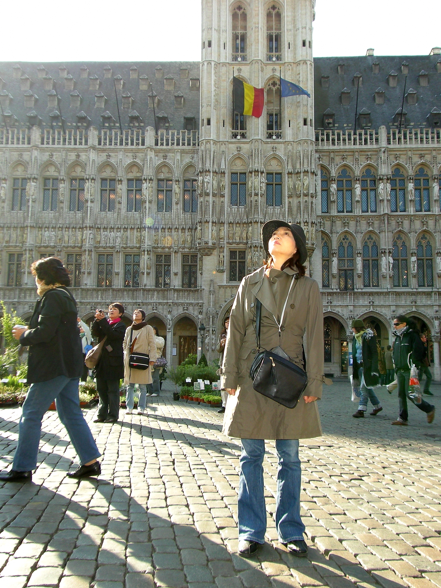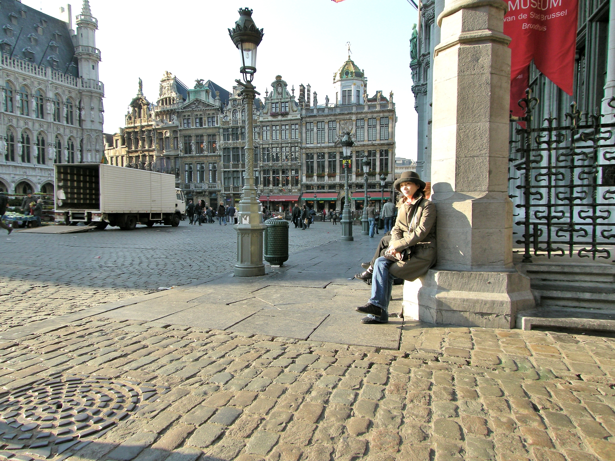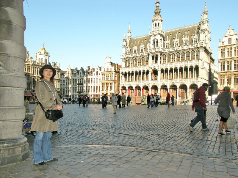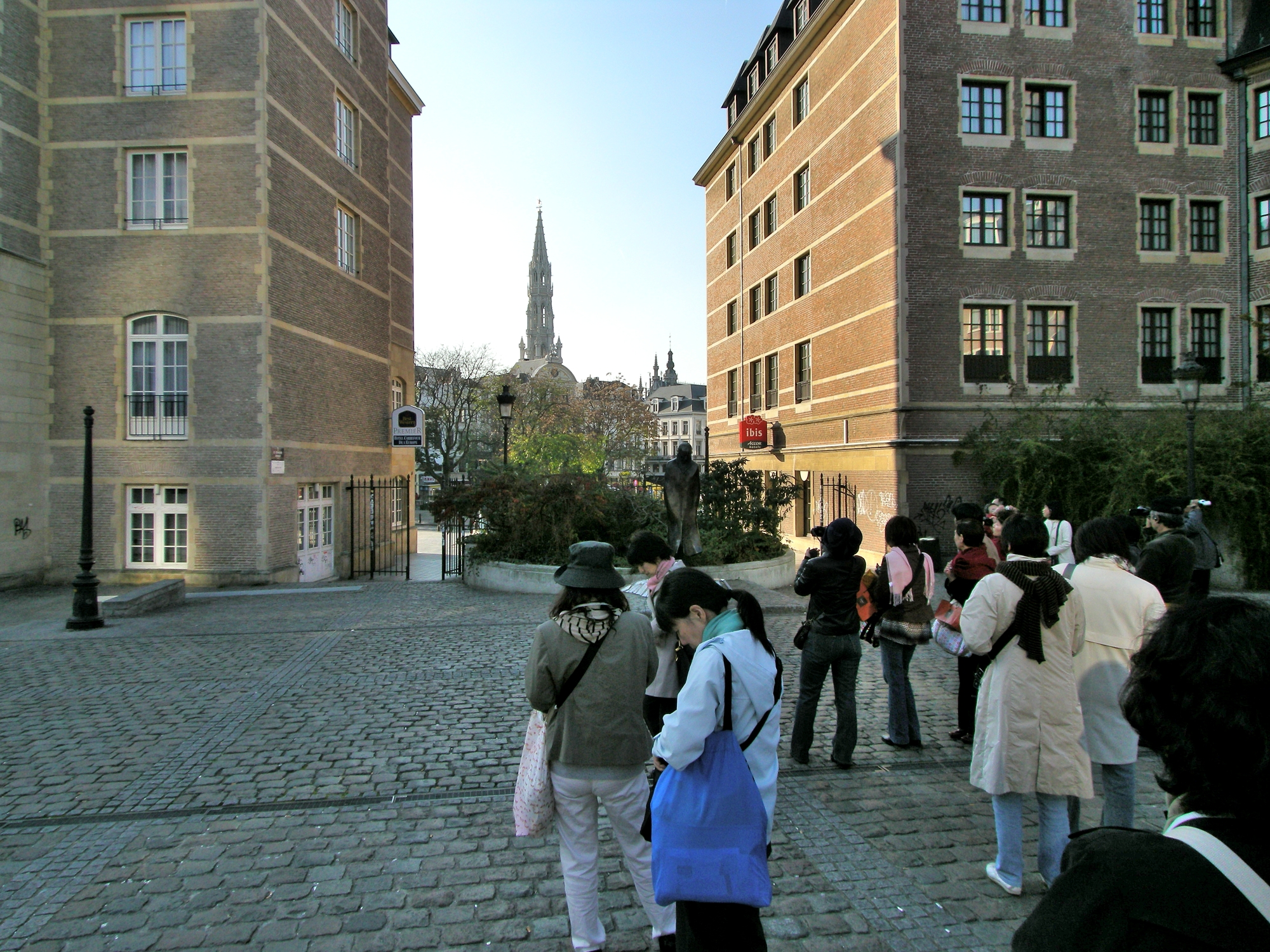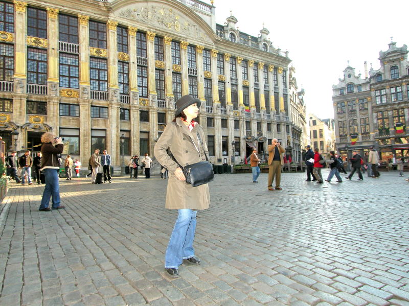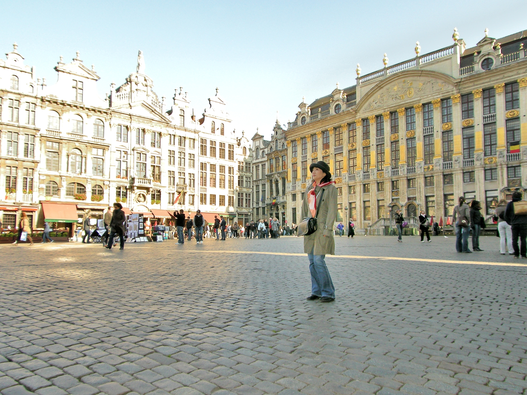 | スペイン広場 [Place d'Espagne](16:15) ツアーバス待ちのため、この広場でしばらく過ごす。 中央に見える塔は、グランプラスの市庁舎の塔。 「西」MAPLay.3j |