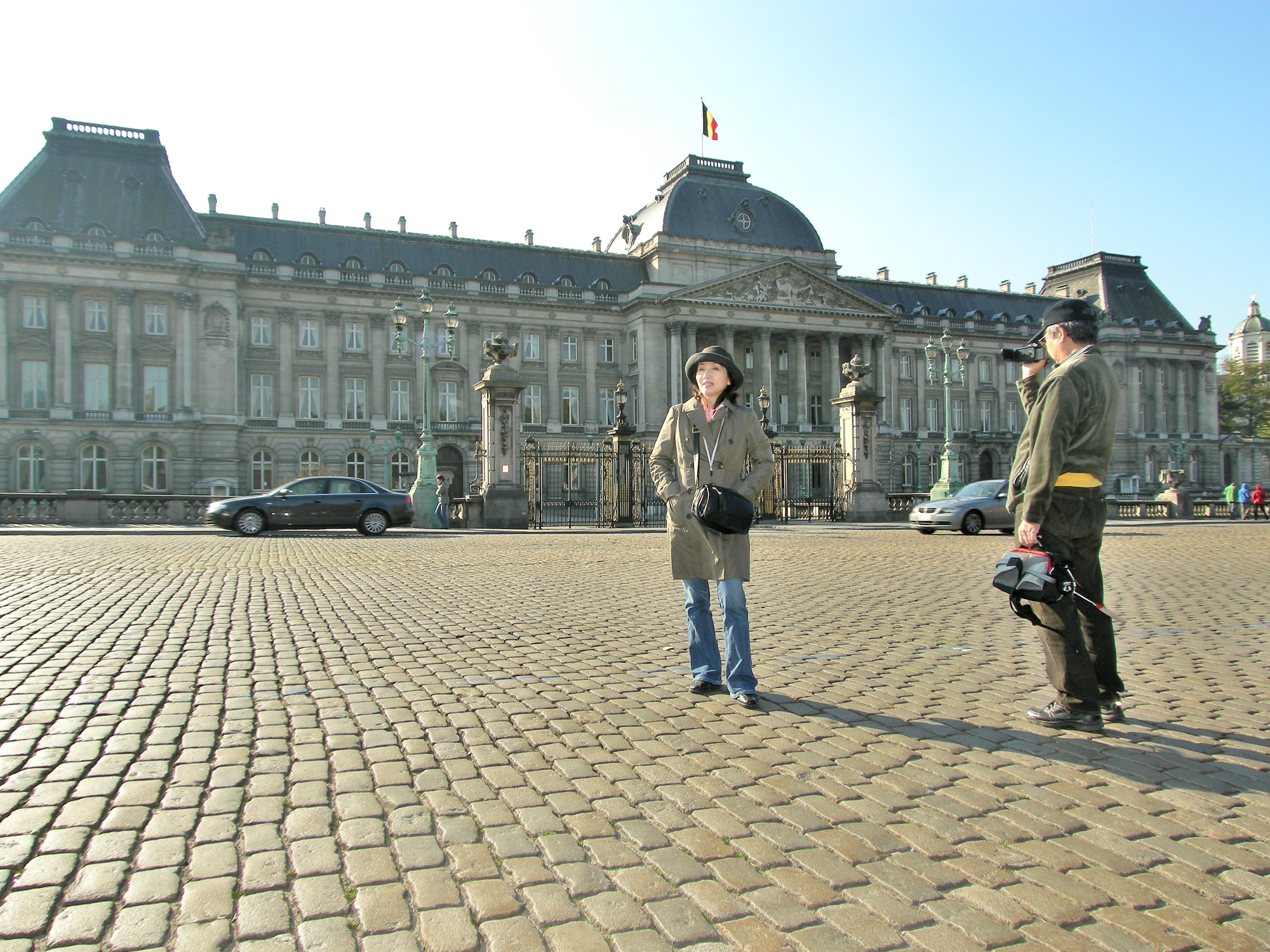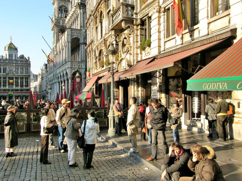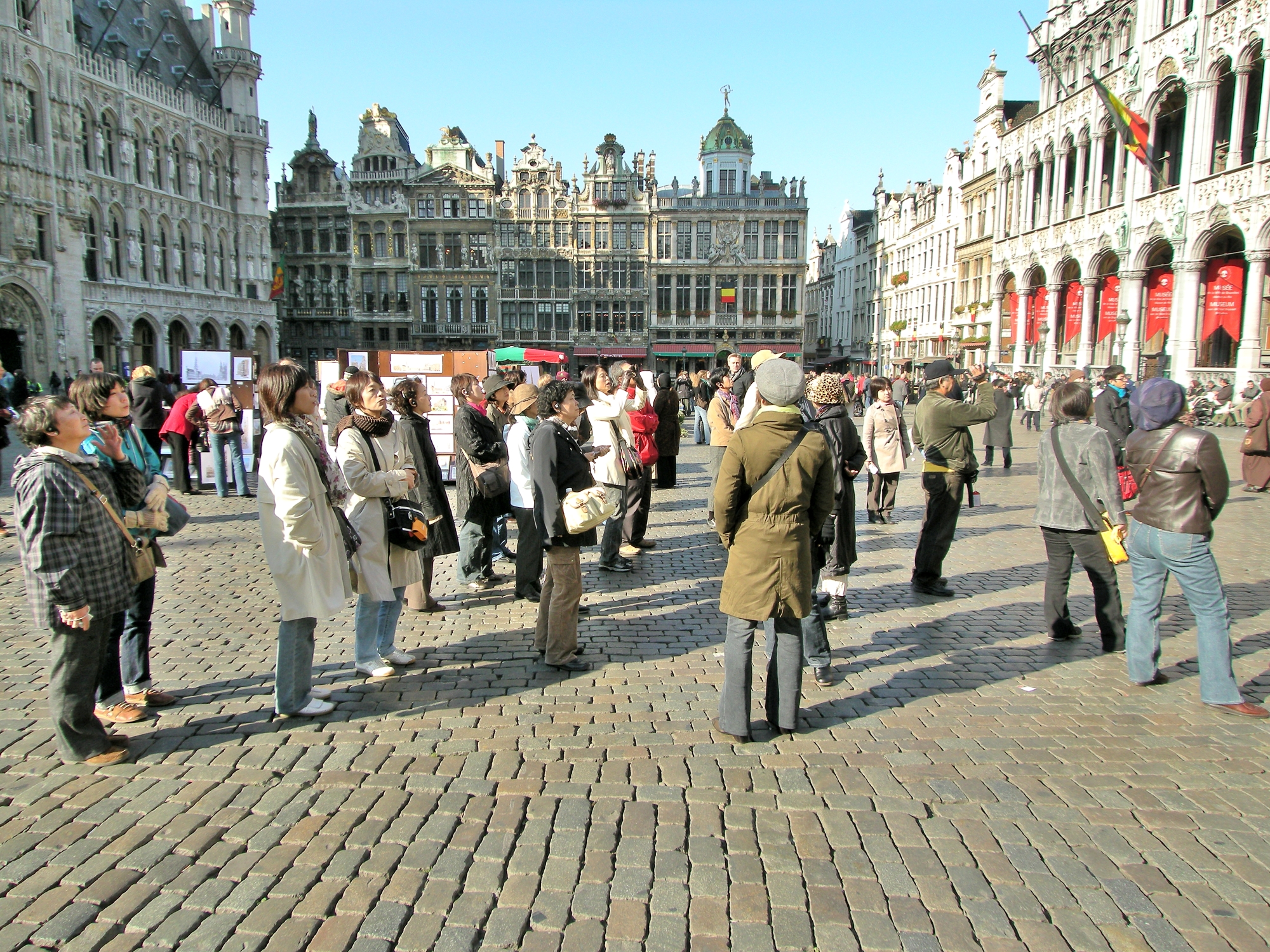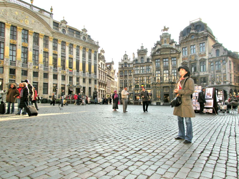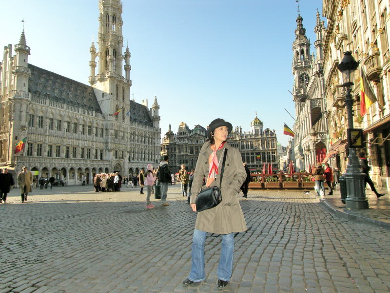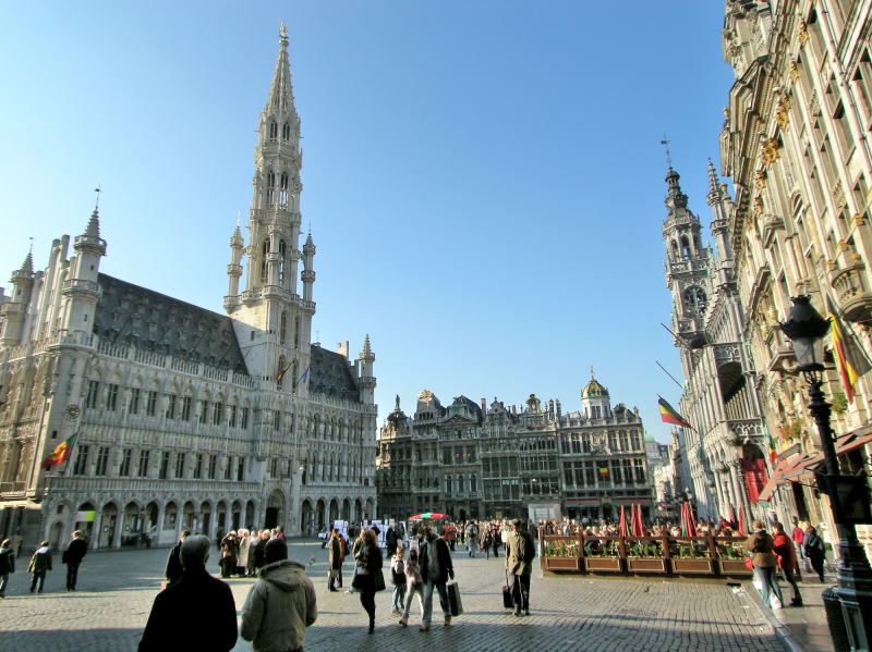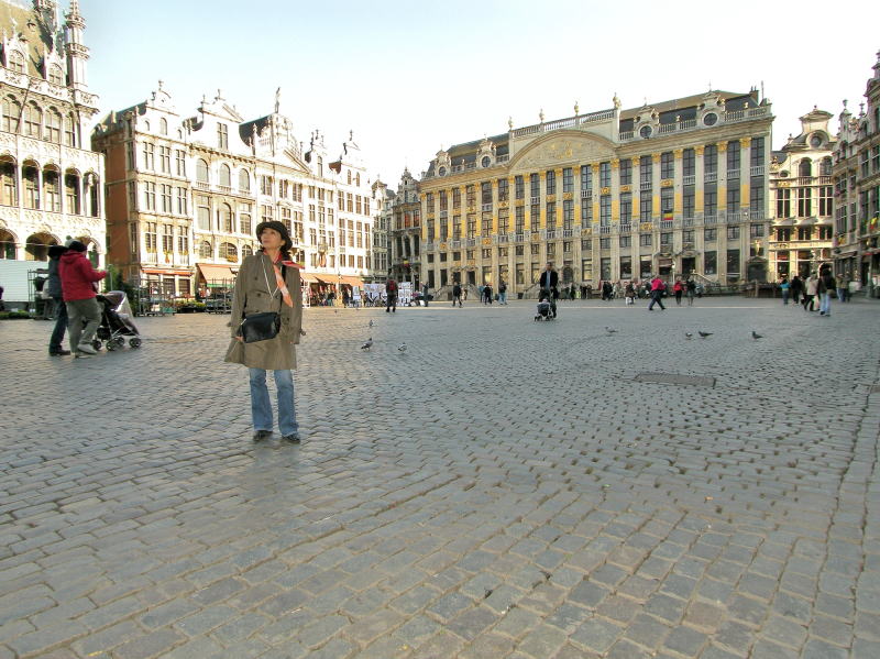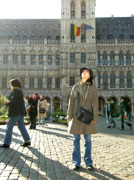 | スペイン広場 [Place d'Espagne](16:15) ツアーバス待ちのため、この広場でしばらく過ごす。 中央に見える塔は、グランプラスの市庁舎の塔。 「西」MAPLay.3j |