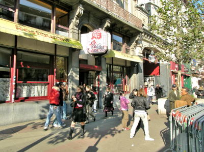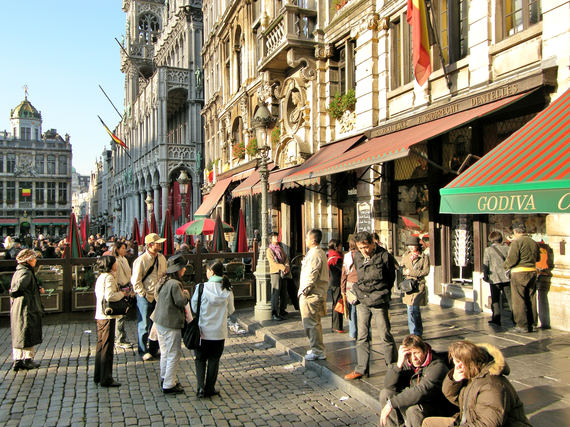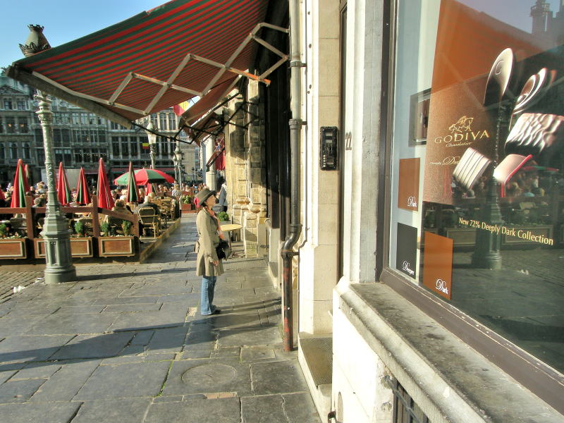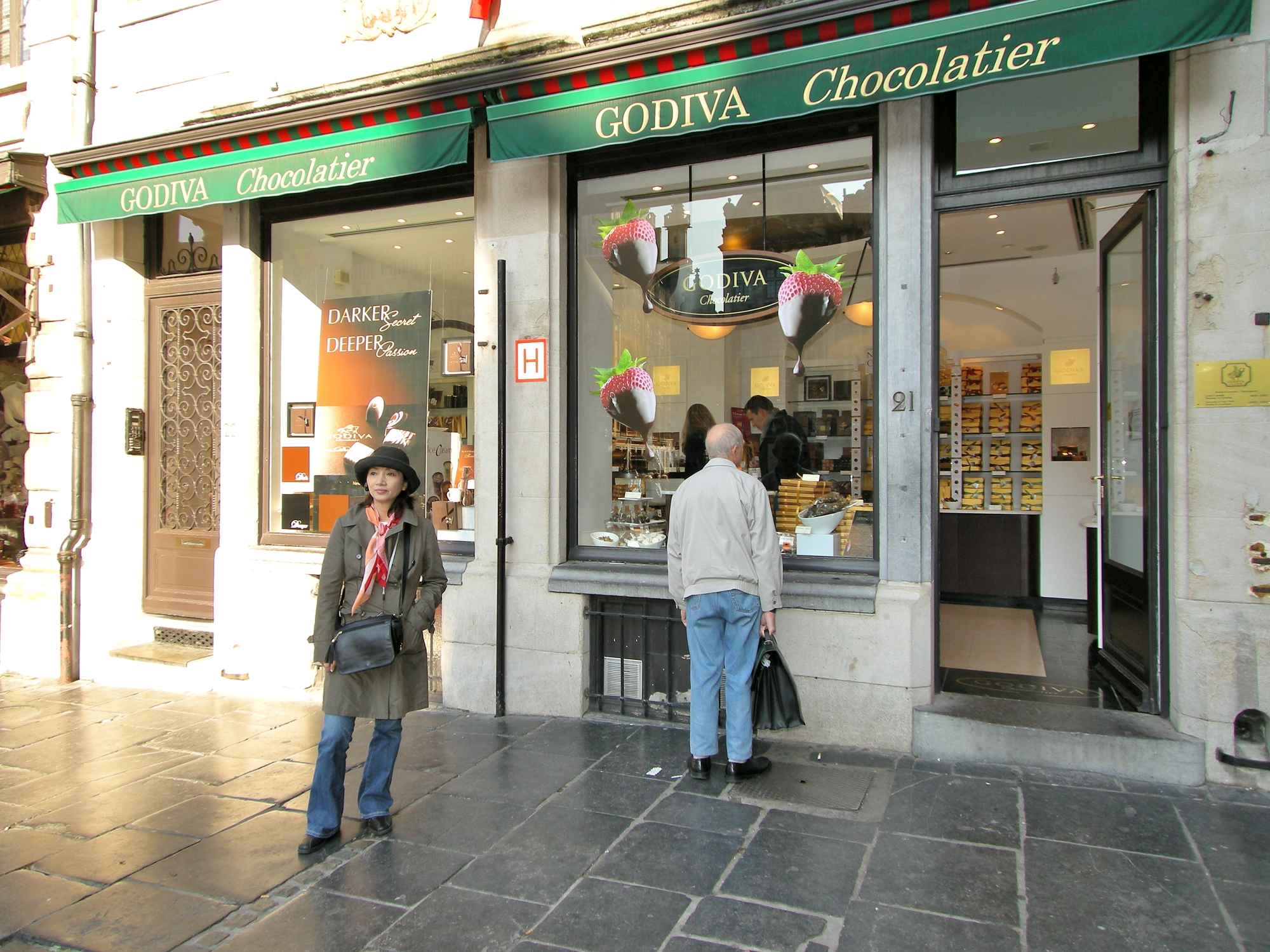 | GODIVA本店(15:19) 1956年 「ショコラトリー・ドラップス」だった会社が 「ゴディバ」 となり、ブリュッセルのグランプラス広場に、「ゴディバ」 第1号店をオープンした。 「北東」MAPLay.3X |
