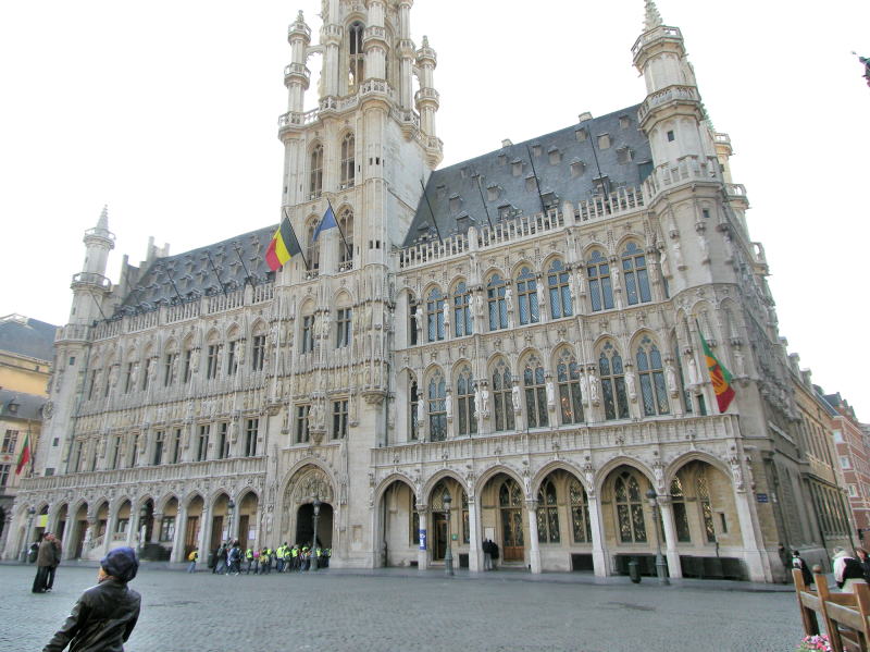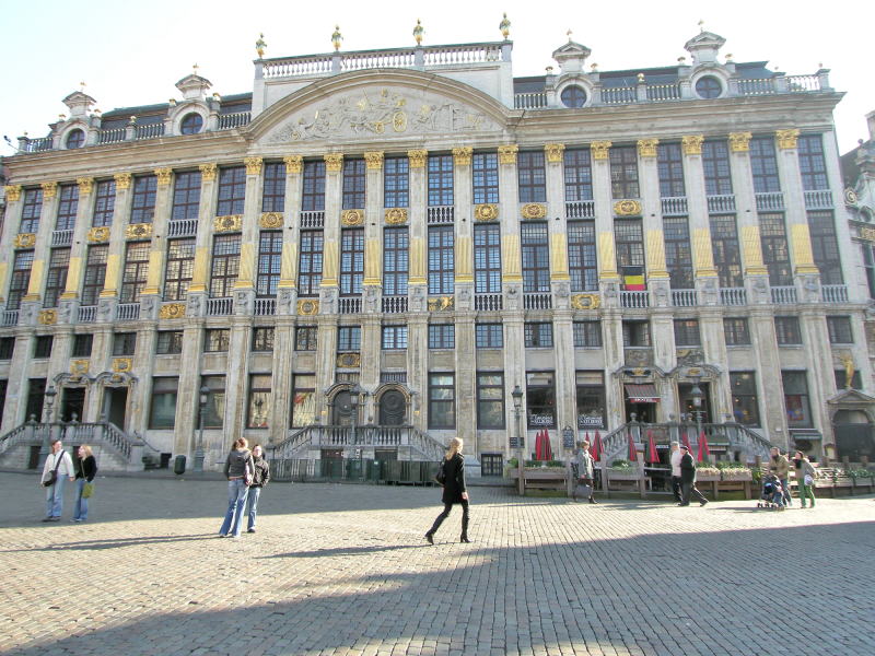 | ブリュッセル市立博物館 (王の家) [Musée de la ville de Bruxelles (Maison du Roi)](14:02) 12世紀以降パン市場として親しまれた木造建築物で、それゆえオランダ語では「パンの家」(broodhuis) と呼ばれていた。 15世紀になると石造にかわり、ブラバント公の行政庁が置かれるようになった。 これが理由で人々はこの建物を「公の家」と呼ぶようになり、公がスペイン王になると「王の家」と呼ぶようになった。 大同盟戦争中の砲撃 (1695年8月13日) などで損害を蒙ったため、1873年から1895年にかけて全体的にネオ・ゴシック様式に再建され、後期ゴシック様式を残した建物になっている。 建物は1985年に改築され、今は市立博物館として、絵画や小便小僧のワードローブなどを展示している。 「東南東」MAPLay.3M |