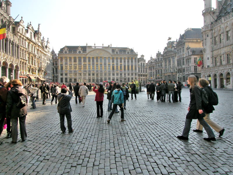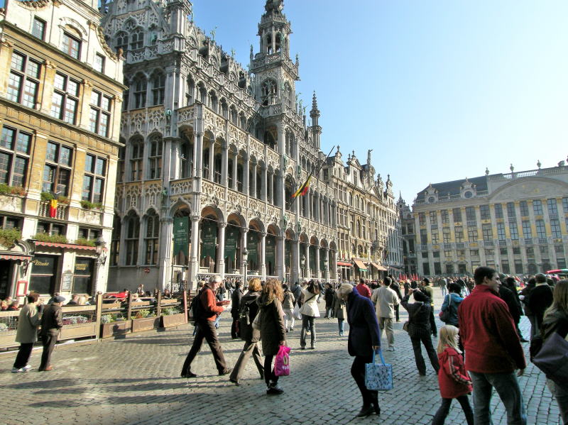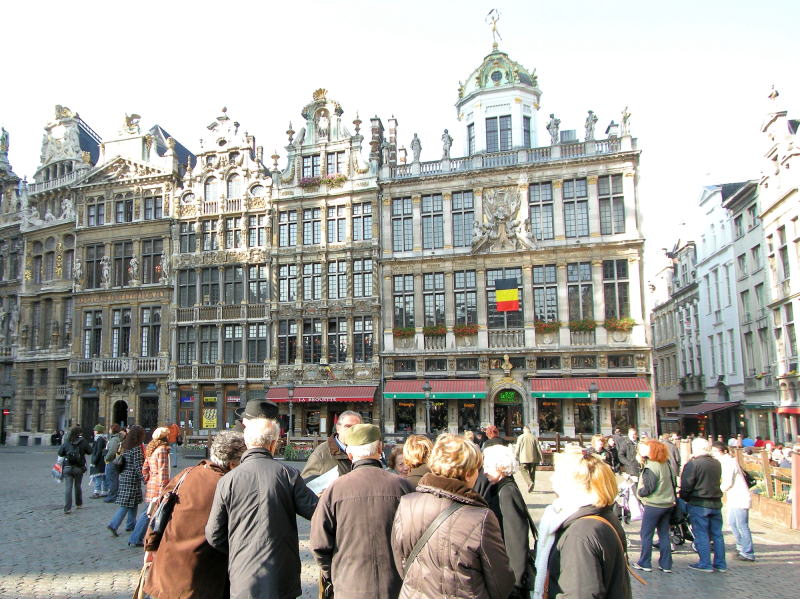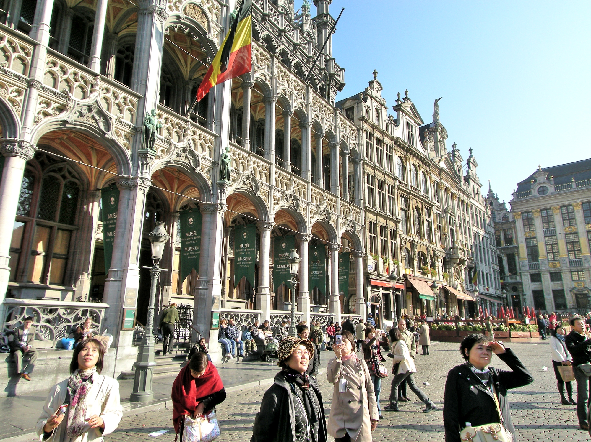 | グランプラス/フローテ・マルクト [Grand-Place/Grote Markt](14:40) 右手の建物は、ブラバン公爵の館 [La Maison des Ducs de Brabant] 。 「東」MAPLay.3U |