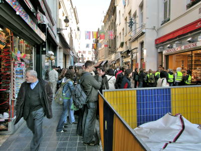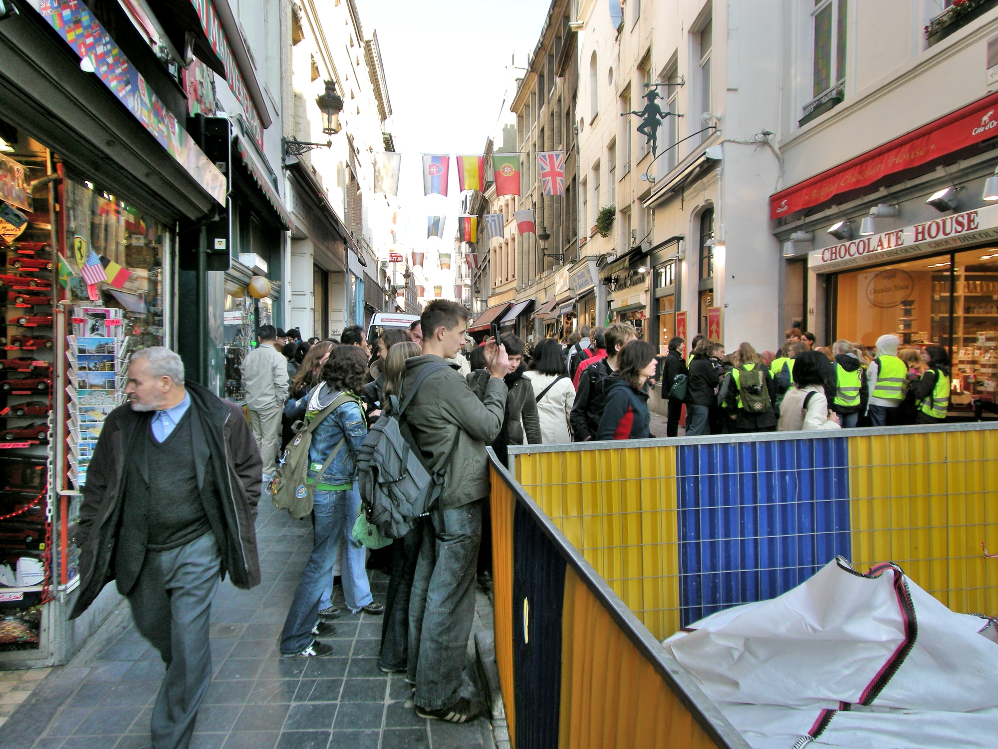| チャールズ·バルズ通り[Rue Charles Buls](14:21) グランプラスから小便小僧へ向かう途中の通り。 (チャールズ·バルズ通り → エチューヴ通り) 「南西」MAPLay.3P |