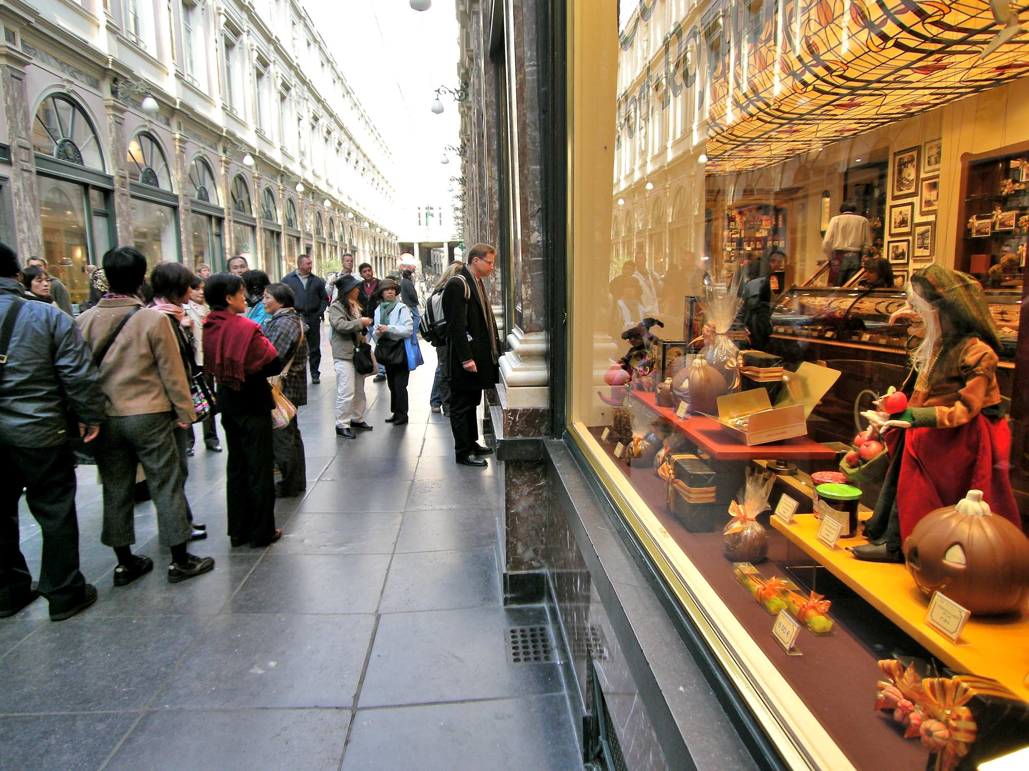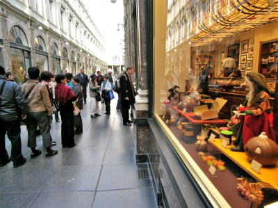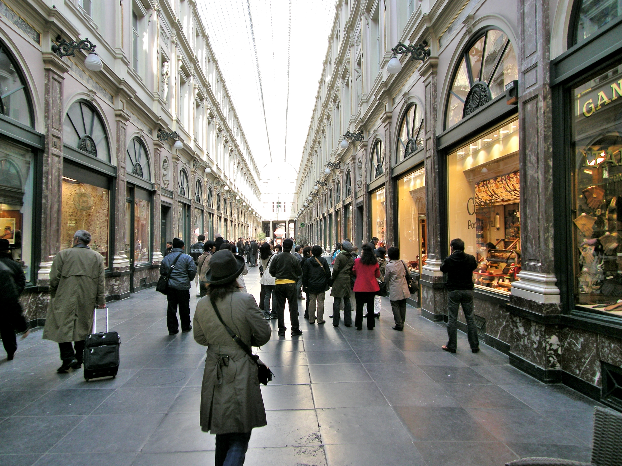 | ギャルリー・サンチュベール [Les Galeries Royales Saint-Hubert] 当時、王妃様の命により作られたヨーロッパ最古のショッピングアーケードで、1847年に完成した。 アーケードは、ガラスのドーム天井で出来ており、全長212mの内部は王のギャラリー、王妃のギャラリー、王子のギャラリーに分かれている。 ショップやカフェが立ち並び、19世紀に芸術家の溜まり場だった歴史あるカフェも残っている。 |