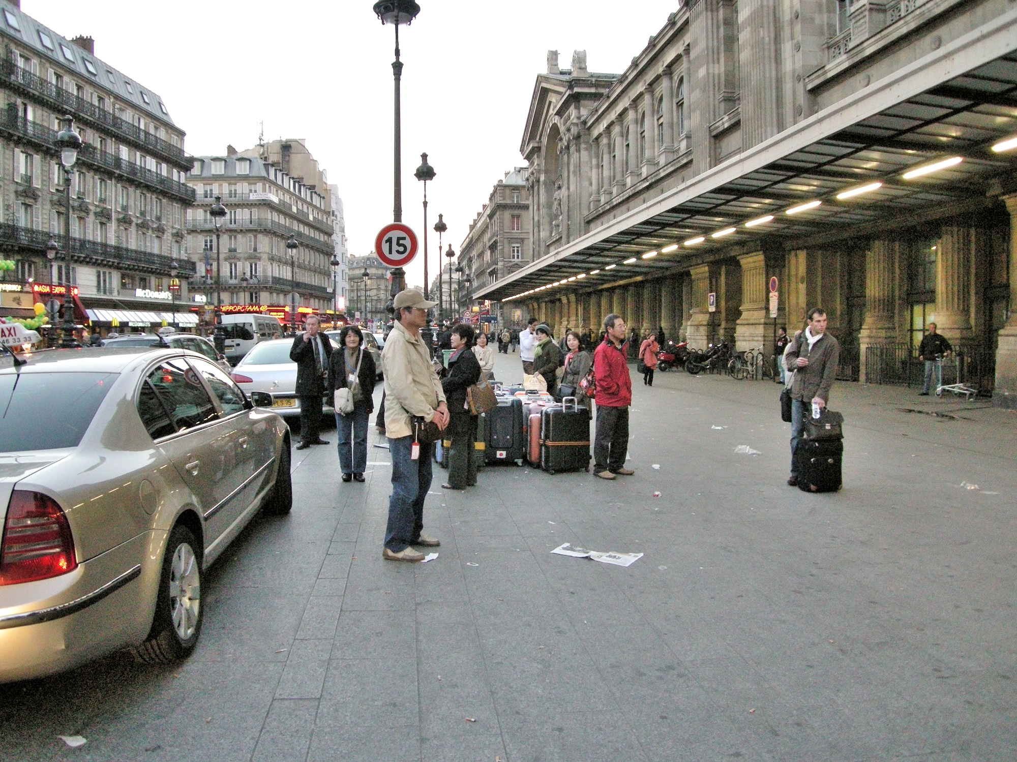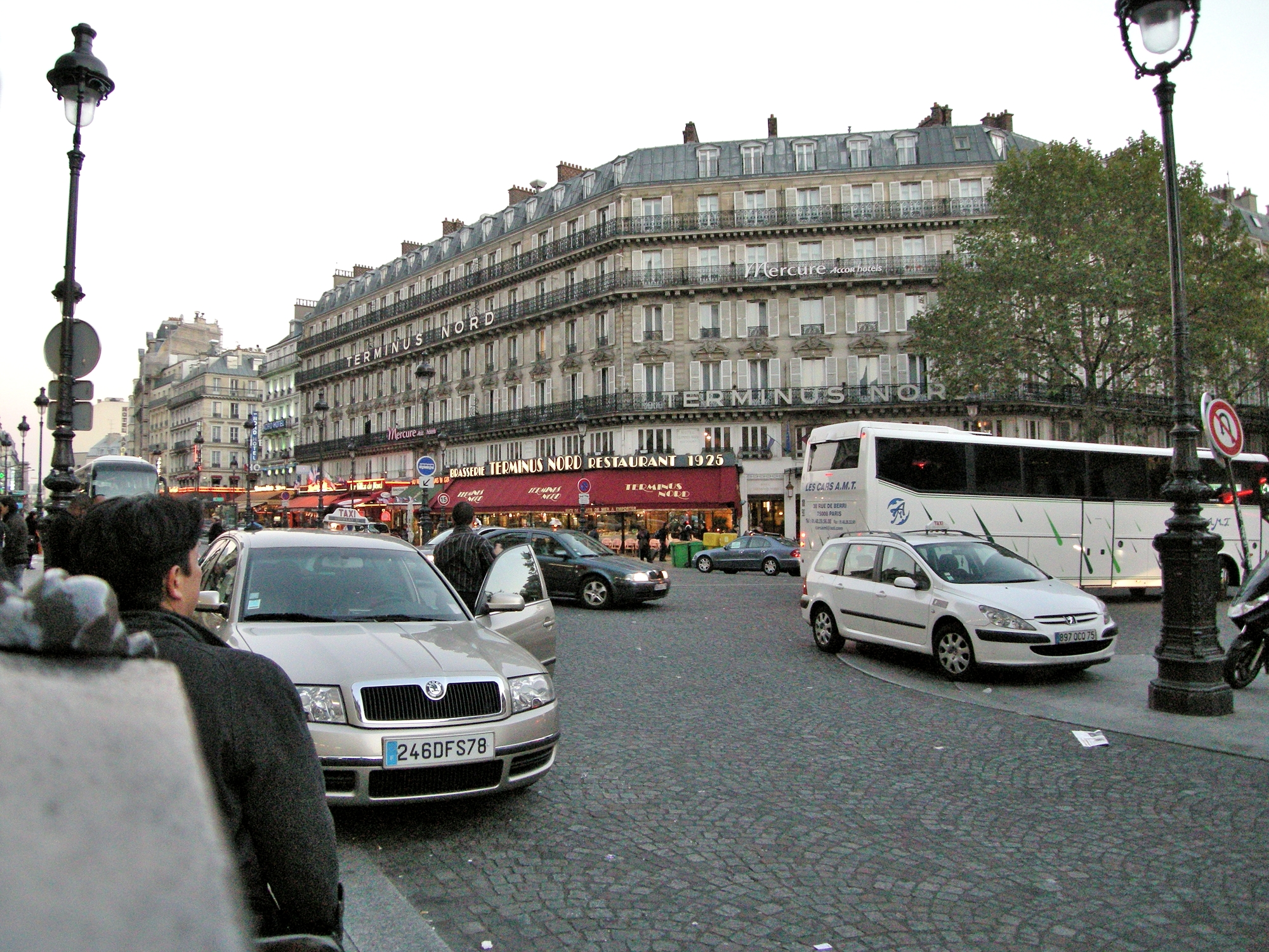 | パリ北駅 [Paris Gare du Nord] 前(18:49) ツアーバスの到着待ち。 「西北西」MAPLay.4B |
