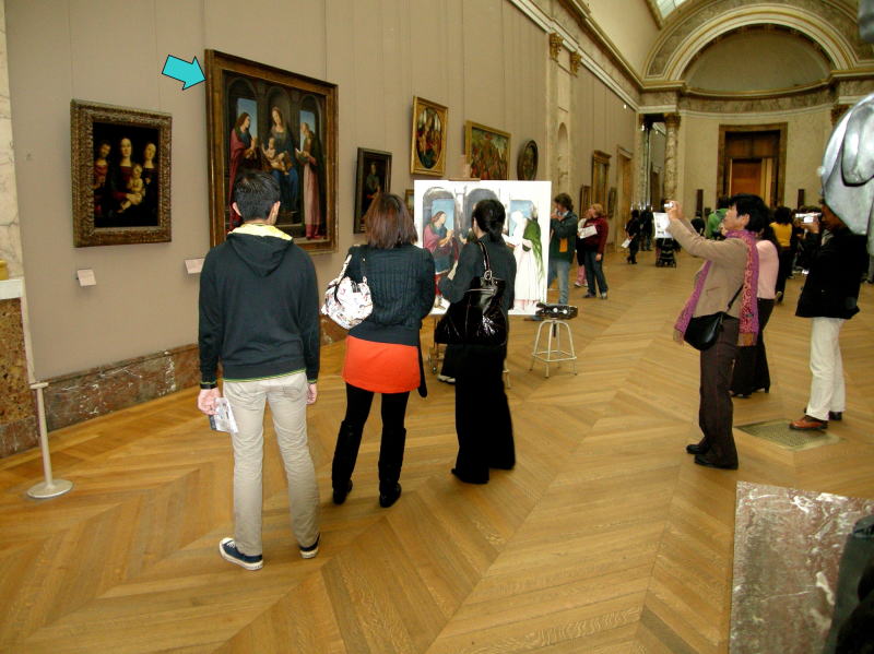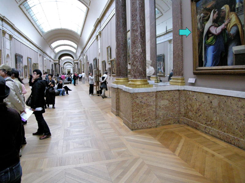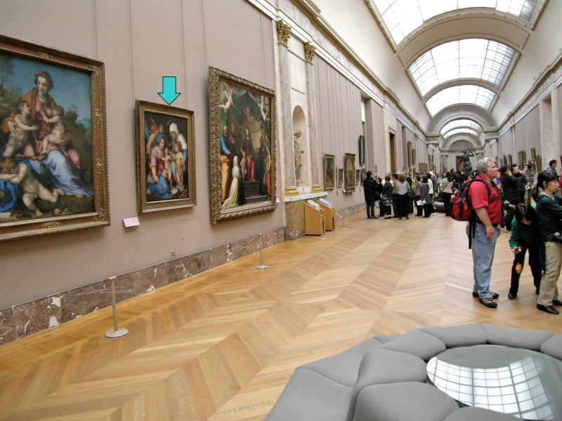 | デノン 2階サロン·カレ ルーム3 [Denon 1er étage Salon Carré Salle 3](10:09) 注:フランス語の 1er étage は日本では2階に相当する。 ヨーロッパ諸国では日本で言う1階はグラウンドやロビーなどと呼び、2階から1階、2階、3階・・・・・・・と数えて呼んでいる。 (館内見取り図) MAPLay.1G |