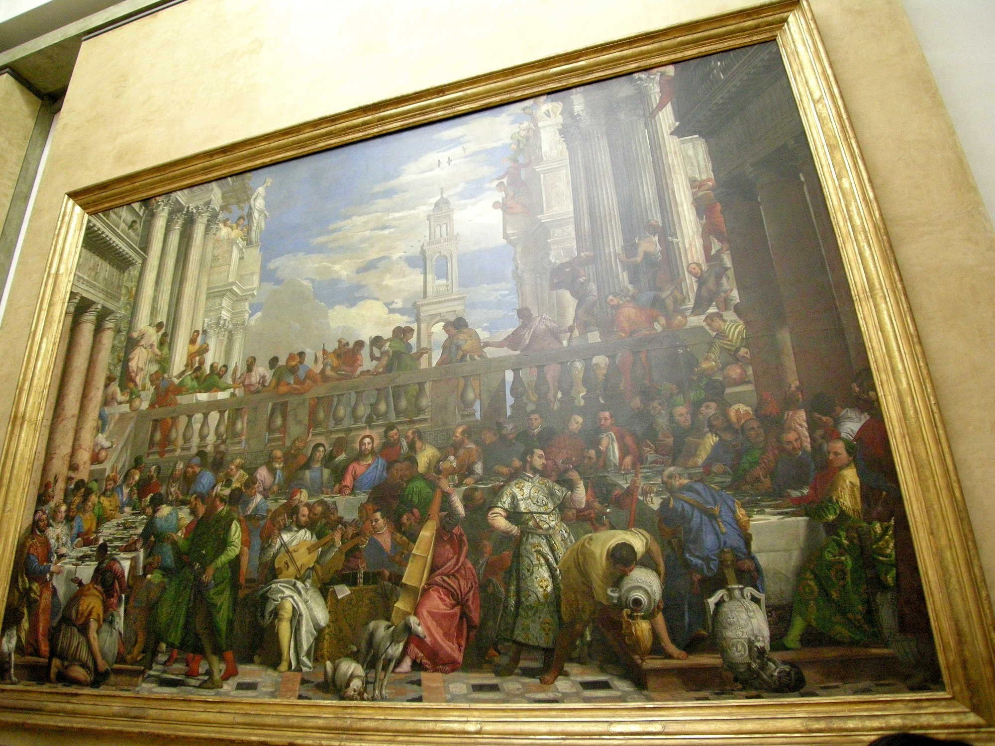 | カナの婚宴 [Les Noces de Cana](10:29) ヴェロネーゼ (本名 パオロ・カリアーリ) 作 (1562/63) 。 ヴェネツィア、サン・ジォルジォ・マッジォーレ女子修道院より1798年に入る。 (館内見取り図) MAPLay.1J |