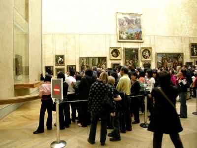 | モナ・リザ [Monna Lisa] / 別名:[伊: La Gioconda、仏: La Joconde](10:36) レオナルド・ダ・ヴィンチ作 (1503/06頃) 。 フランソワ1世のコレクション。 モデルとなった実在の女性リザ・デル・ジョコンド [伊: Lisa del Giocondo] は、イタリアのフィレンツェとトスカーナの旧家であるゲラルディーニ [Gherardini] 家の女性で、夫であるフランチェスコ・デル・ジョコンドがルネサンス盛期の画家レオナルド・ダ・ヴィンチに依頼して描かせた肖像画。 リザの名前から "モナ・リザ" [Monna Lisa] / [Mona Lisa]*と呼ばれている。 (館内見取り図) * イタリア語の [ma donna] は「私の貴婦人」を意味し、短縮形で [mona] と綴られる。 しかし、現代イタリア語では [madonna] の短縮形は [monna] となることが多い。 MAPLay.1J |