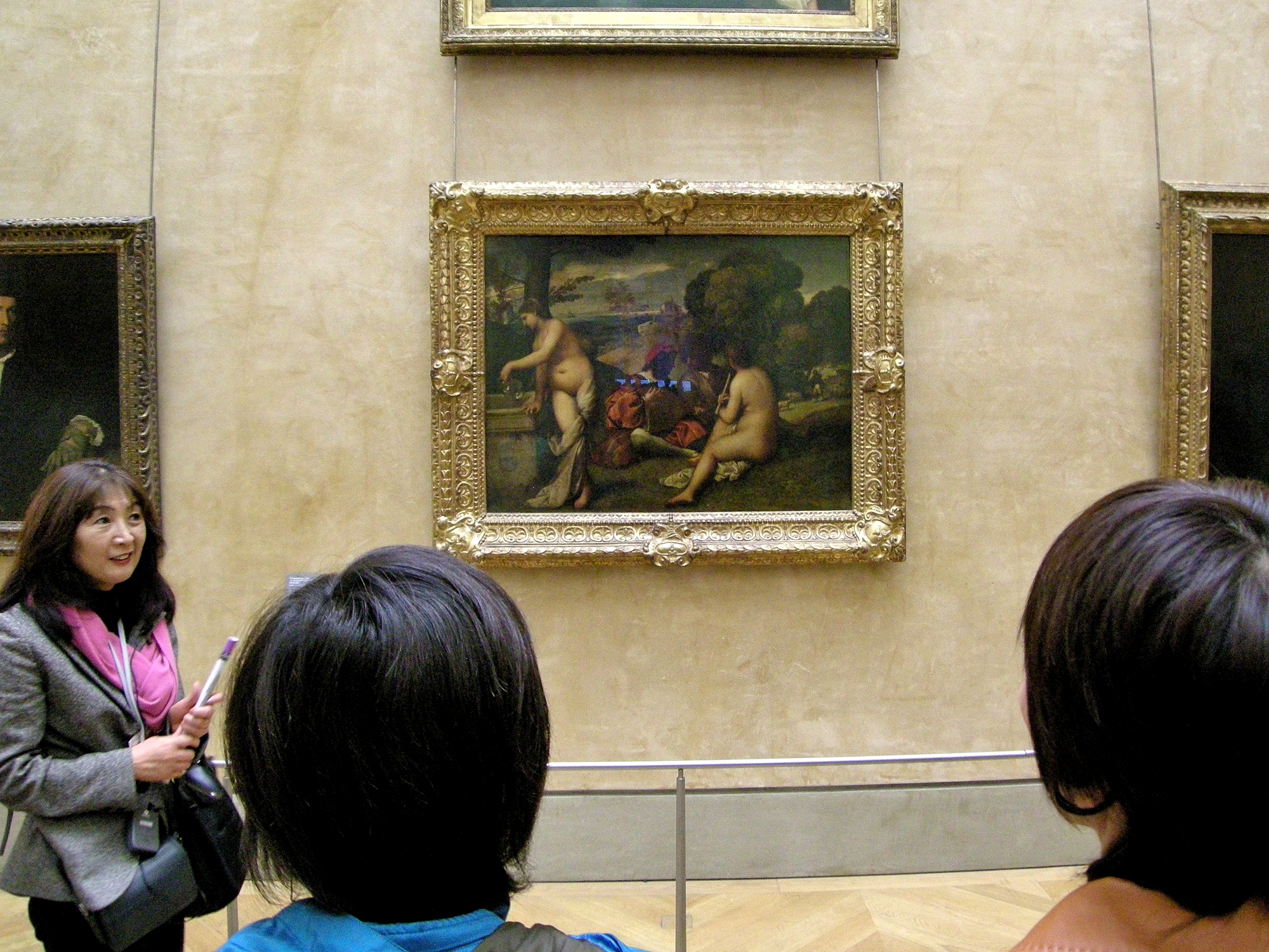 | 田園の合奏 [Le Concert champêtre](10:42) ティツィアーノ・ヴェチェリオ作 (1510/11頃) 。 ルイ14世のコレクション。 1671年に取得。 (館内見取り図) MAPLay.1J |