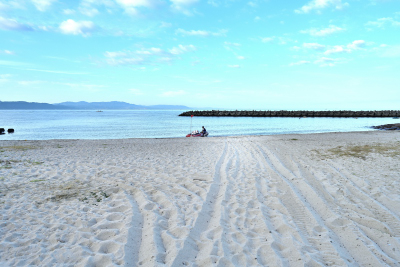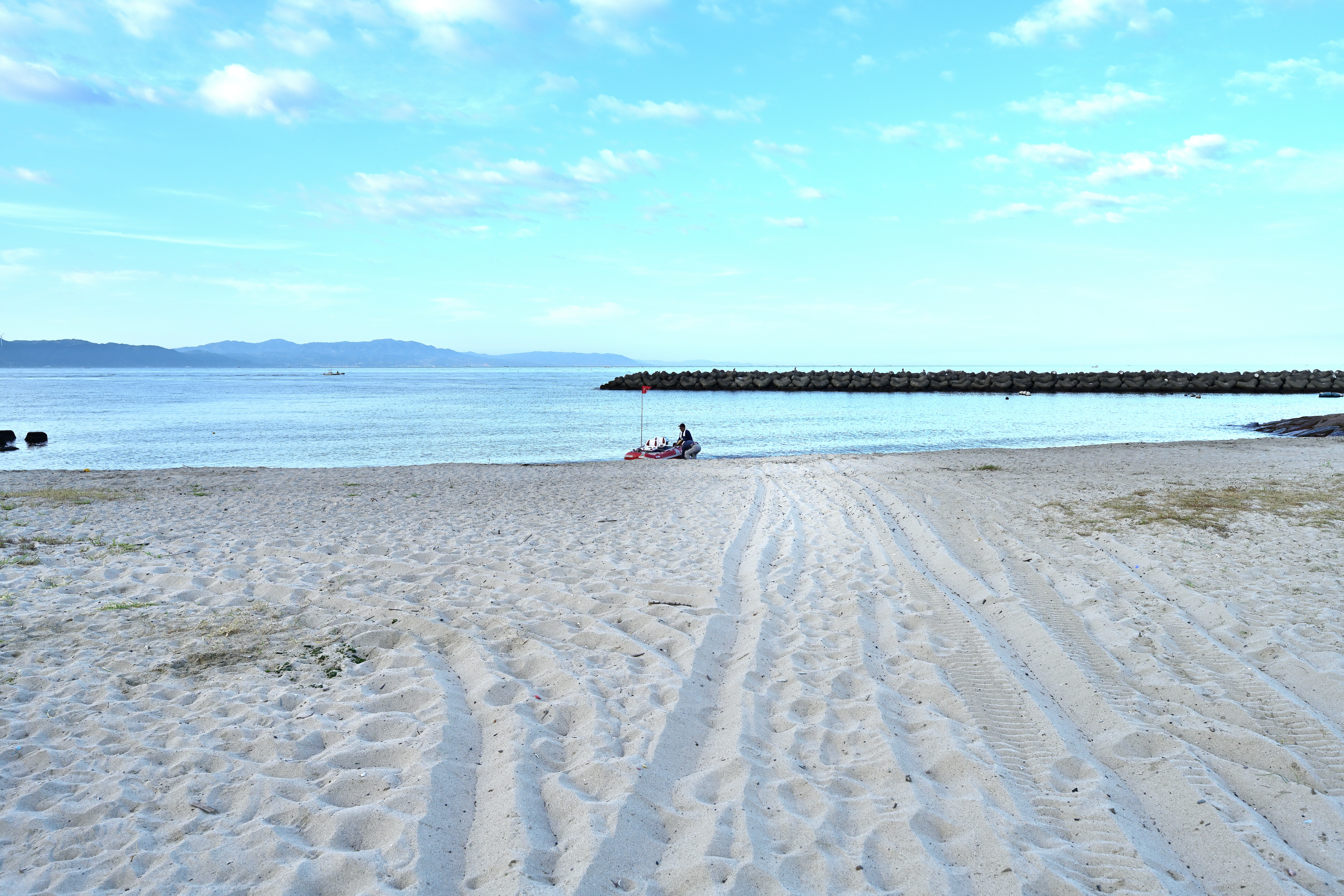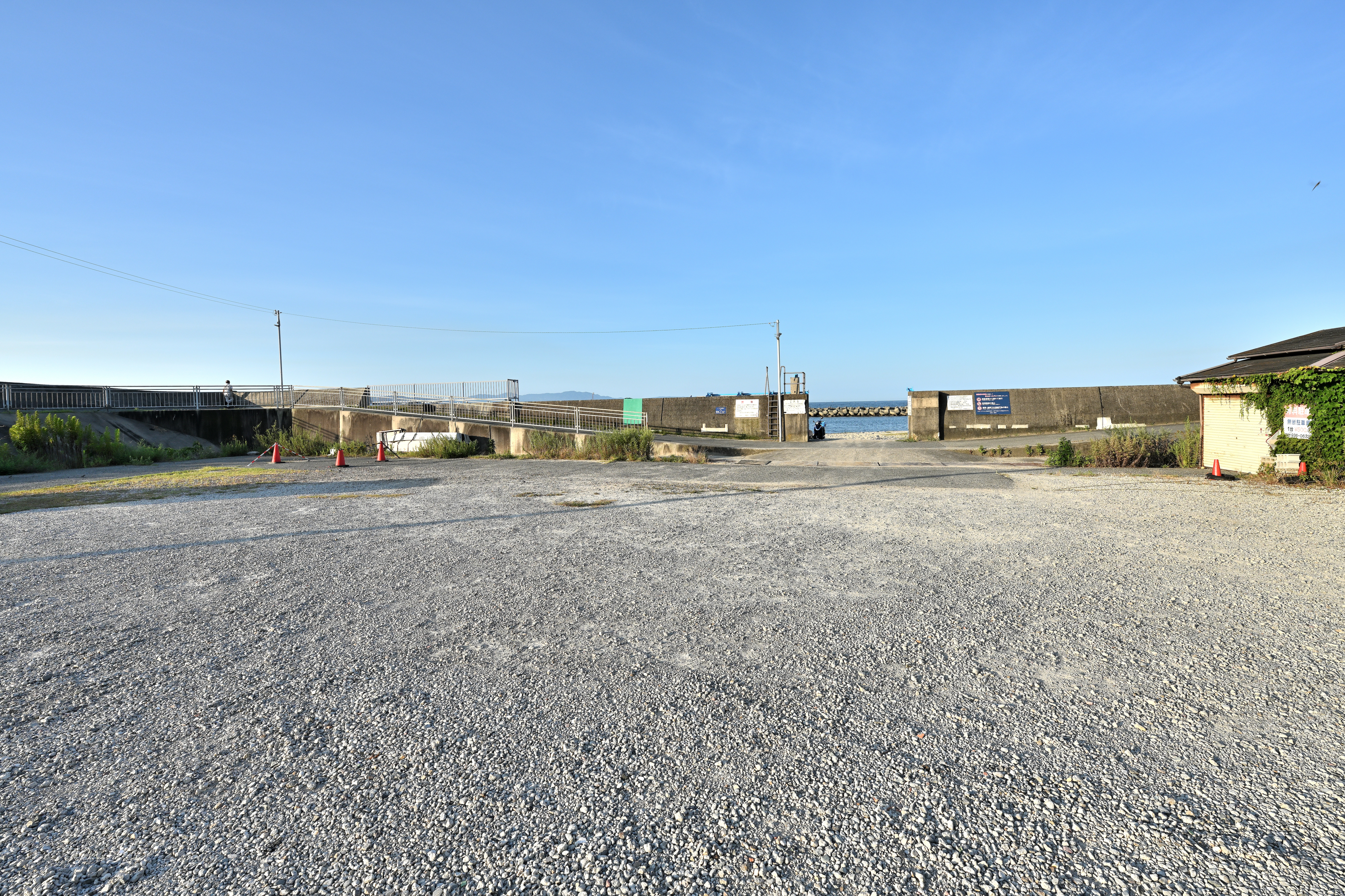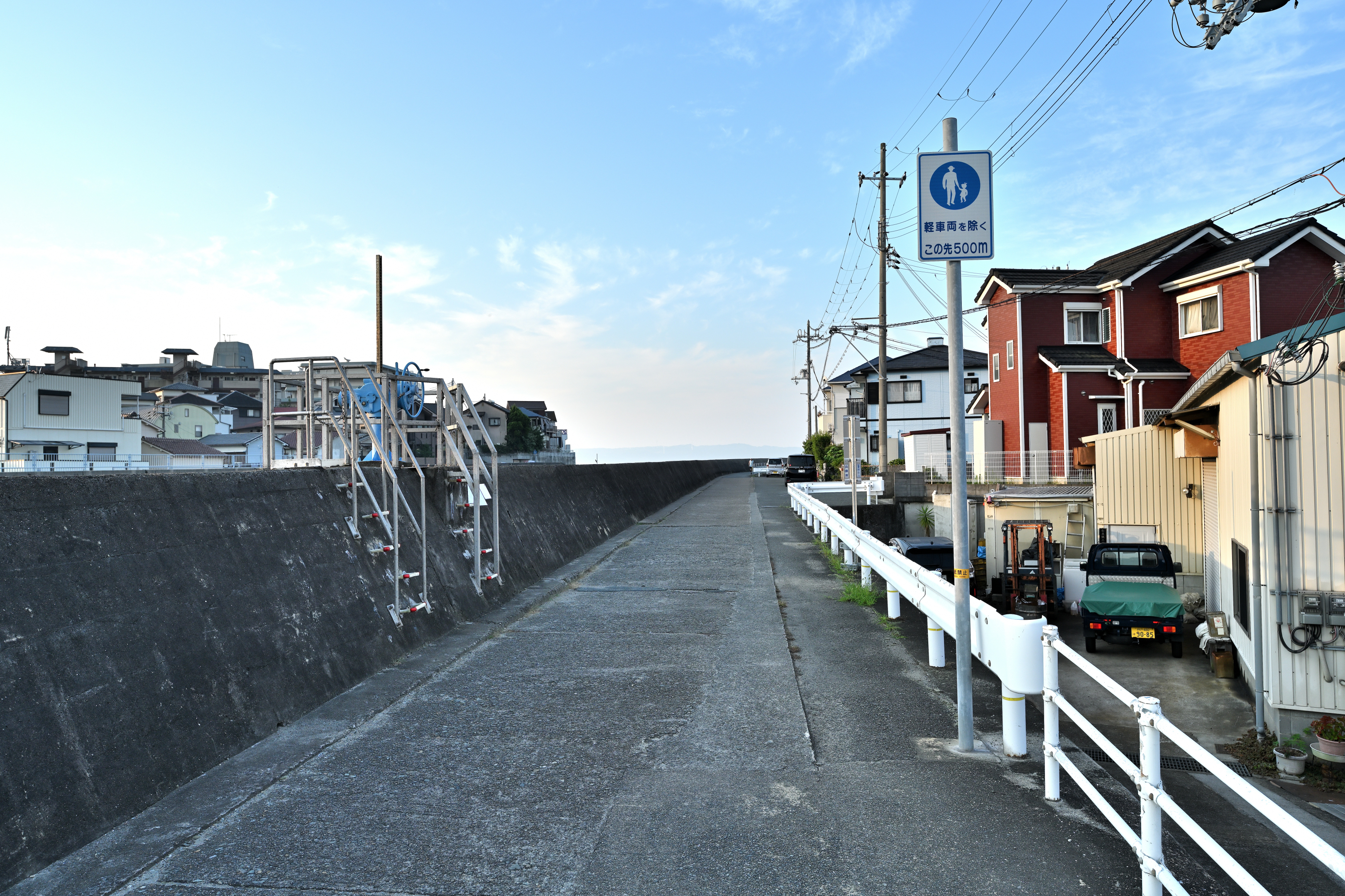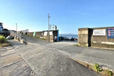 | 撮影地点 MAP "浜の散歩道"に沿って設けられた防波堤の一部は、駐車場から海へのアクセスを容易にするため開かれた状態になっている。 例えば、車で運んできた、レジャーボートや釣りボート等、海への運搬が容易に行える。 |