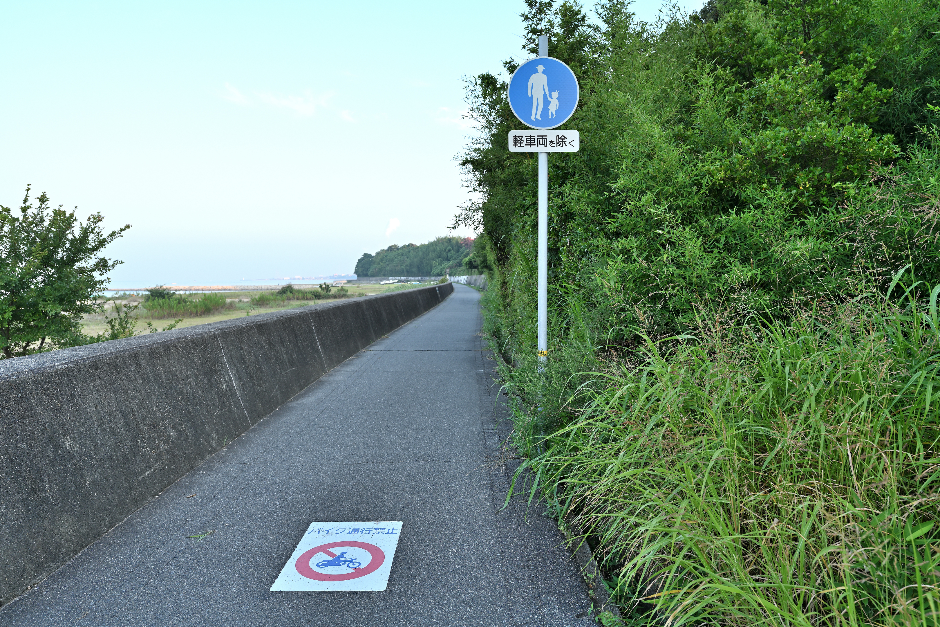 撮影地点 MAP 500m地点にある通行規制標識、ここから先が、 歩行者専用道(軽車両を除く)になっている。 |