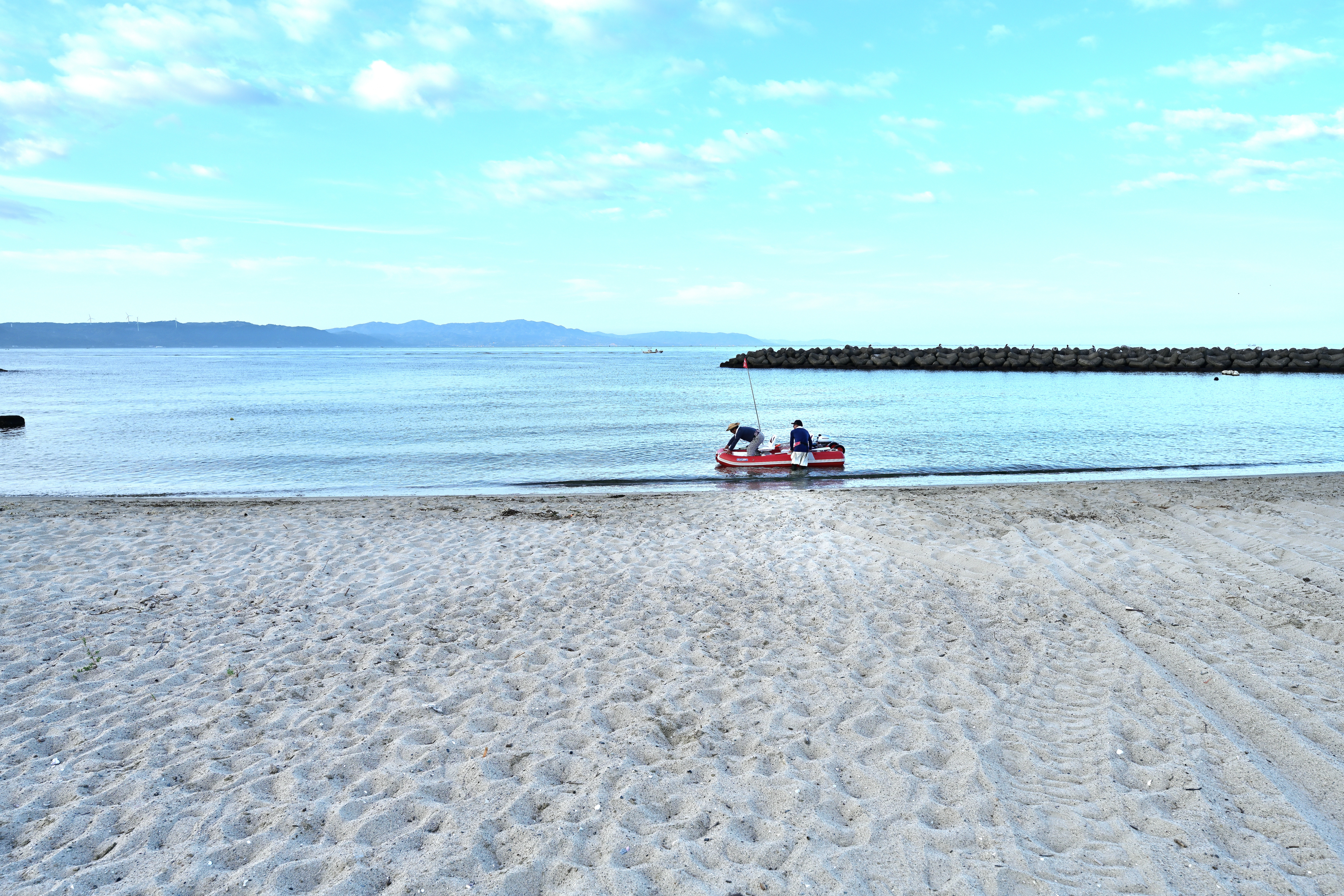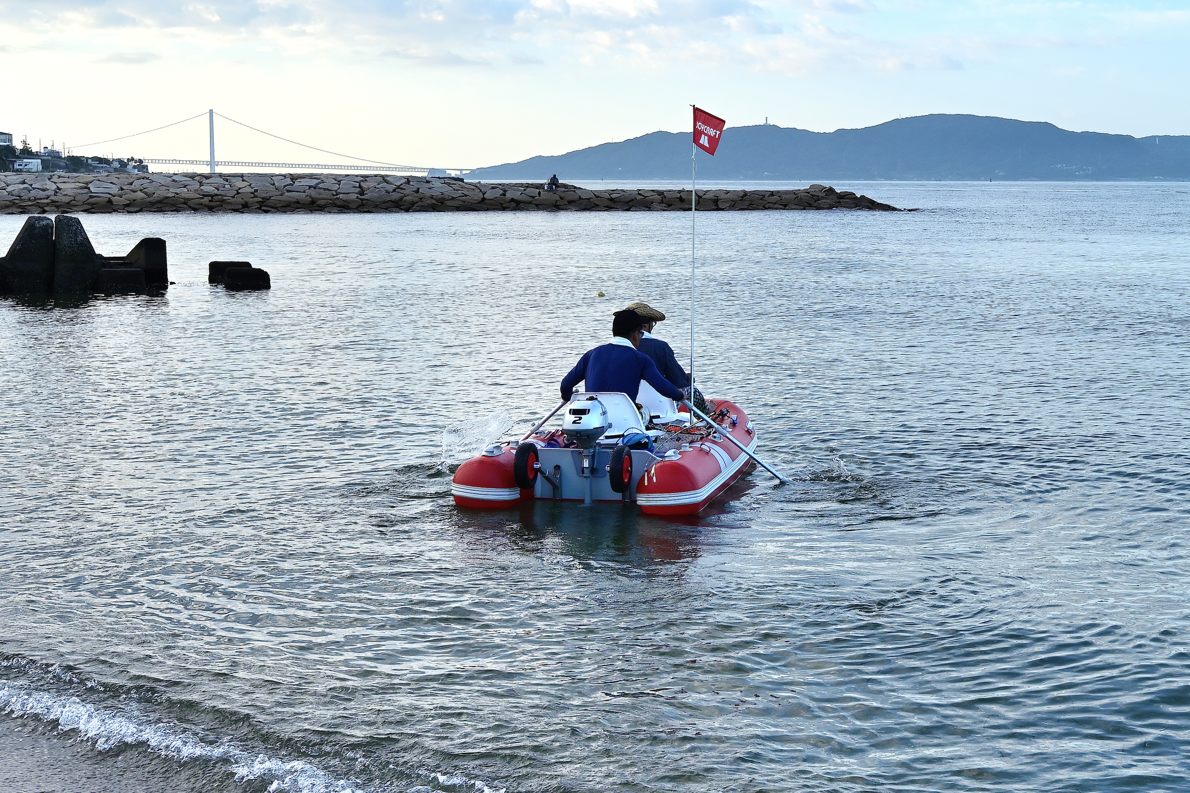 撮影地点 MAP エンジンの後部に"2"と記されているのは、 2馬力未満のエンジンである事を示している。 因みに、前方に見える島は、淡路島。 |