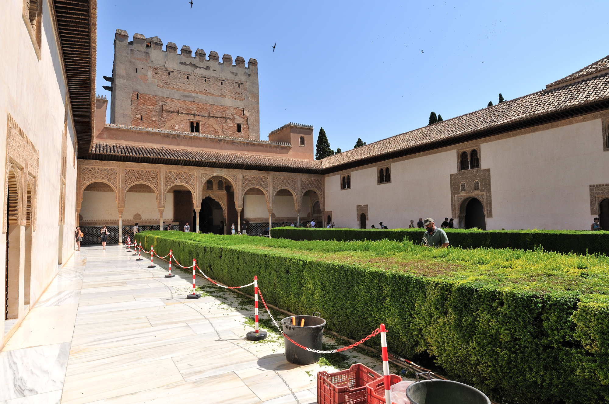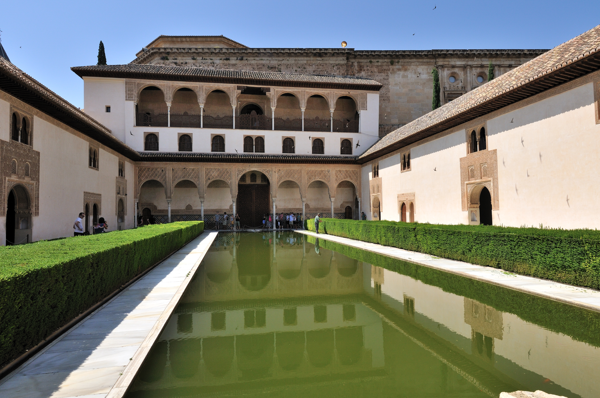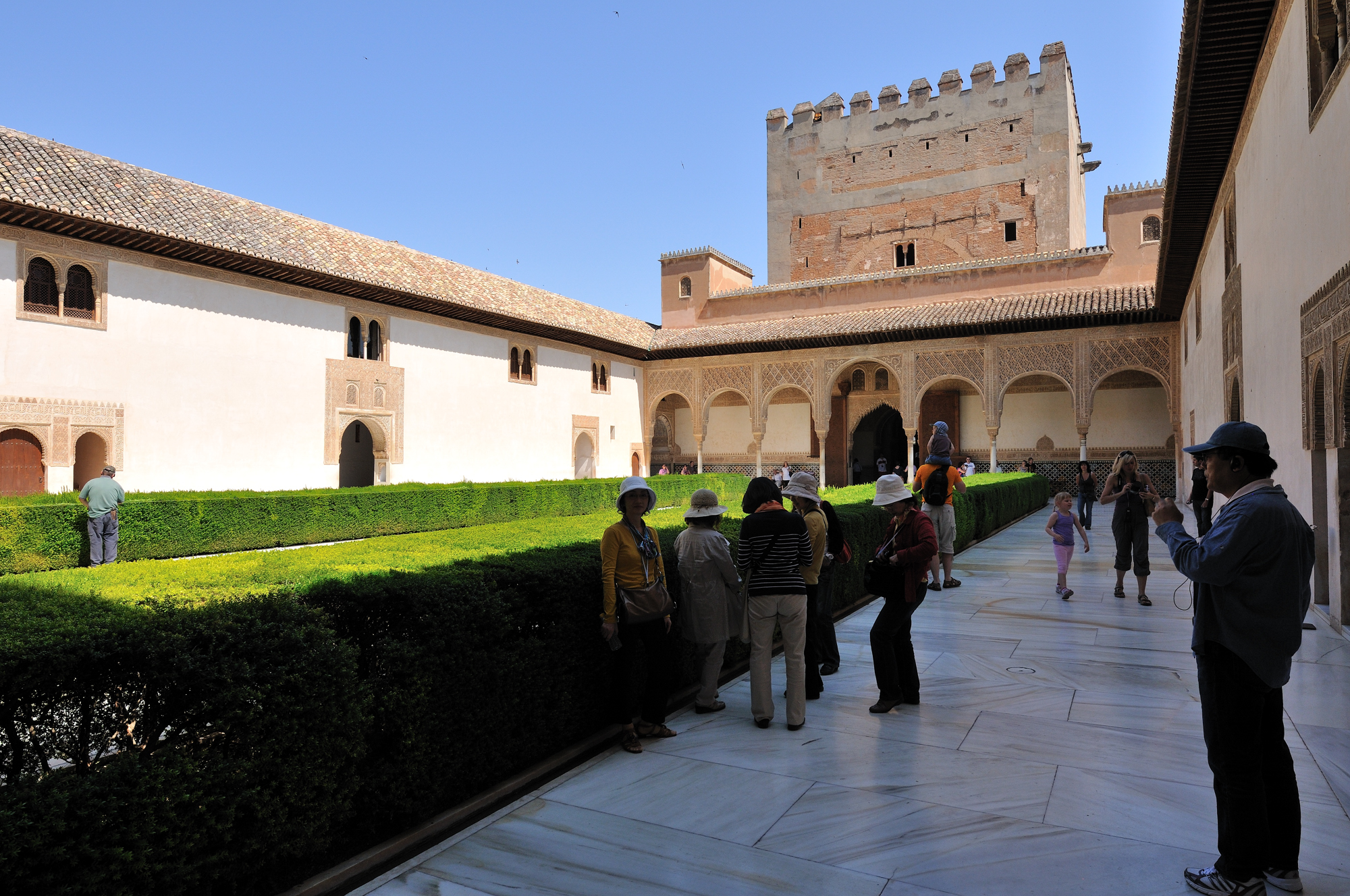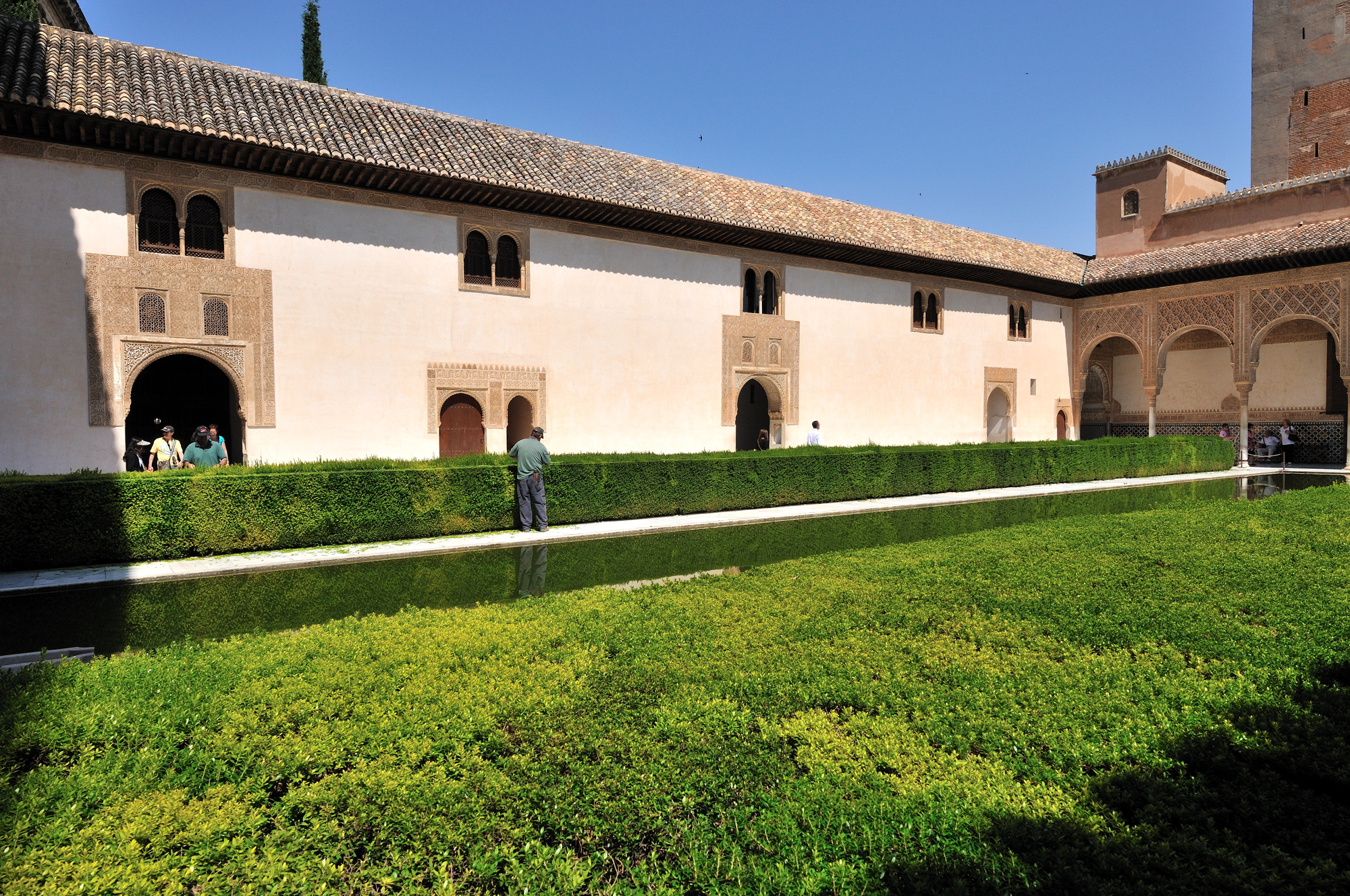 | アラヤネスの中庭 [Patio de los Arrayanes] <Planⓘ> (11:55) 左壁面に見える通行門は、コマレス宮のファサードから通じる門。 MAPLay. 1 h |