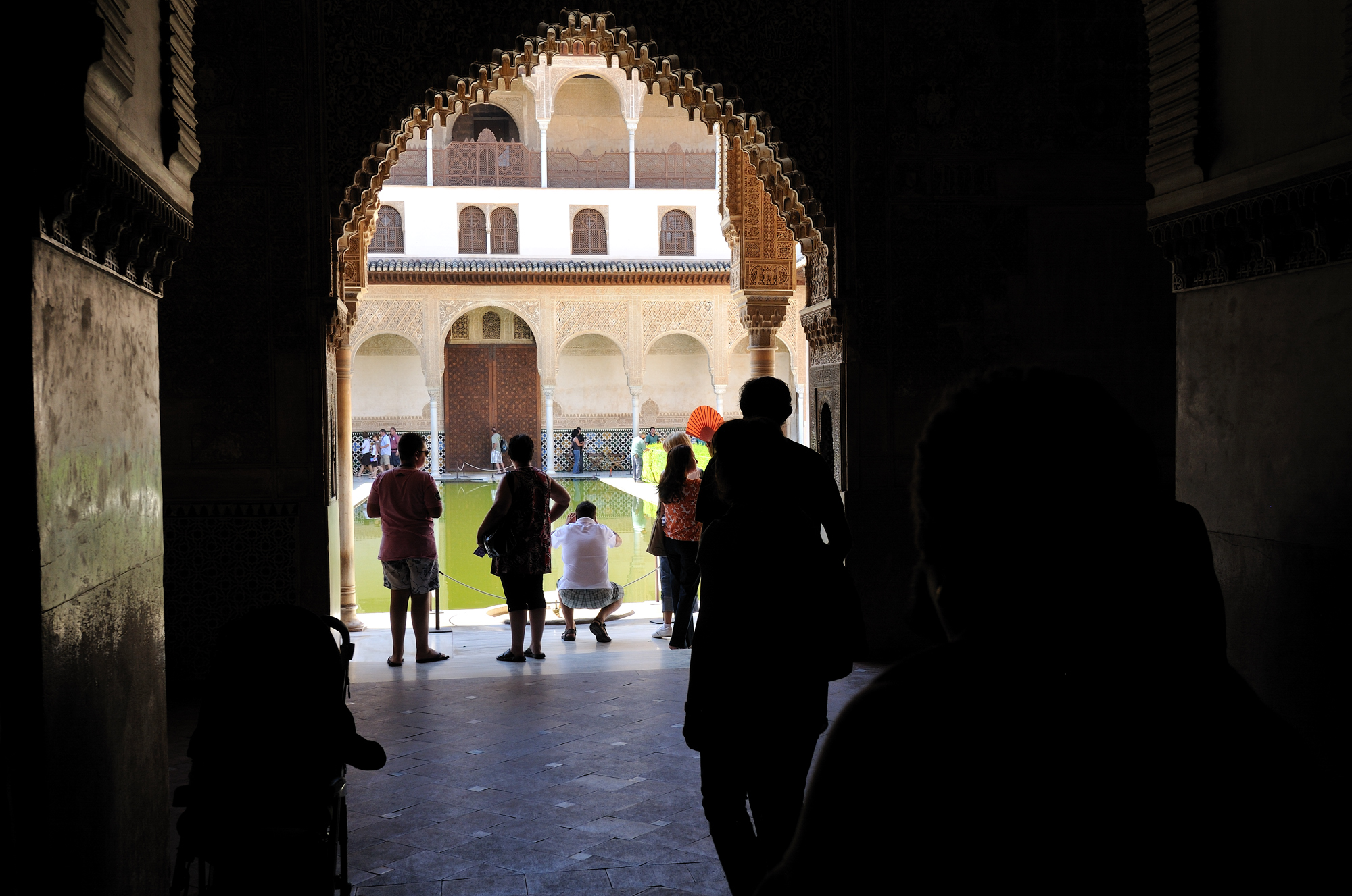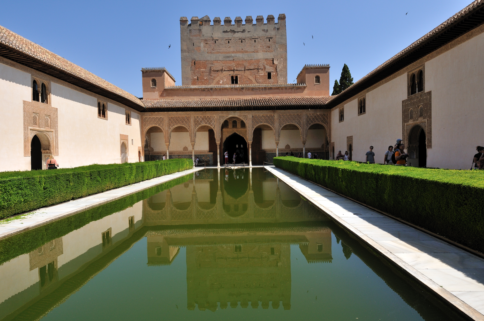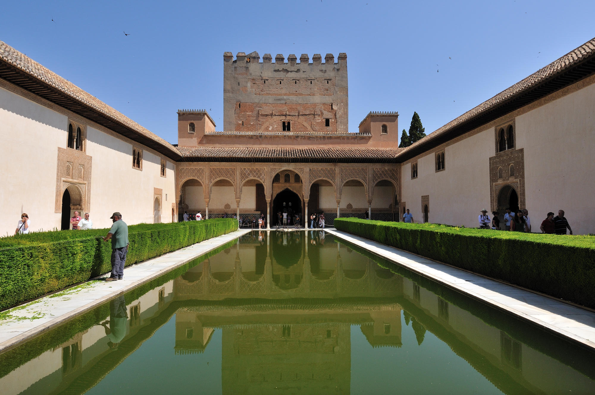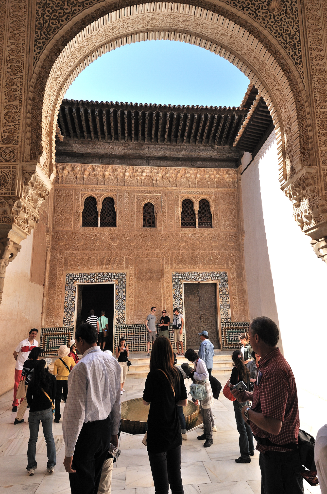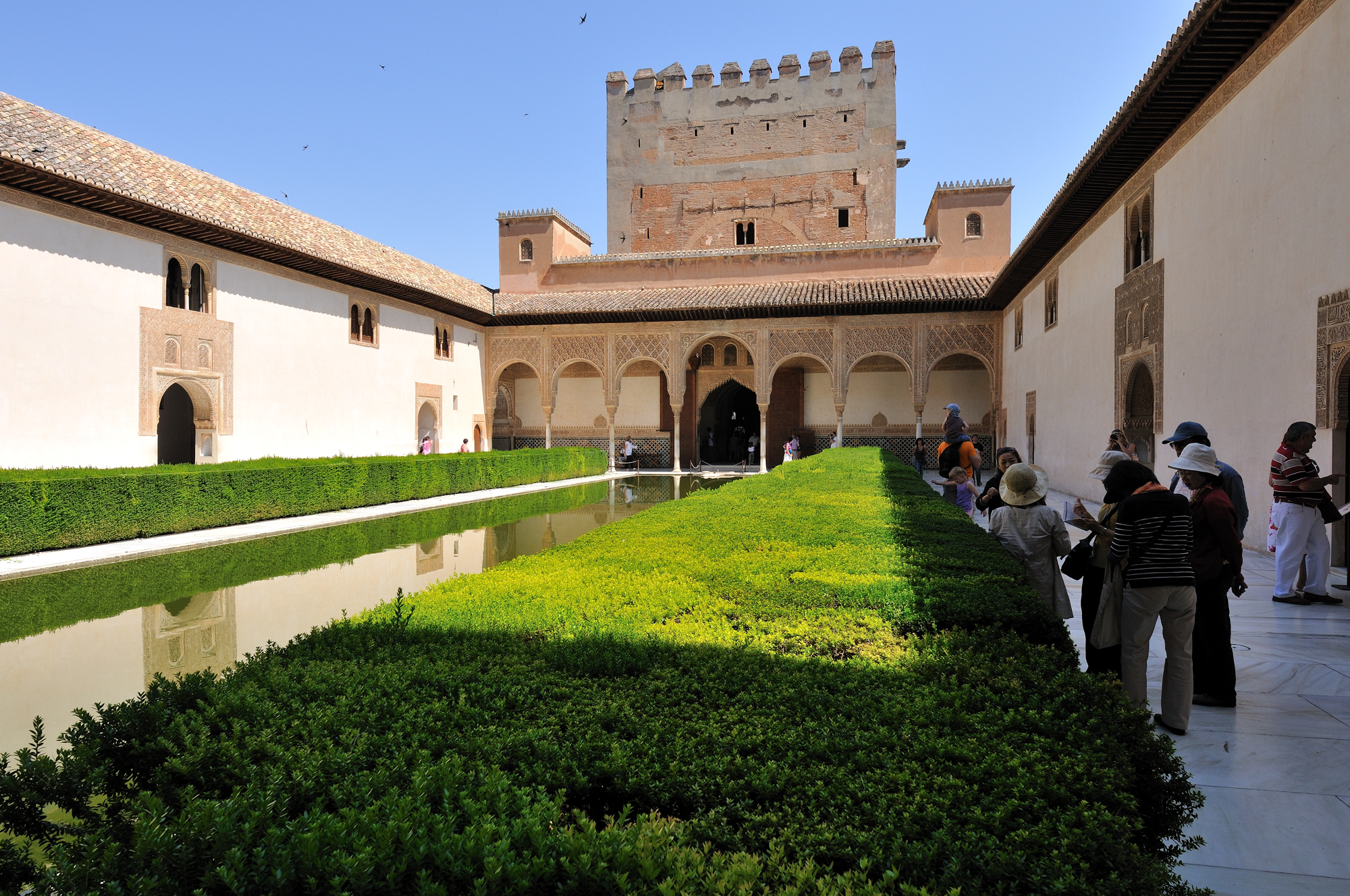 | アラヤネスの中庭 [Patio de los Arrayanes] <Planⓘ> (11:55) 左壁面に見える通行門は、コマレス宮のファサードから通じる門。 MAPLay. 1 h |