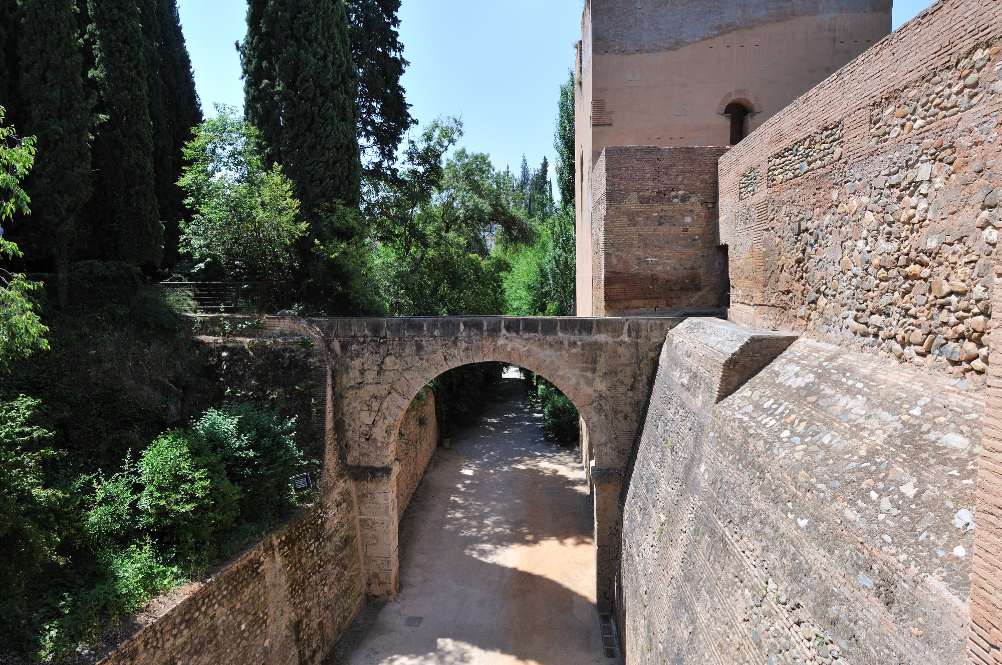 | かつて、アルハンブラ宮殿へ水を引き込むために造られた水路橋 (12:43) 水路橋の下の通りは、チノス坂 [Cuesta de los Chinos] 。 「南方向」MAPLay. 2 O |