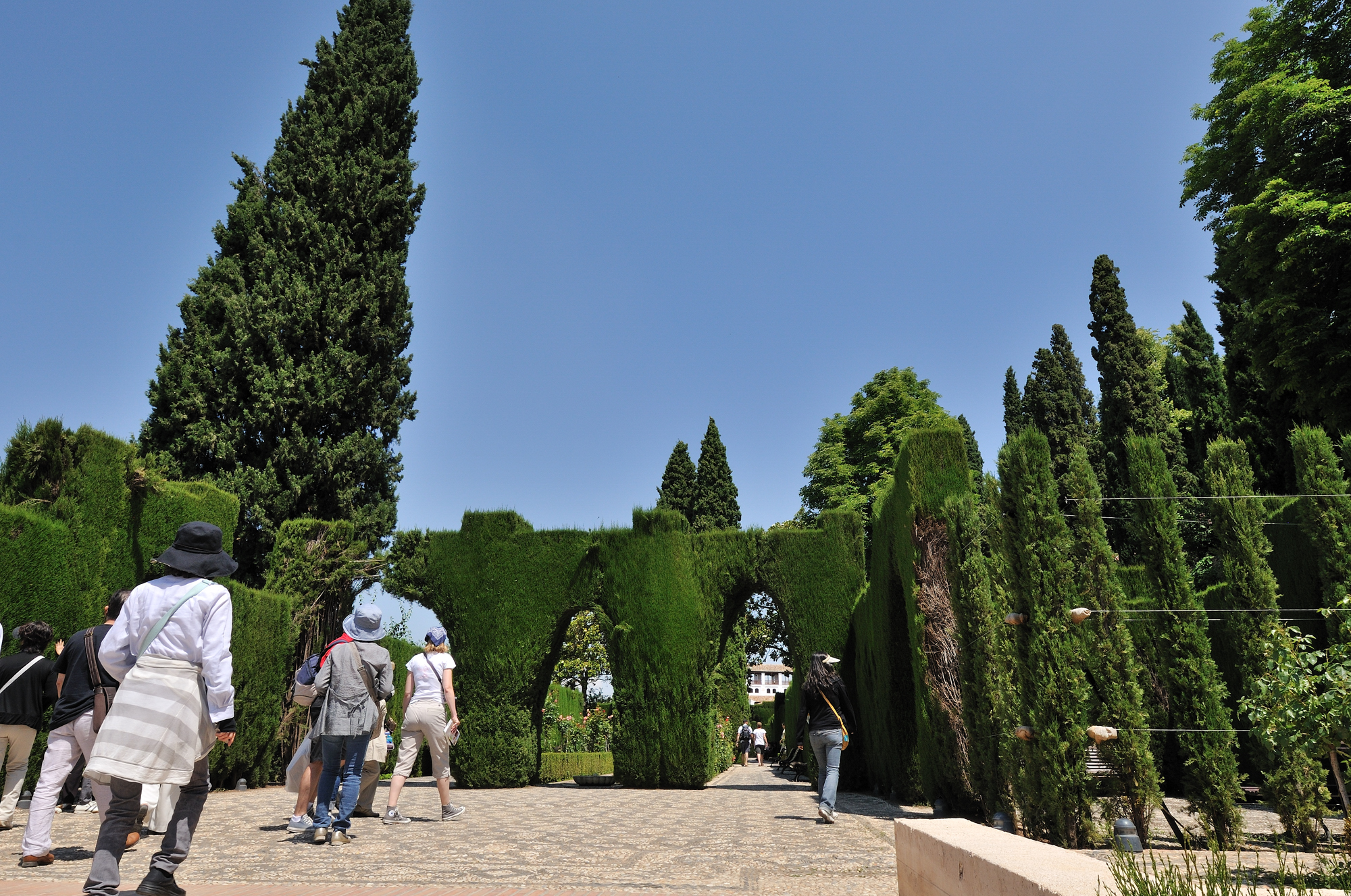| ヘネラリフェ離宮への庭園遊歩道 (12:49) 刈り込まれた、糸杉で出来たゲート。 「北西方向」MAP Lay. 2 R |
