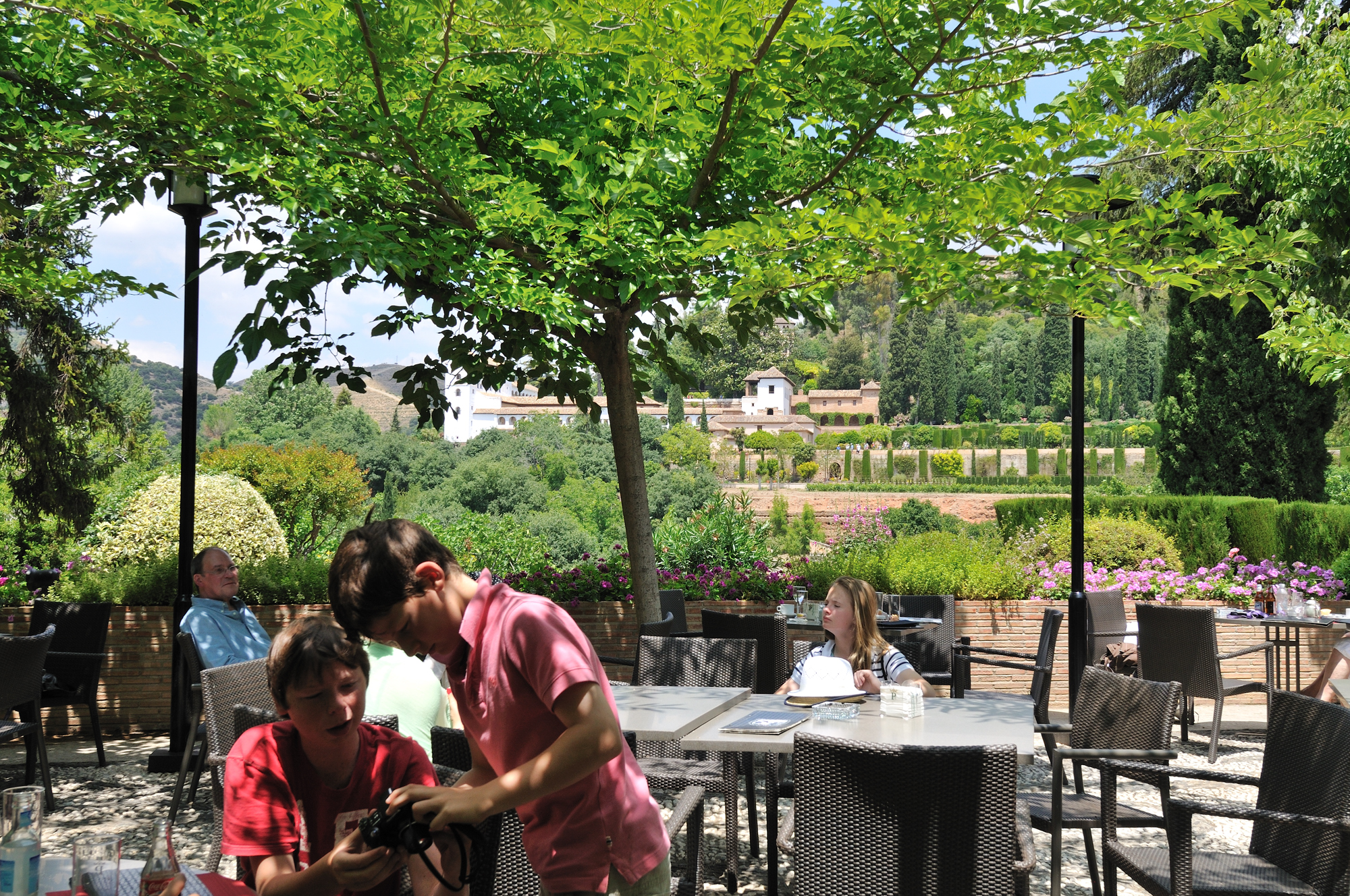 | パラドール・デ・グラナダのレストラン・テラス [RestauranteTerraza] (15:05) レストランのテラス席から、ヘネラリフェ離宮 [Palacio del Generalife] がよく望める。 「北東方向」MAPLay. 2 i |