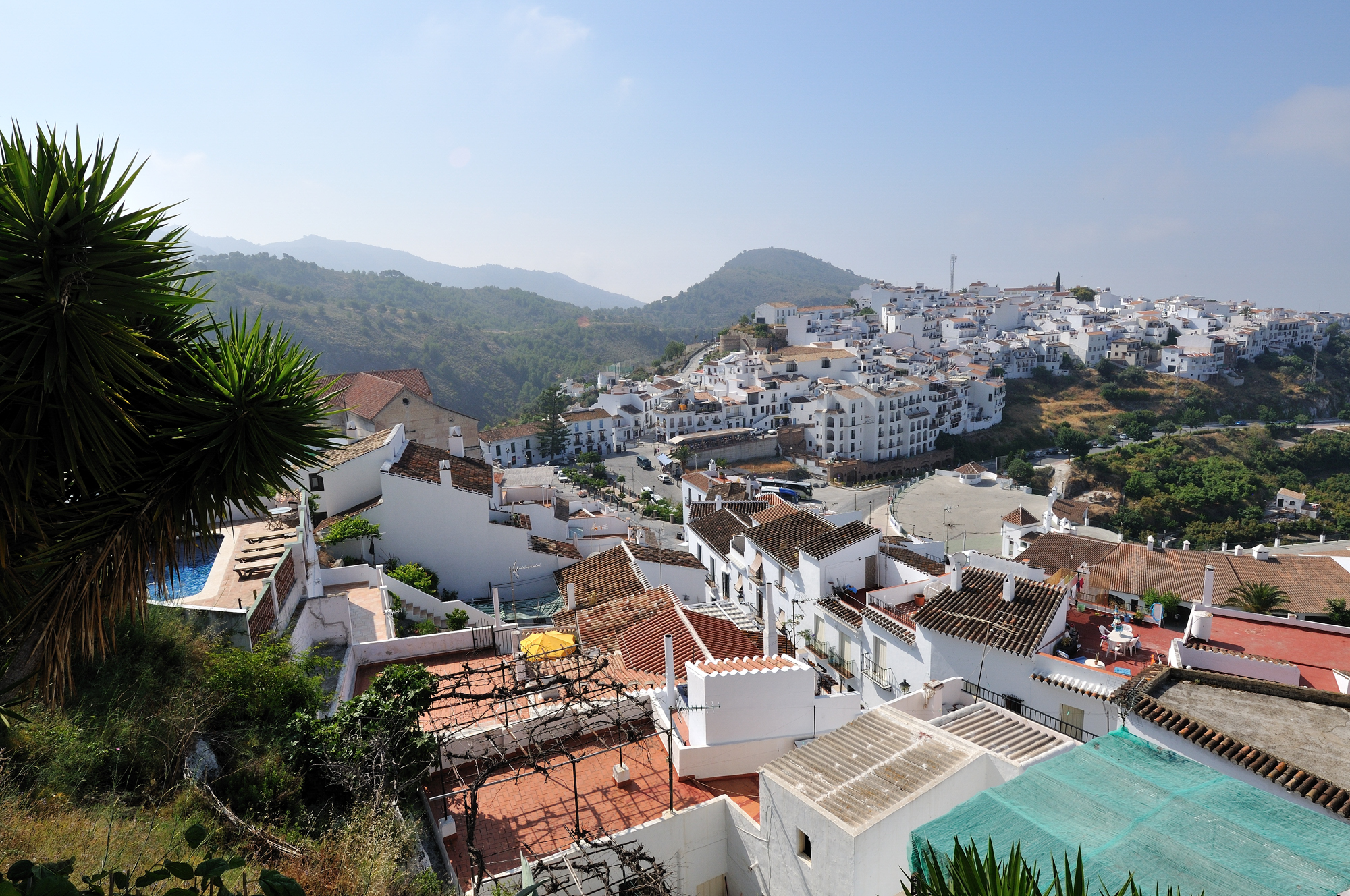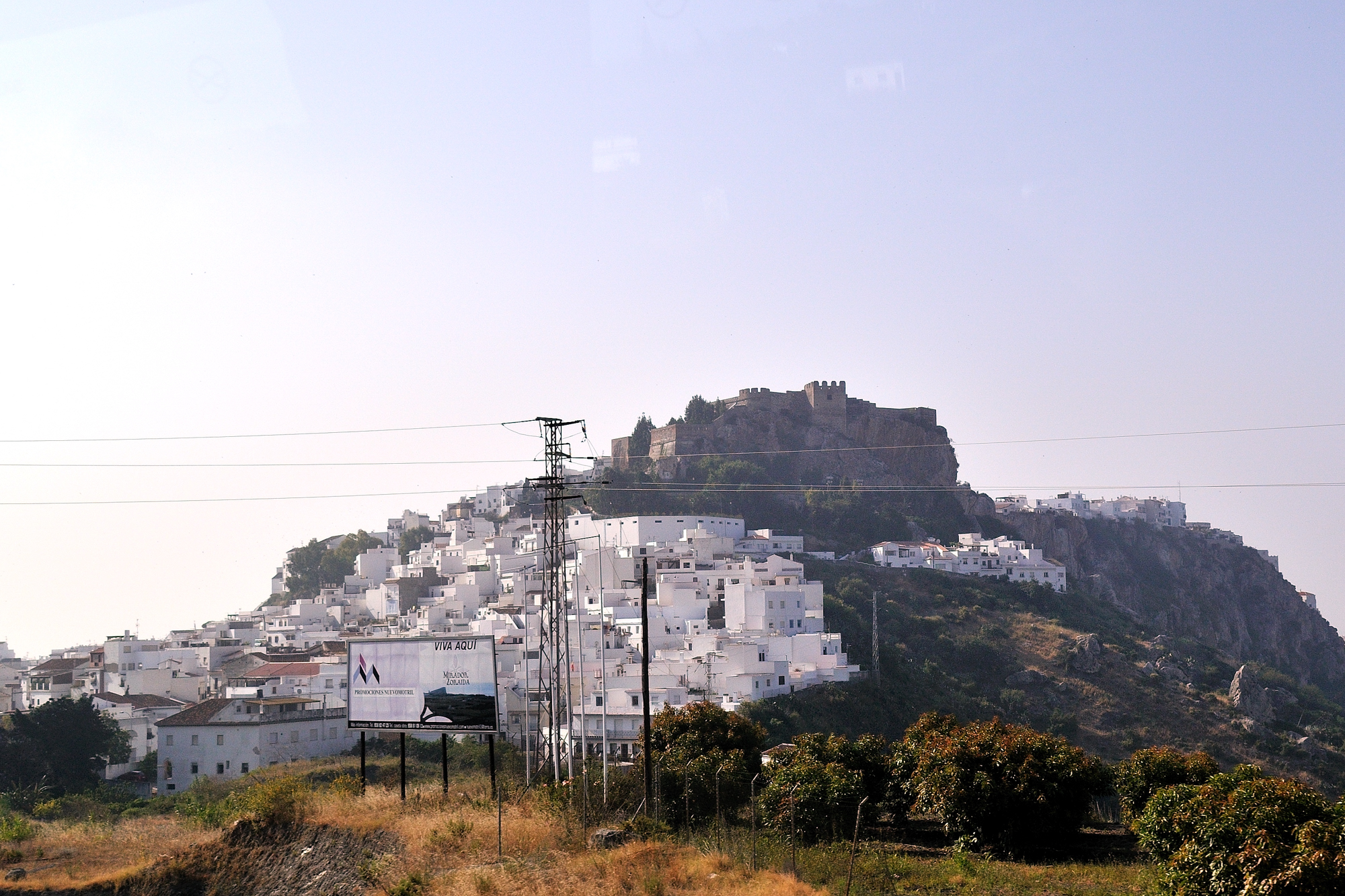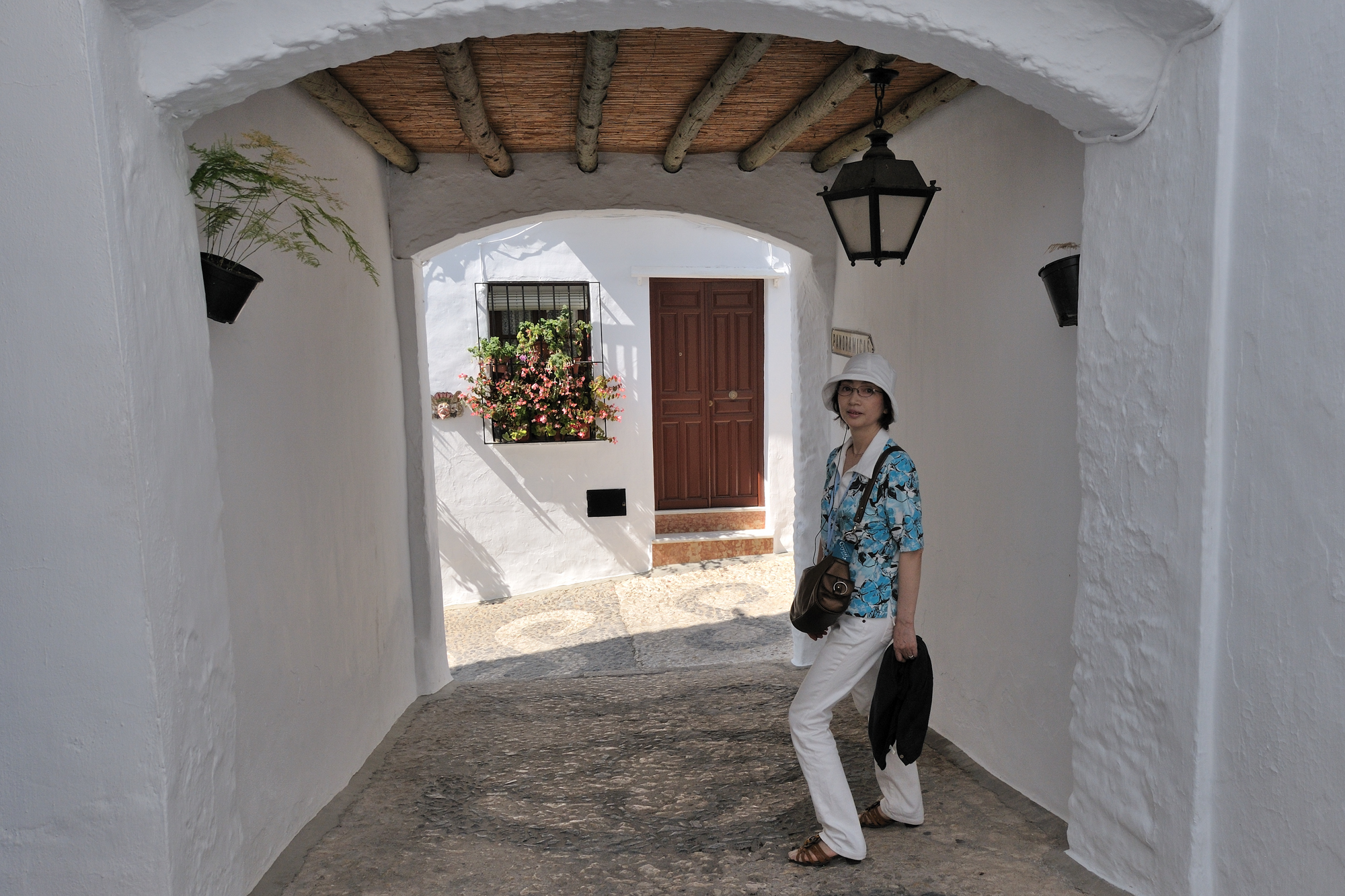 | 前方の丘の上には、アラブの城跡が見える (11:00) 16世紀半ば、グラナダを追われ、キリスト教に改宗を余儀なくされたムーア人たちは、この地で反乱を起こしたが、戦いに敗れ追放された。 アンダルシア地方では、険しい山間に白い家が密集する村を多く見かけるが、これらは表向きキリスト教徒に改宗したイスラム教徒*たちが隠れ住んでいた村である。 白壁は、気温が高く日射しの強いこの地方では、太陽光を反射して暑さを遮る効果があると言われている。 「北東方向」MAPLay. 1 U * モリスコ [Morisco] と呼ばれていた |