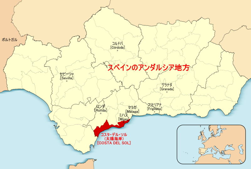 | 赤色で塗りつぶした地域が、コスタ・デル・ソル [Costa del Sol] (太陽海岸) と呼ばれている。 | |