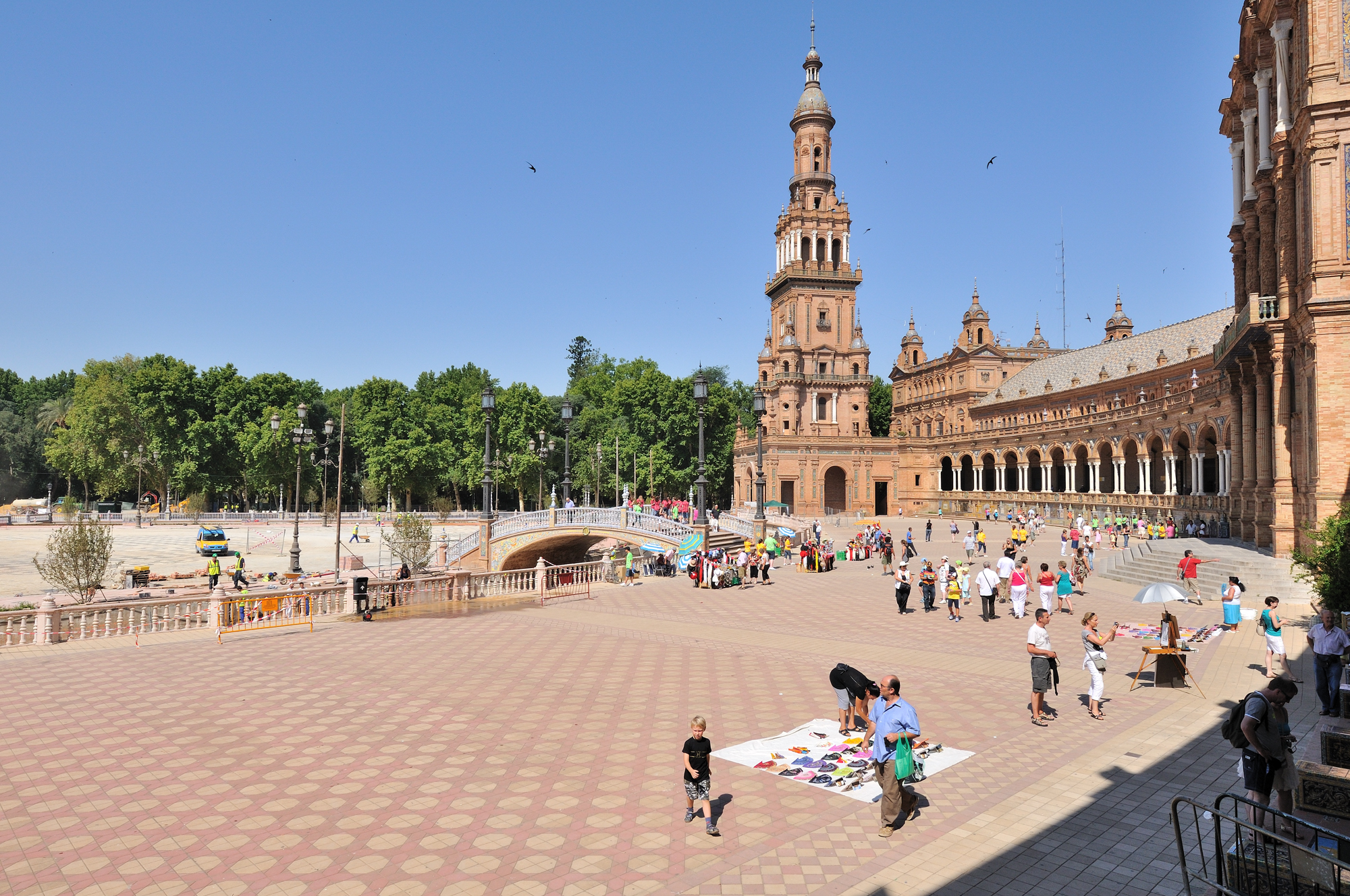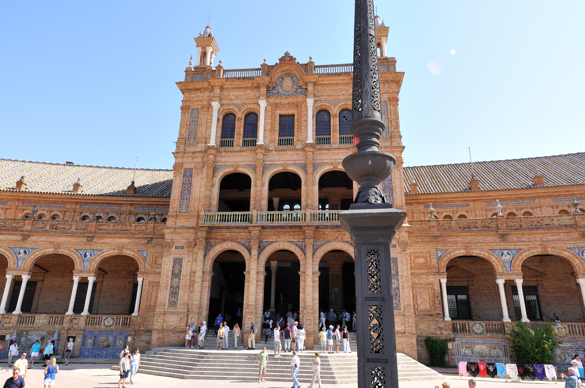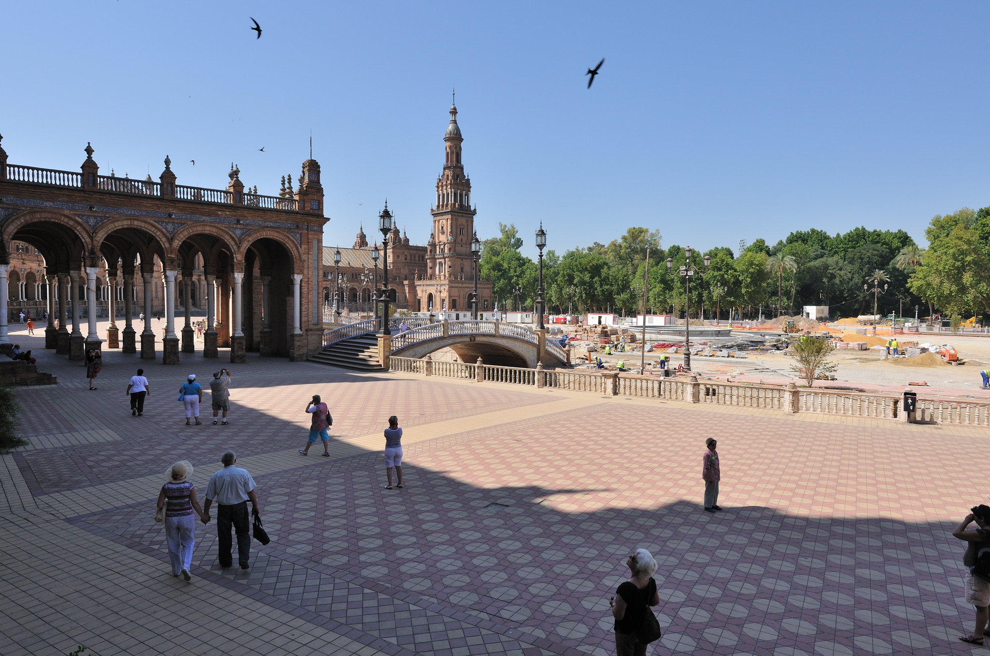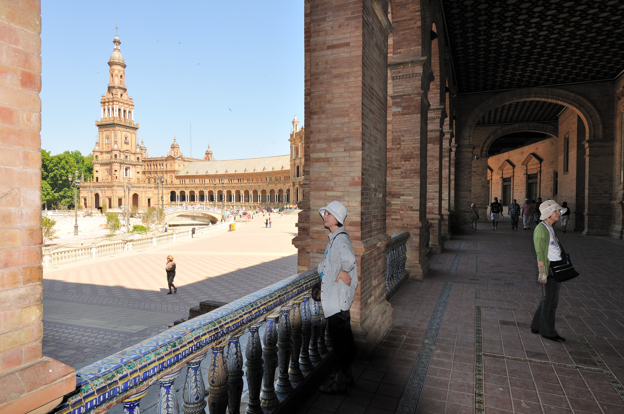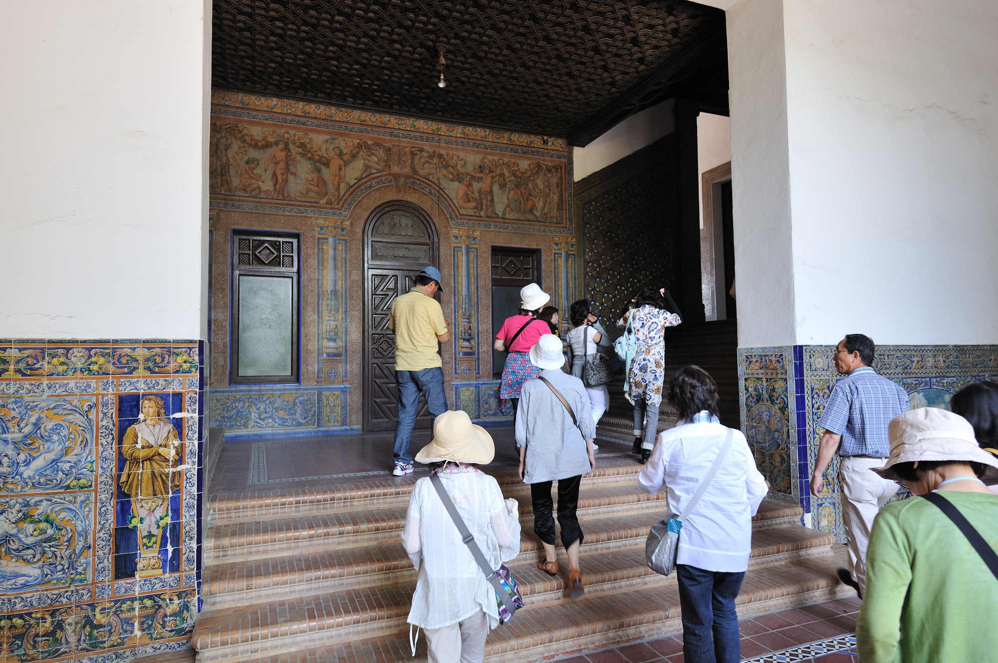 スペイン広場 [Plaza de Espana] (11:13) タイルでできたベンチ。 「西南西」MAPLay. 1 K |