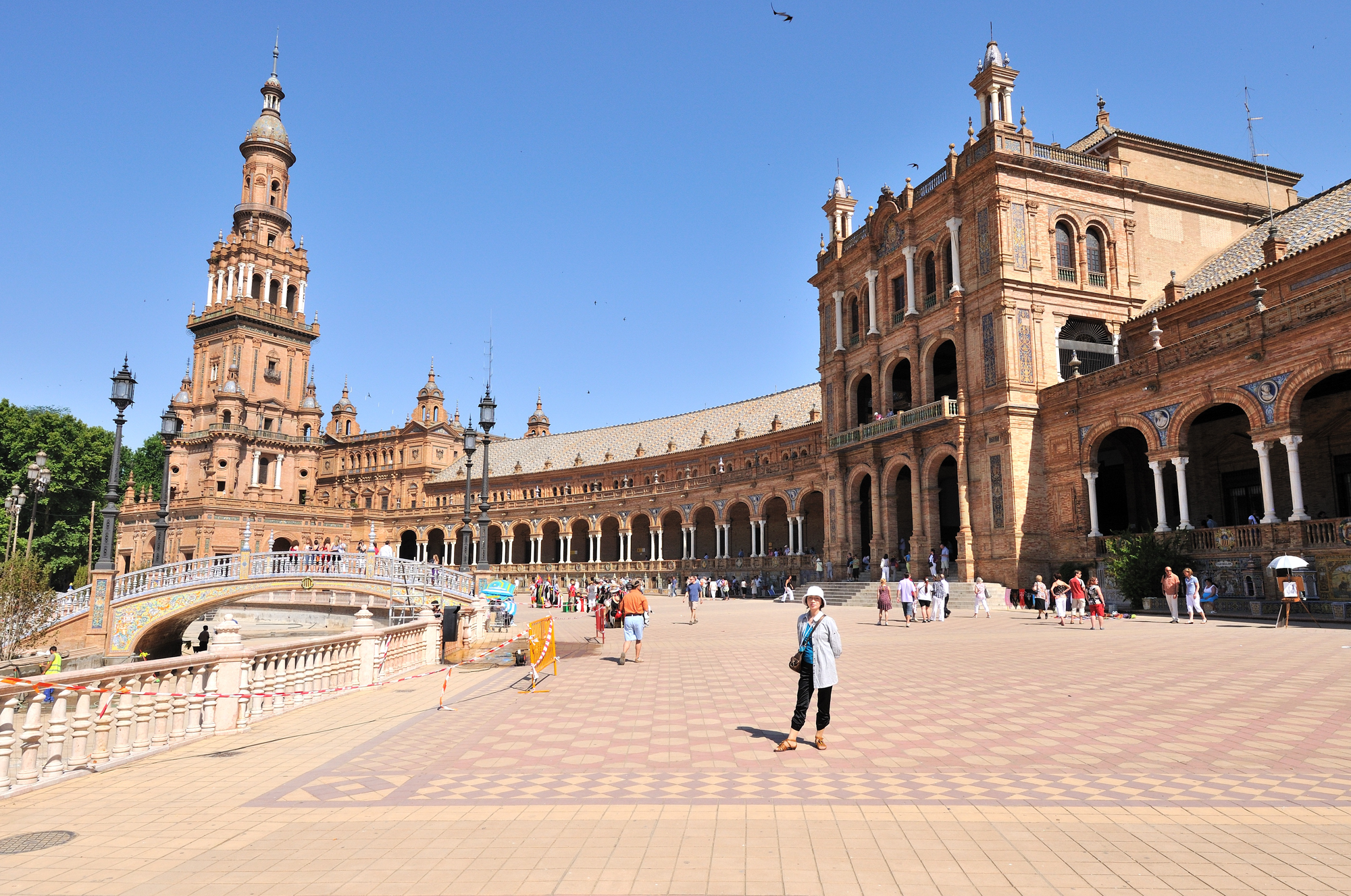 | スペイン広場 [Plaza de Espana] アンダルシア一番の都会、セビリアにあるスペイン広場は、かつてサン・テルモ宮殿 [Palacio de San Telmo] の庭園の一部だった、マリア・ルイサ公園内 [Parque de María Luisa] にある。1929年に開かれたイベロ・アメリカ(Ibero-America)博覧会 (米西戦争の結果アメリカ大陸の植民地を失ったスペインがスペインと旧植民地の間の文化的歴史を確認し、スペイン系アメリカ圏を創設することでスペインの発言力を再び高めることを意図した博覧会。イベロとはイベリア半島を意味する接頭語) のメインパビリオンとして造られたもので、建物の壁面にはスペイン各県の特徴や歴史にちなんだタイルが並んでいる。建築家アニバル・ゴンザレス [Anibal Gonzalez] の作。 演奏 (スイス・ロマンド管弦楽団) |