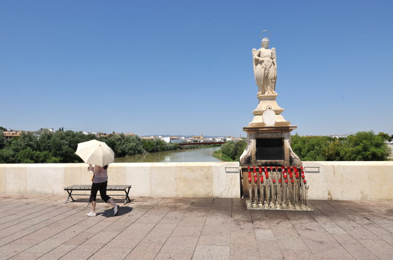| 橋の中央に立つコルドバの守護天使、サン・ラファエル [San Rafael] の像 (15:55) コルドバでは10月24日、サン・ラファエル祭(San Rafael Arca’ngel) があり、コルドバの守護天使サン・ラファエルを祝い、野外でペロールと言う米と肉のシチューを食べる習慣がある。 「北東方向」MAPLay. 2 M |