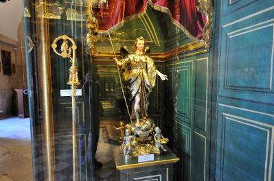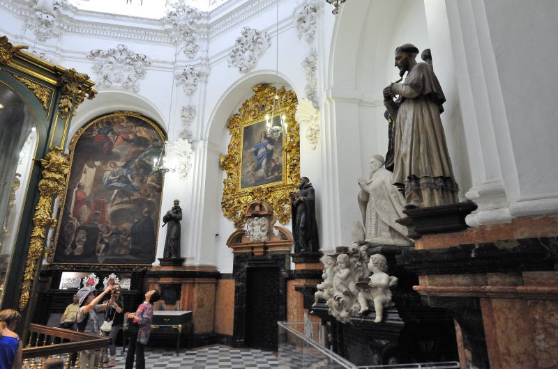 | 聖具室 (大聖器室) [Sacristía] (16:33) 聖女テレサの礼拝堂だが、大聖堂の大聖器室として使われている。 バロック様式で1703年に完成した。 「北北西方向」図 E |