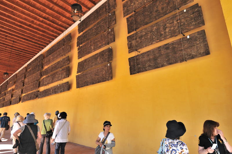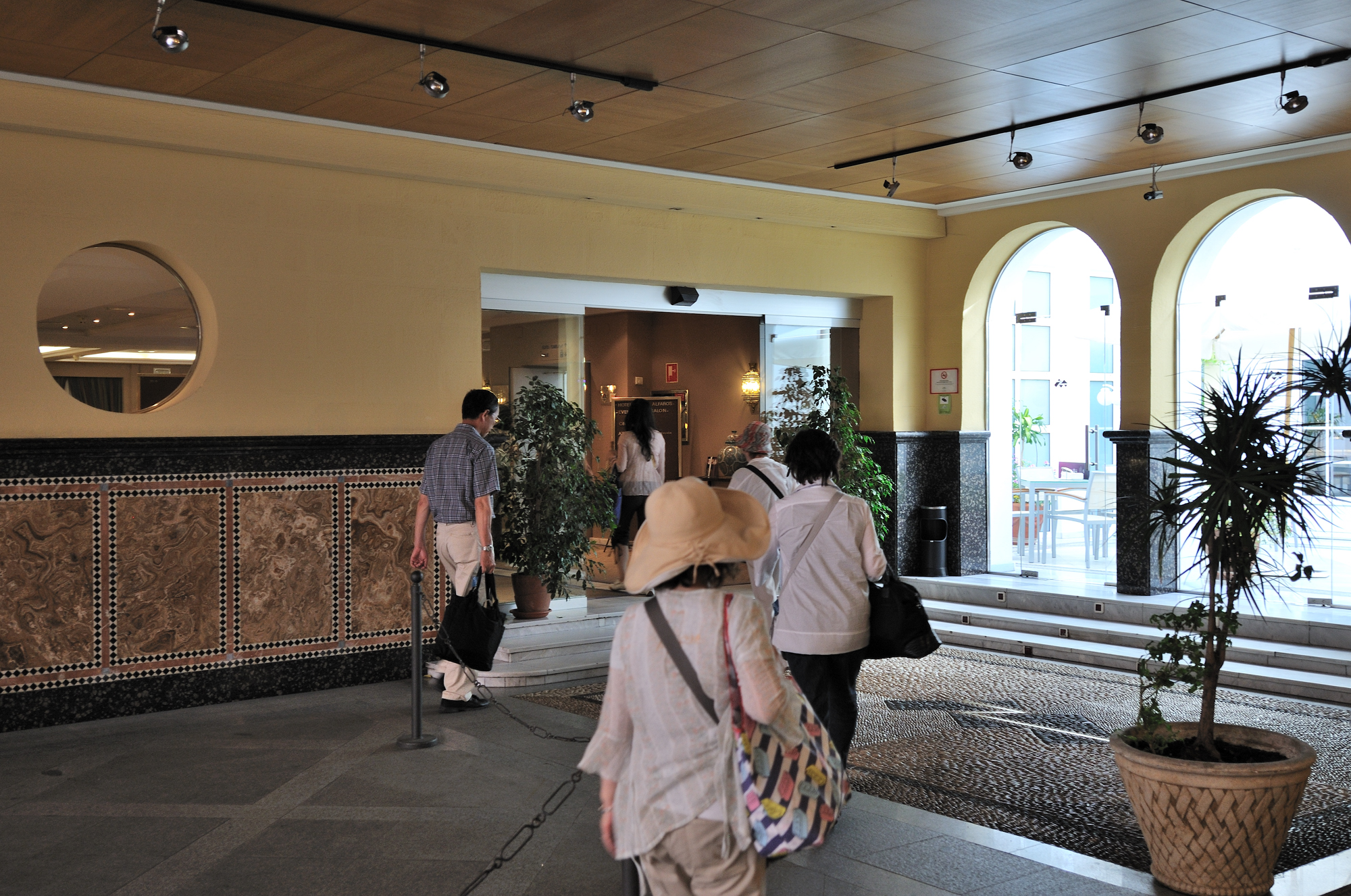 | オレンジの中庭に面した回廊 (17:01) 回廊には、かつて聖ビセンテ教会 [Iglesia de San Vicente] 時代に用いられていた建築材が展示されている。 「北方向」MAPLay. 2 Q |