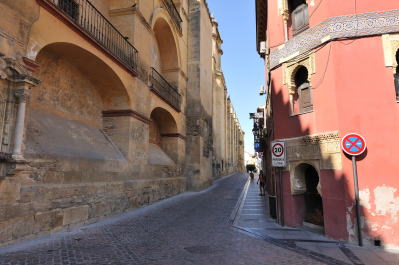| トリホス通り [Calle de Torrijos] (17:46) 左はメスキータ [Mezquita] の外壁。 「南東方向」MAPLay. 2 W |